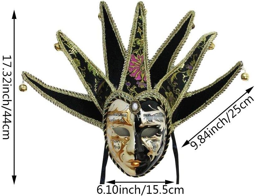 Questa bellissima maschera artistica può essere appesa a una decorazione murale o indossata utilizzando un nastro attaccato su ciascun lato del viso. Questa maschera veneziana può essere utilizzata per partecipare a tutti i tipi di feste, spettacoli, compleanni, Halloween, Natale o festività. È un buon regalo per i tuoi amici. 1 La maschera Jester-Venetian è progettata con materiali plastici di alta qualità, sicuri e durevoli, puoi essere sollevato da usare. Design caratteristico squisito con colori e luminosità piacevoli. La maschera per il viso elegante e personale ti rende più attraente e glamour in A-Party.