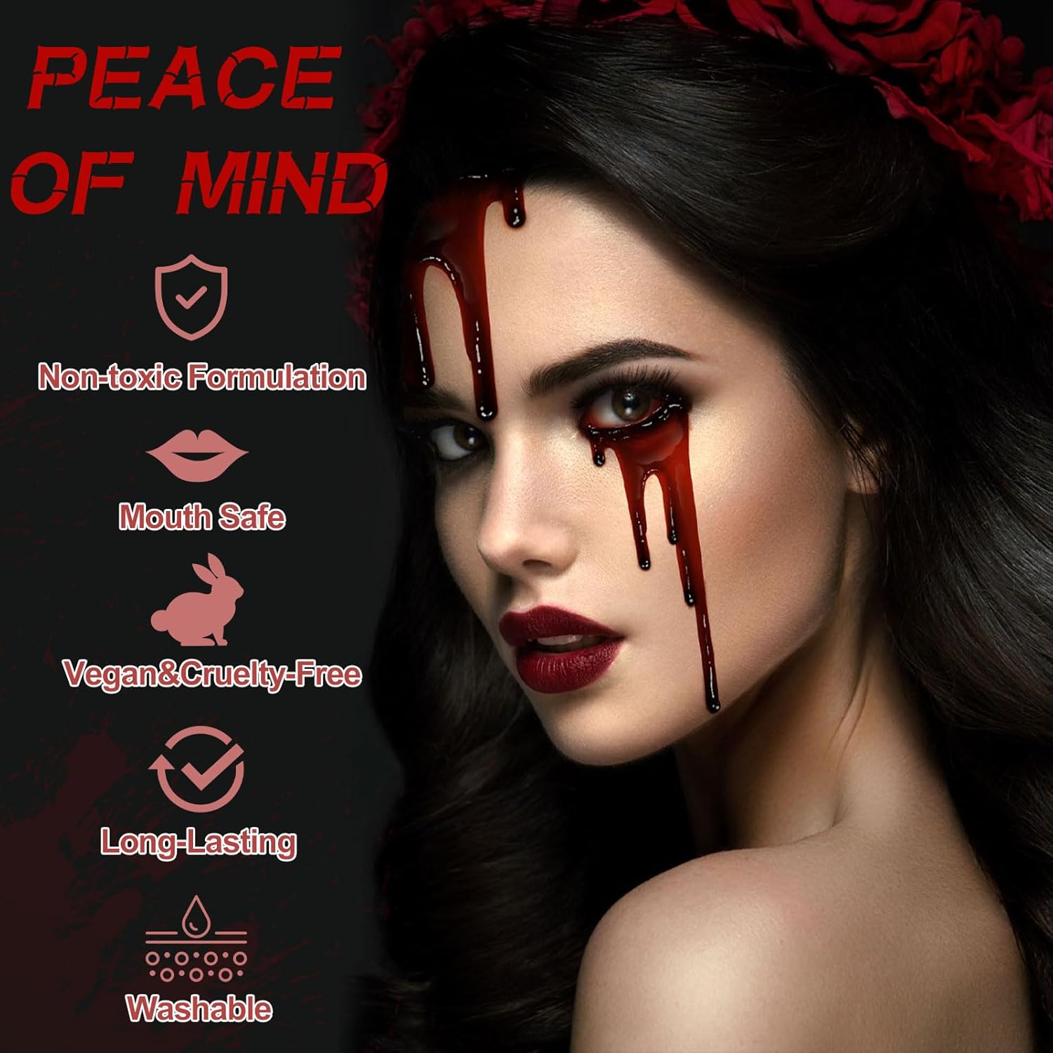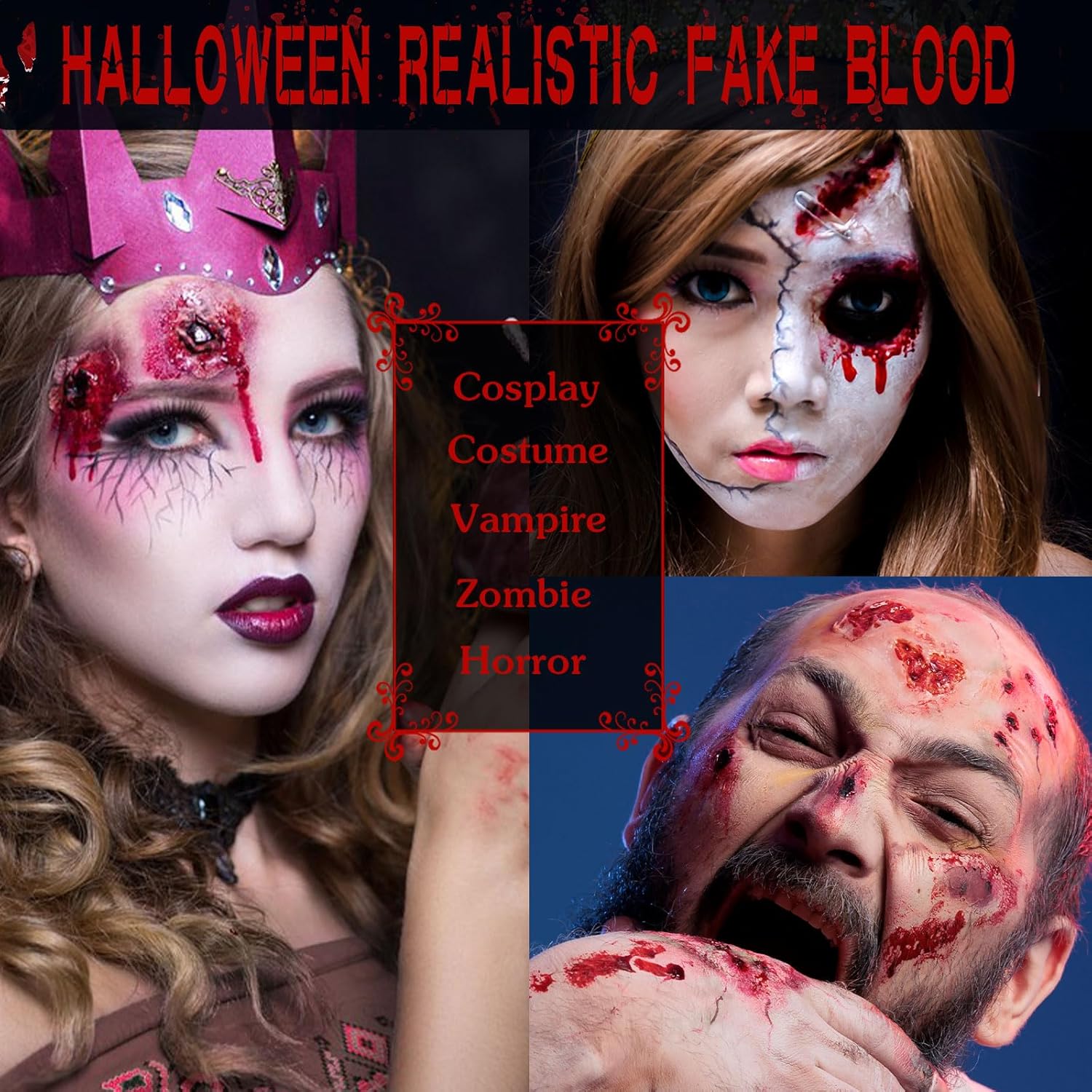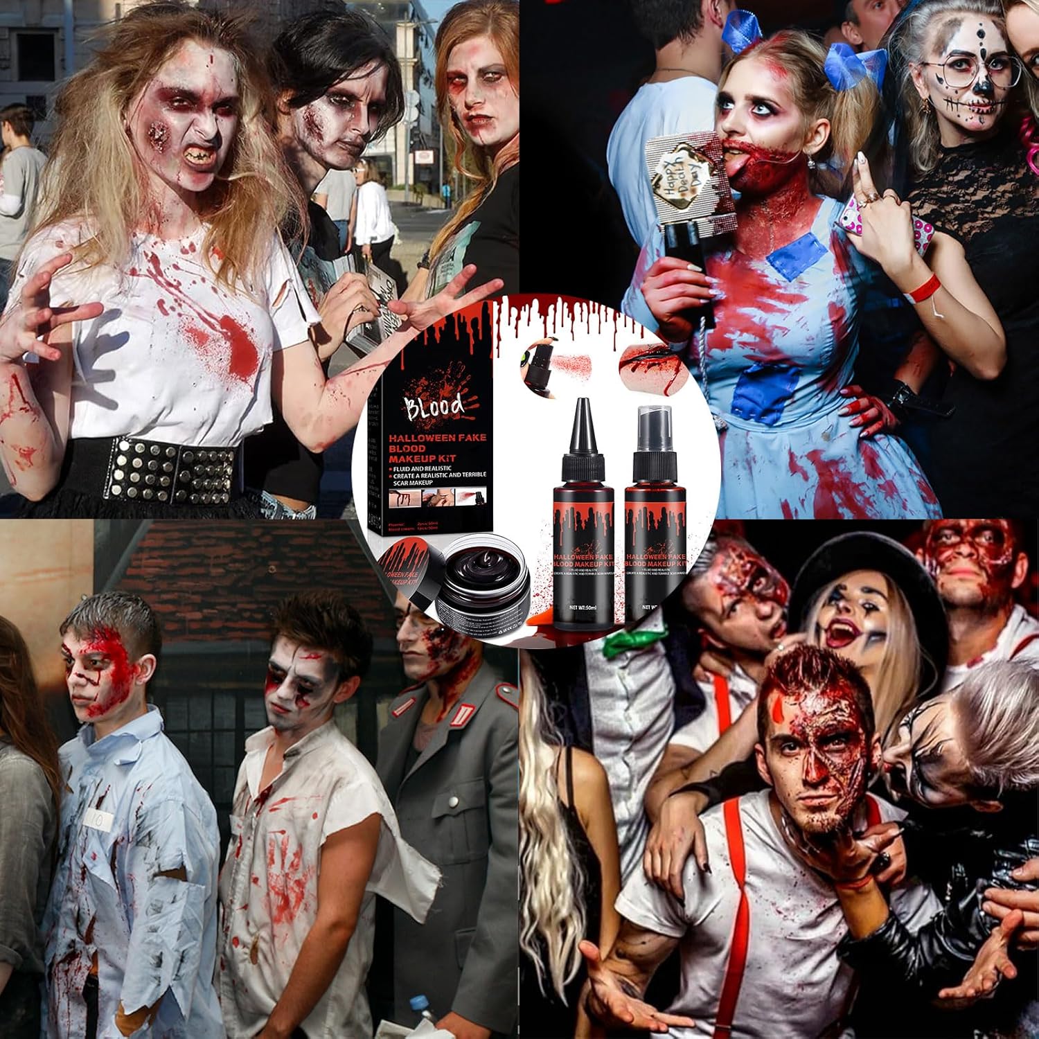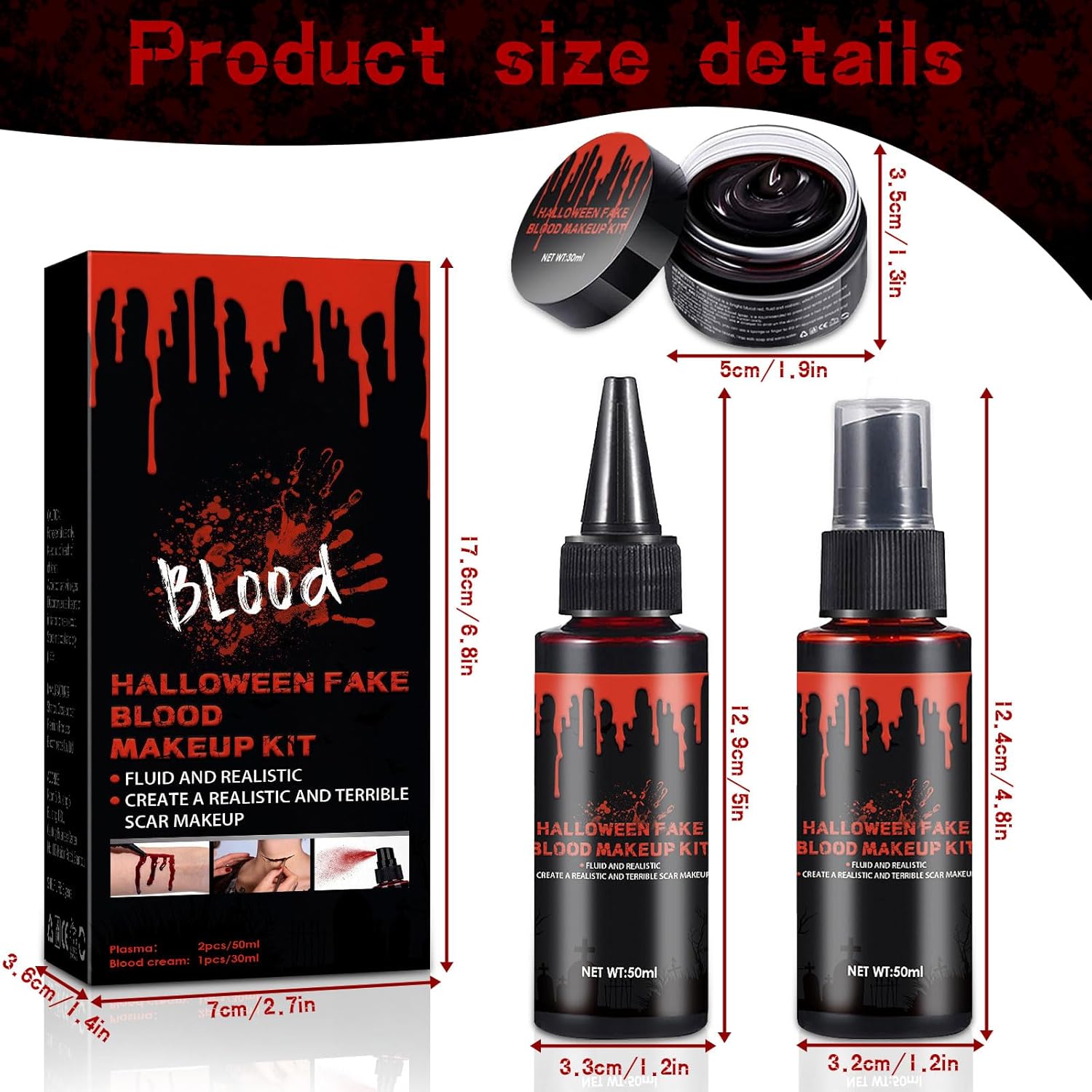 Set di 3 sangue artificiale per Halloween: il set di sangue artificiale contiene 50 ml di spray per sangue artificiale + 50 ml di sangue artificiale gocciolante + 30 ml di plasma sanguigno coagulato, il sangue artificiale può essere compresso per creare un effetto realistico del flusso sanguigno. Il finto sangue non danneggia il corpo umano. Può essere applicato a viso, oggetti di scena, corpo, costumi e soddisfare pienamente il vostro bisogno di sangue artificiale. 【Ingredienti sicuri】: il nostro sangue artificiale è realizzato in materiale di alta qualità, non irritante, innocuo per la pelle e molto realistico. Può essere utilizzato sul corpo del viso, braccia e gambe, fake blut è perfetto per costumi di Halloween, mostri, zombie, tagli e persino ferite e qualsiasi sangue fatto da esseri umani effetti speciali trucco. 【Facile da pulire】: sangue artificiale lavabile, pulire prima con acqua tiepida, poi lavare con sapone o struccante. Soddisfa il tuo bisogno di sangue artificiale di Halloween lavabile Non c'è bisogno di preoccuparsi che i vestiti o la pelle si sporchi. Nota: evitare di ottenere sangue artificiale negli occhi. 【Sanguinello realistico】: il kit di sangue finto di Halloween copre tutte le vostre esigenze di effetti di trucco di Halloween. Puoi vestirti come qualsiasi personaggio, il sangue falso è adatto anche per altri scenari come cosplay, costumi da clown, costumi da zombie, carnevale o colpi di tutti i giorni per ottenere un effetto sanguinante e spaventoso. Adatto per tutte le occasioni: il sangue artificiale di Halloween è il perfetto prodotto per il trucco di Halloween, il sangue finto è adatto per Halloween, carnevale, cosplay, sposa zombi, vampiri, maschere, costumi da clown, vampiri e altri eventi. Il sangue artificiale è perfetto anche per gli appassionati di effetti speciali, gli appassionati di film horror e i costumi di Halloween, per truccare zombie, mostri vampiri e altre scene sanguinose con sangue artificiale.