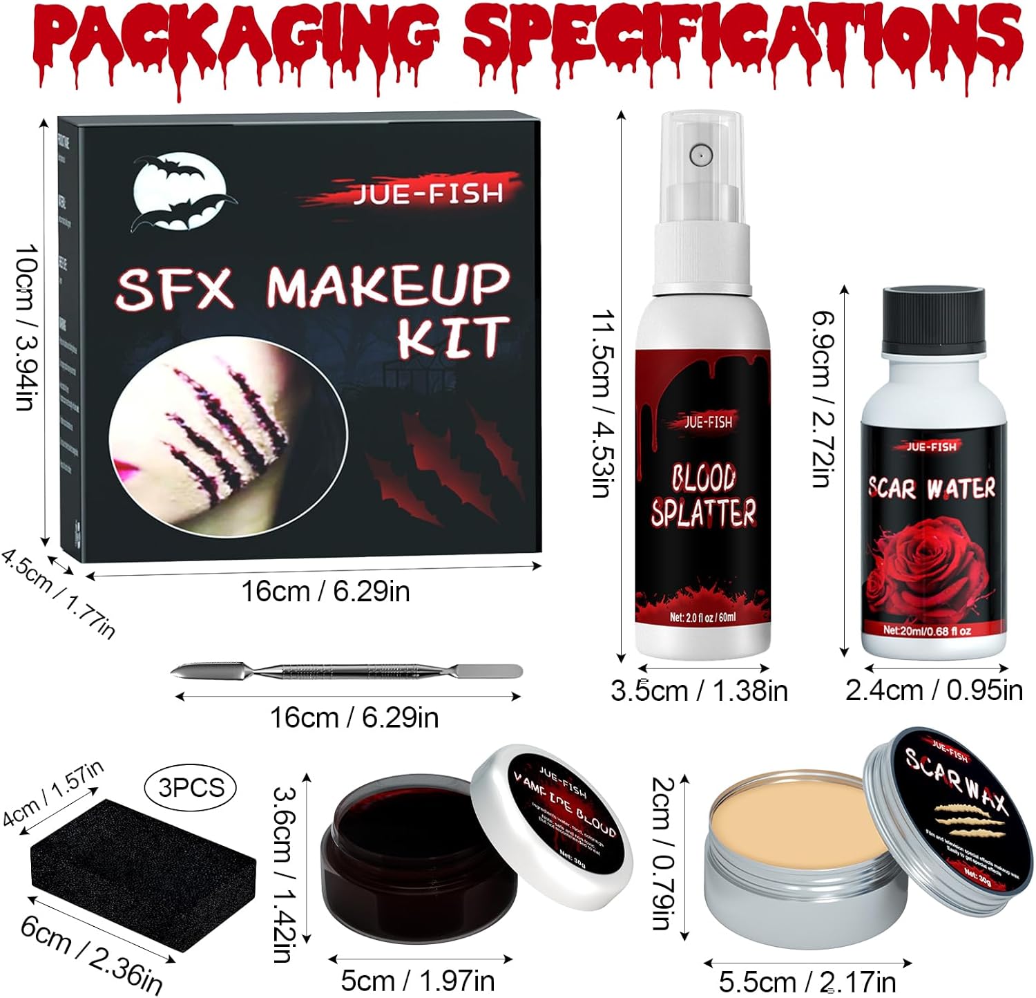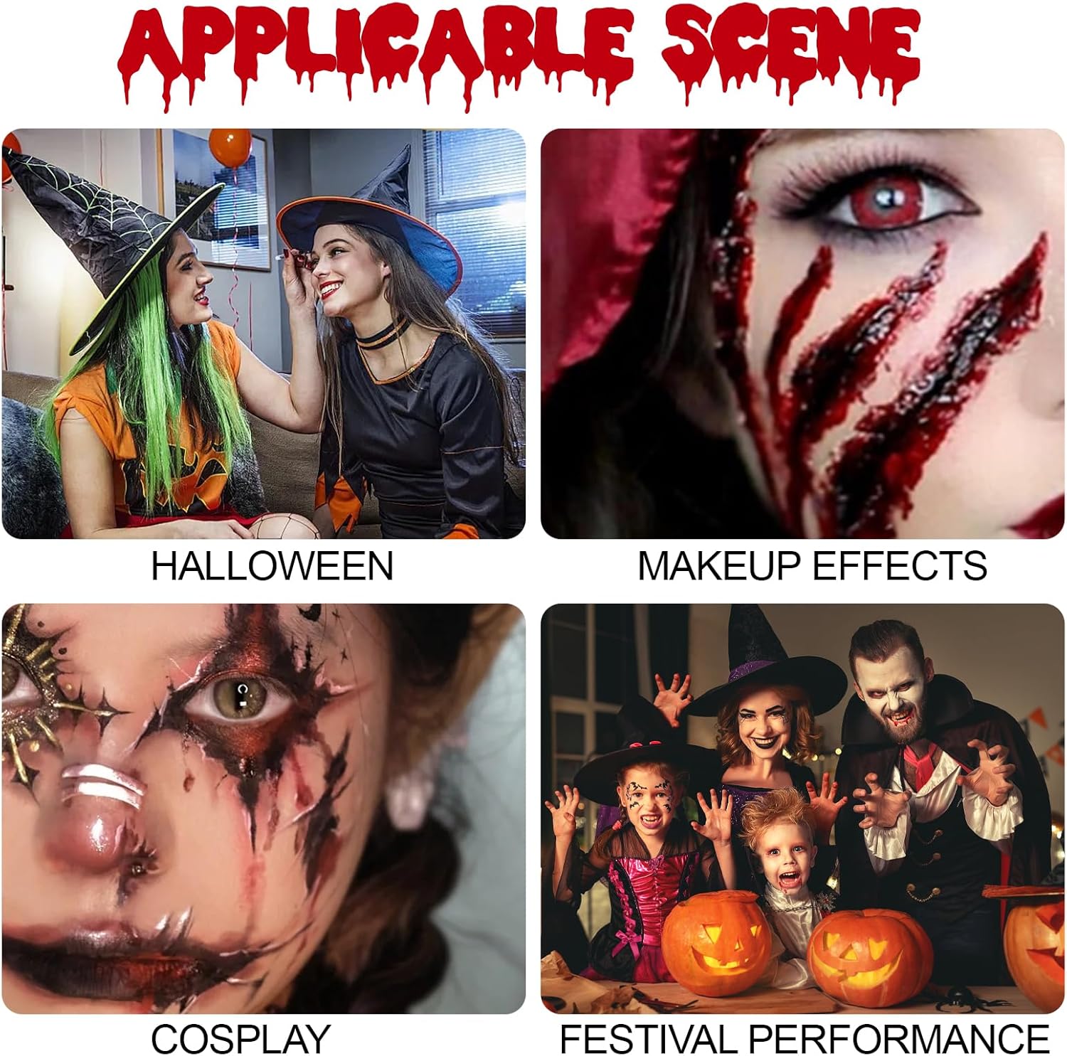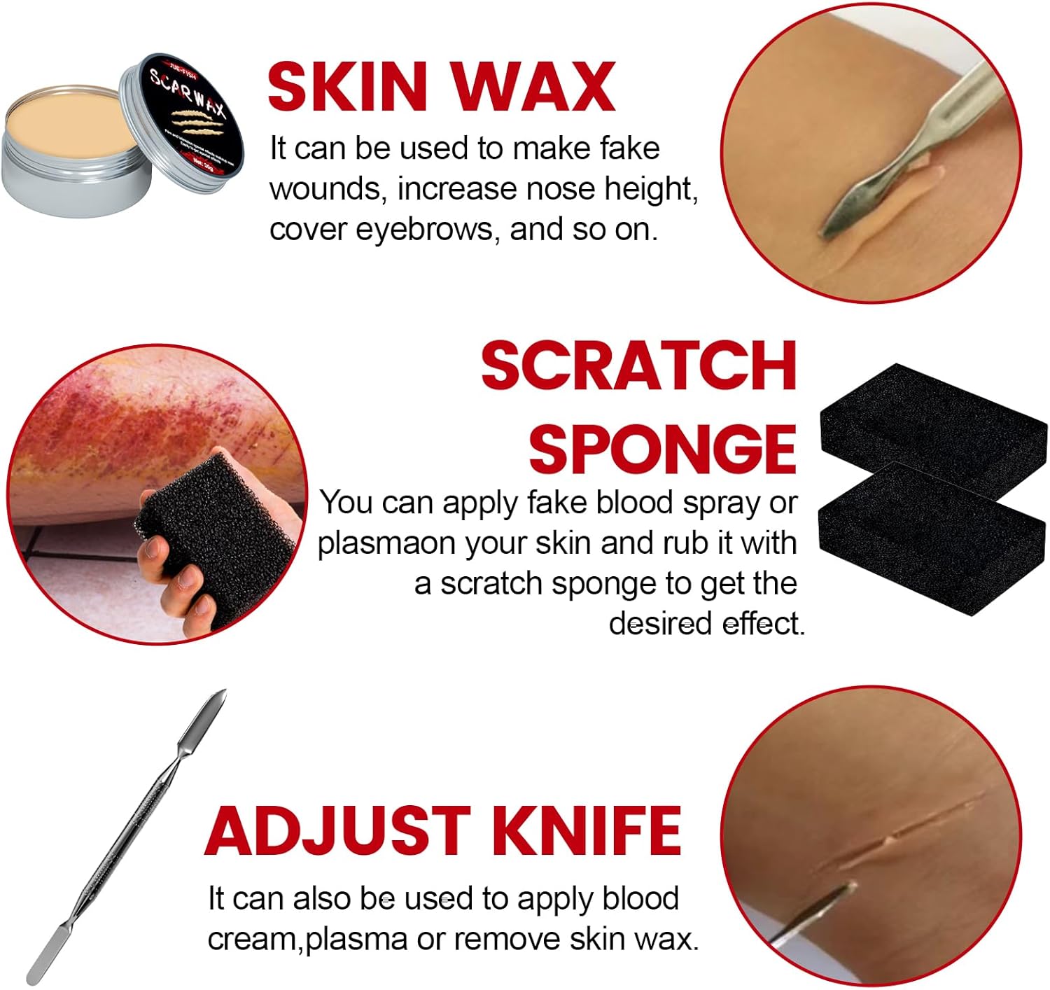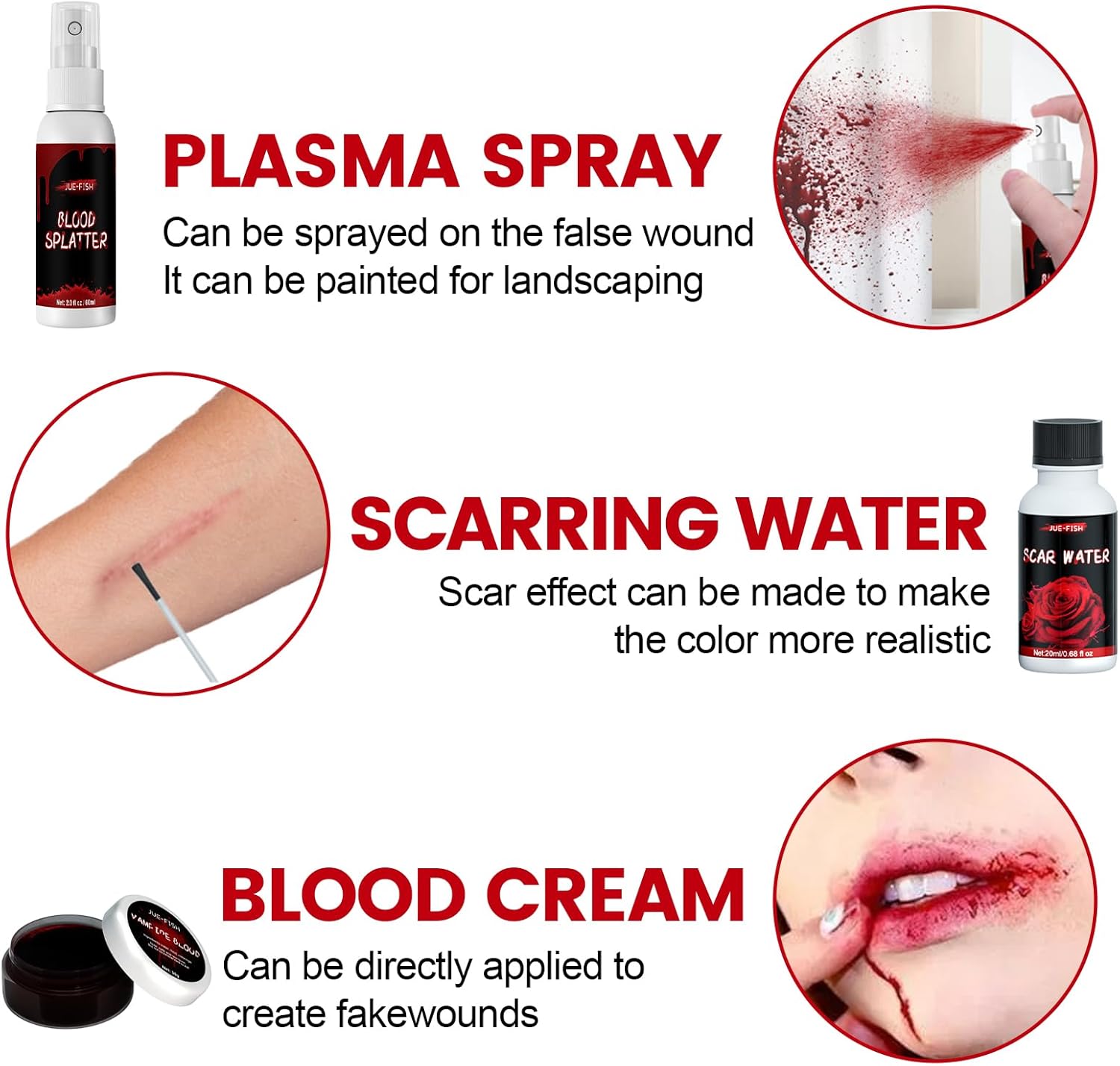 Sangue artificiale, set da 8 pezzi, spray per ferite, spray per sangue, denso, spugna per la pulizia della pelle