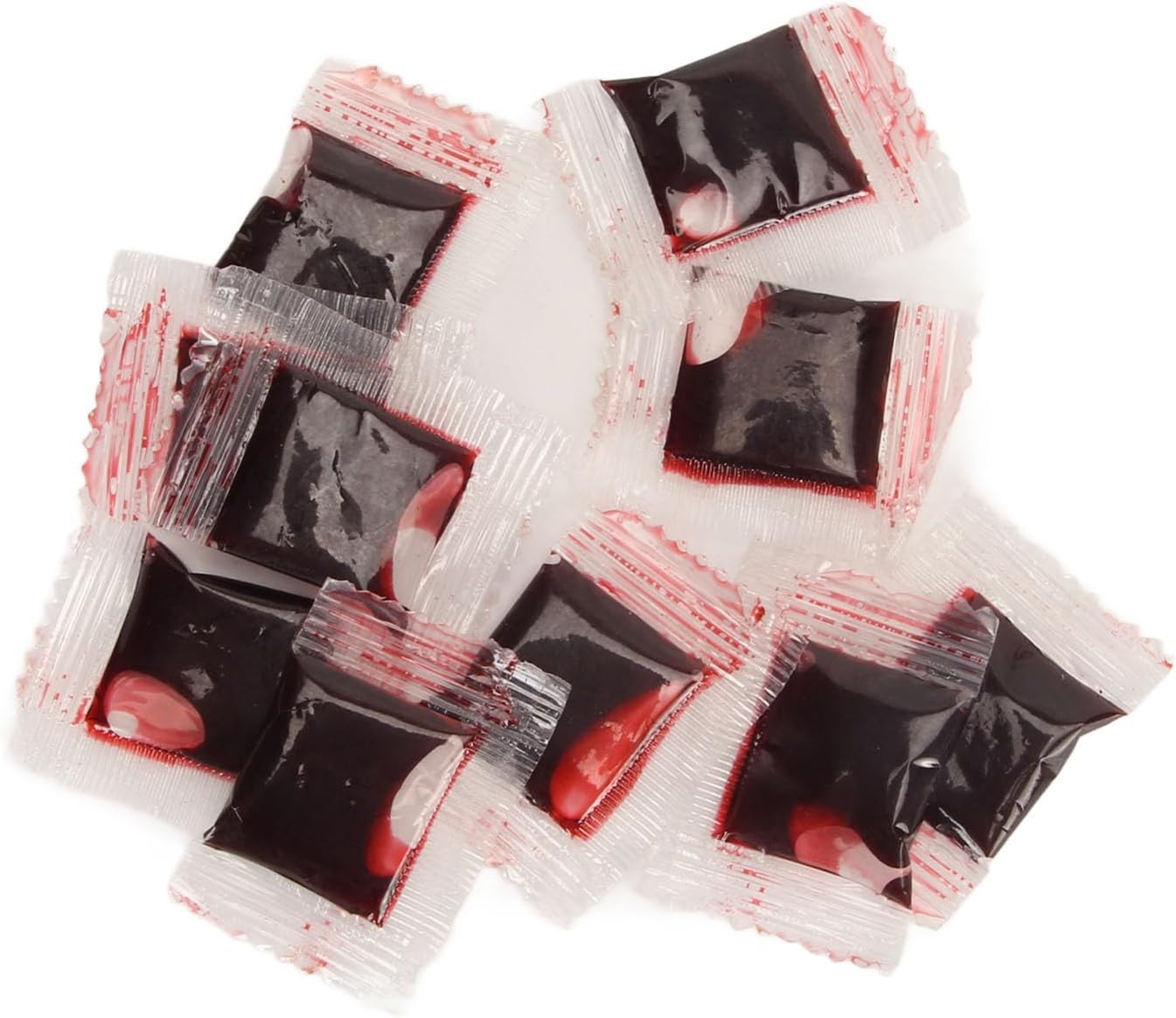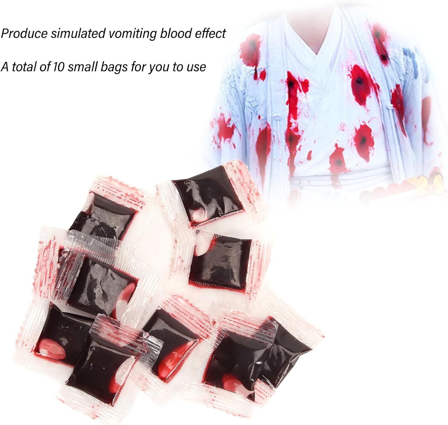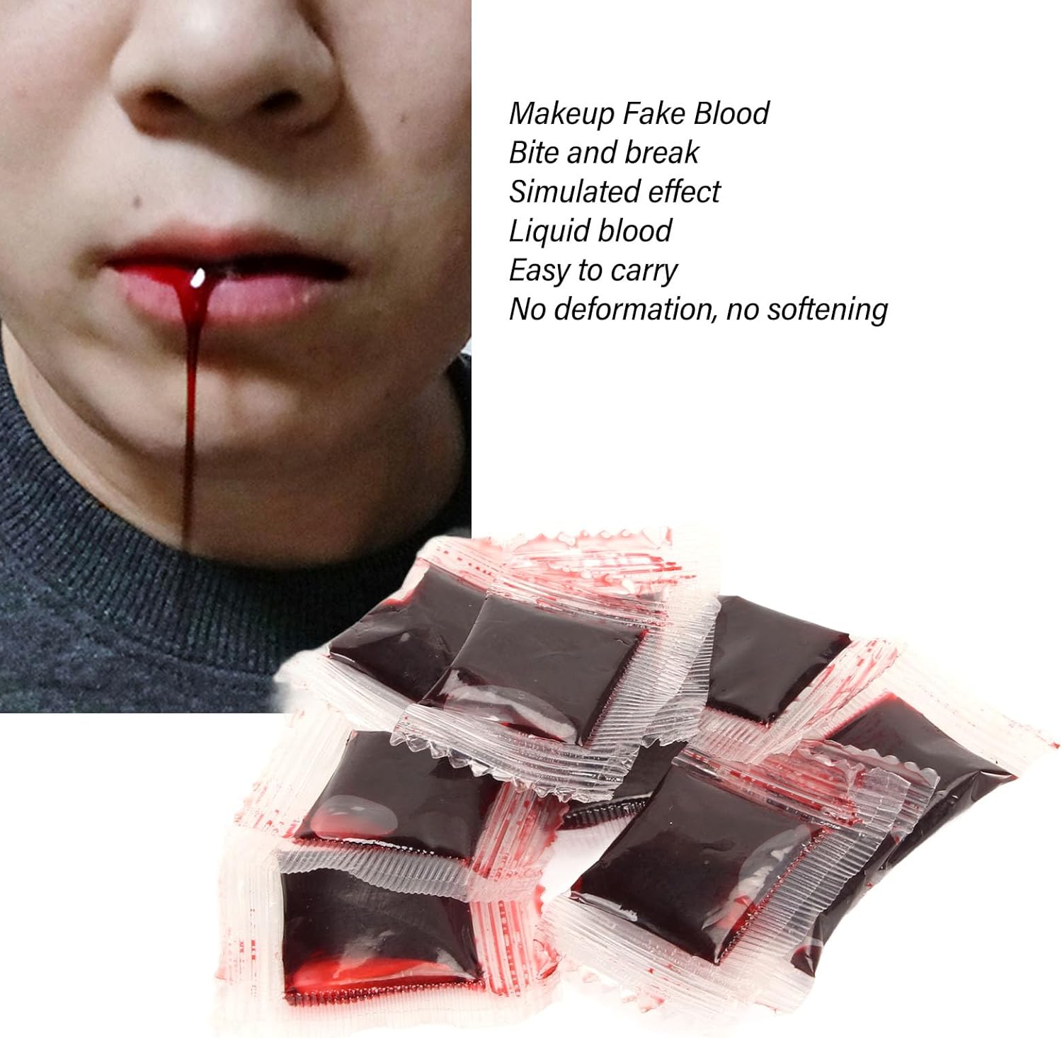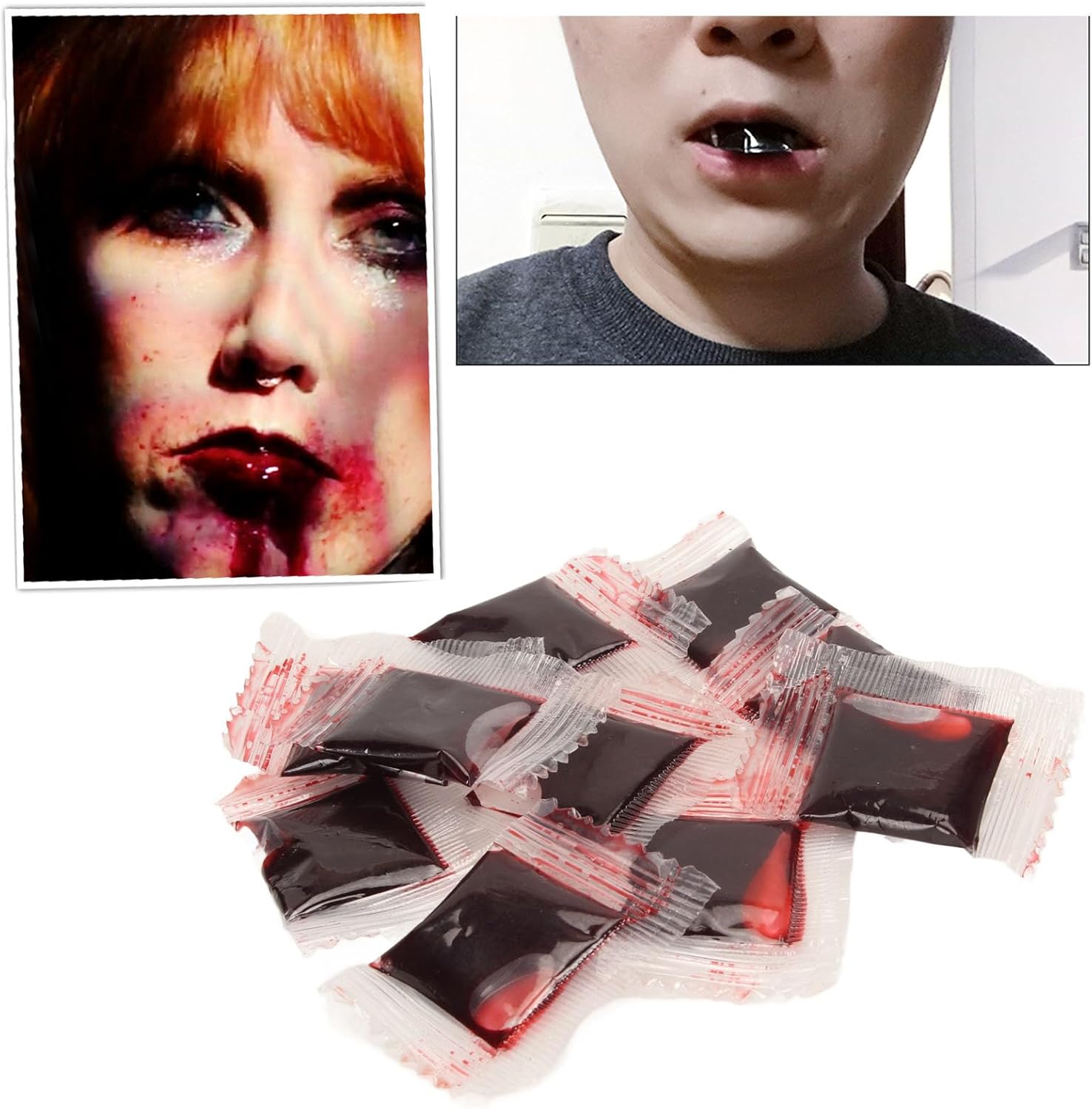 Effetto simulato: sangue falso trucco usato per produrre un effetto di vomito simulato, un totale di 10 piccole borse usare. Ampiamente usa: sangue falso adatto per spettacoli teatrali, esibizioni di serie cinematografiche e televisive, trucco per feste di Halloween e così via. Facile usare: la fase del trucco del sangue ha adottato il design di piccole borse, non è necessario riempire, basta mettere in bocca e morderlo per un effetto realistico. Materiale sicuro: il sangue falso in fase di materiale sicuro e di grado alimentare può essere utilizzato in bocca, ma la deglutizione non è raccomandata. Lavaggio facile: il sangue finto contiene coloranti alimentari, quindi non verrà lavata la pulizia come un vero sangue. Lavalo facilmente sciacquando la bocca.