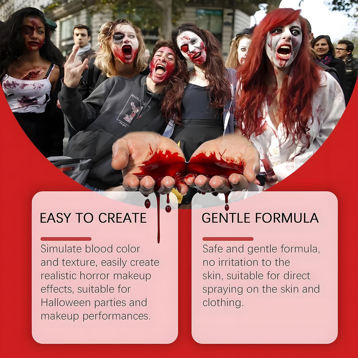 Sangue finto per la pelle di qualità superiore: Sangue coagulato è un sangue denso a base di sciroppo, ideale per Halloween, raffigurante ferite, che può essere premuto per creare l'effetto di sangue che sgorga Sangue finto perfettamente realistico: Il sangue finto crea effetti di trucco su vari tipi di ferite, tagli e lesioni. Il sangue soddisfa le vostre varie esigenze di cosplay (adatto per i bambini di età superiore ai 12 anni). Sangue finto Facile da usare: sangue finto può essere spruzzato sul viso, braccia e gambe o applicato al corpo per creare un perfetto make-up ferita sangue finto che può essere lavato via con sapone e acqua calda Sangue Make Up Progettato per vari sangue: occasioni come film di scena, sangue finto Halloween, Pasqua, cosplay e altri make-up speciali. ecc. Sangue finto realistico professionale Facile da rimuovere: Sangue trucco coagulato, con acqua Rimuoverlo con una salvietta per il trucco e un po' di sapone per il viso senza macchiare. (È difficile da rimuovere da alcuni tessuti).