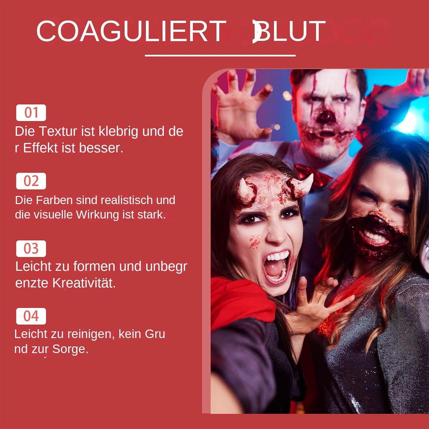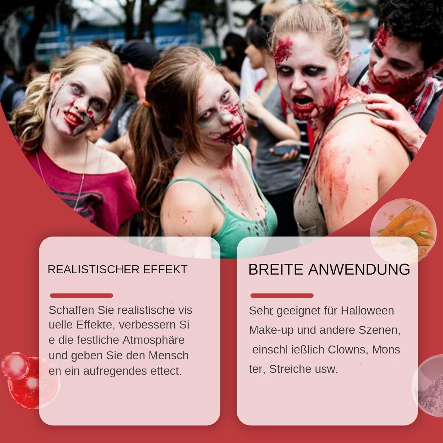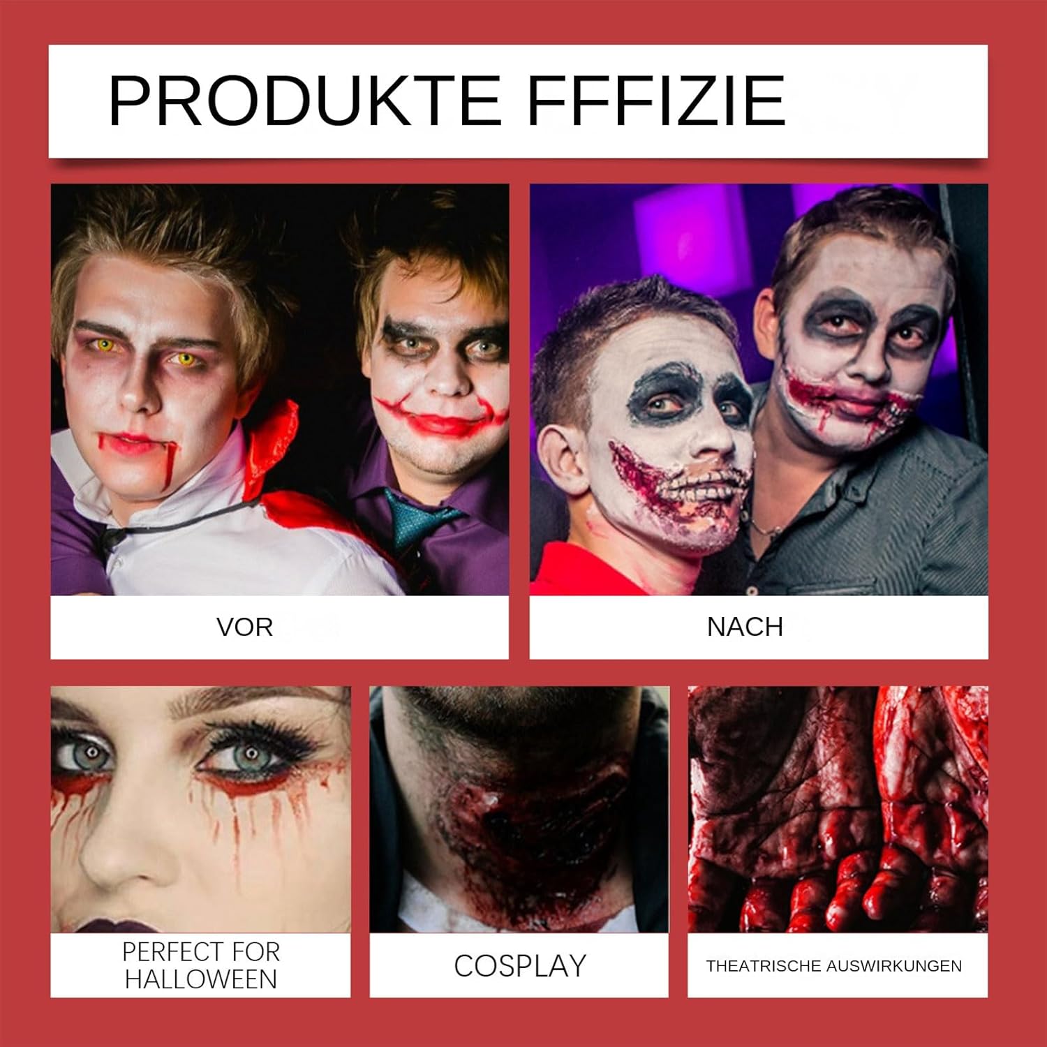 Effetto sangue coagulato realistico: formula appositamente progettata lavabile e sicura per la pelle: realizzata con un materiale delicato che può essere facilmente lavato via con acqua e sapone, è sicura per tutti i tipi di pelle e riduce il rischio di irritazione per l'uso prolungato durante feste, spettacoli teatrali o servizi fotografici Uso versatile per trucco e oggetti di scena: ideale per l'applicazione su volti, armi, costumi e oggetti di scena. Questo sangue finto migliora qualsiasi aspetto o ambiente, inclusi eventi di zombie, case infestate e produzioni teatrali per un maggiore realismo e produzioni teatrali Applicazione semplice con controllo preciso: in una bottiglia o applicatore che cigola Non macchia e pulisce rapidamente: formulato per ridurre al minimo le macchie su indumenti e superfici