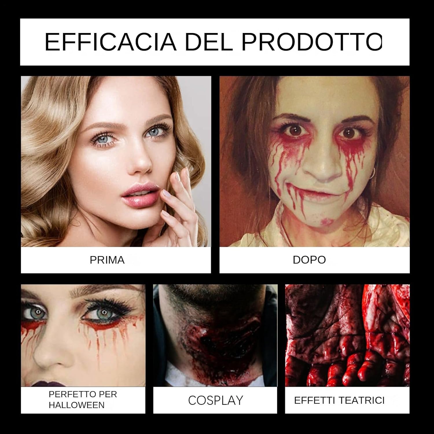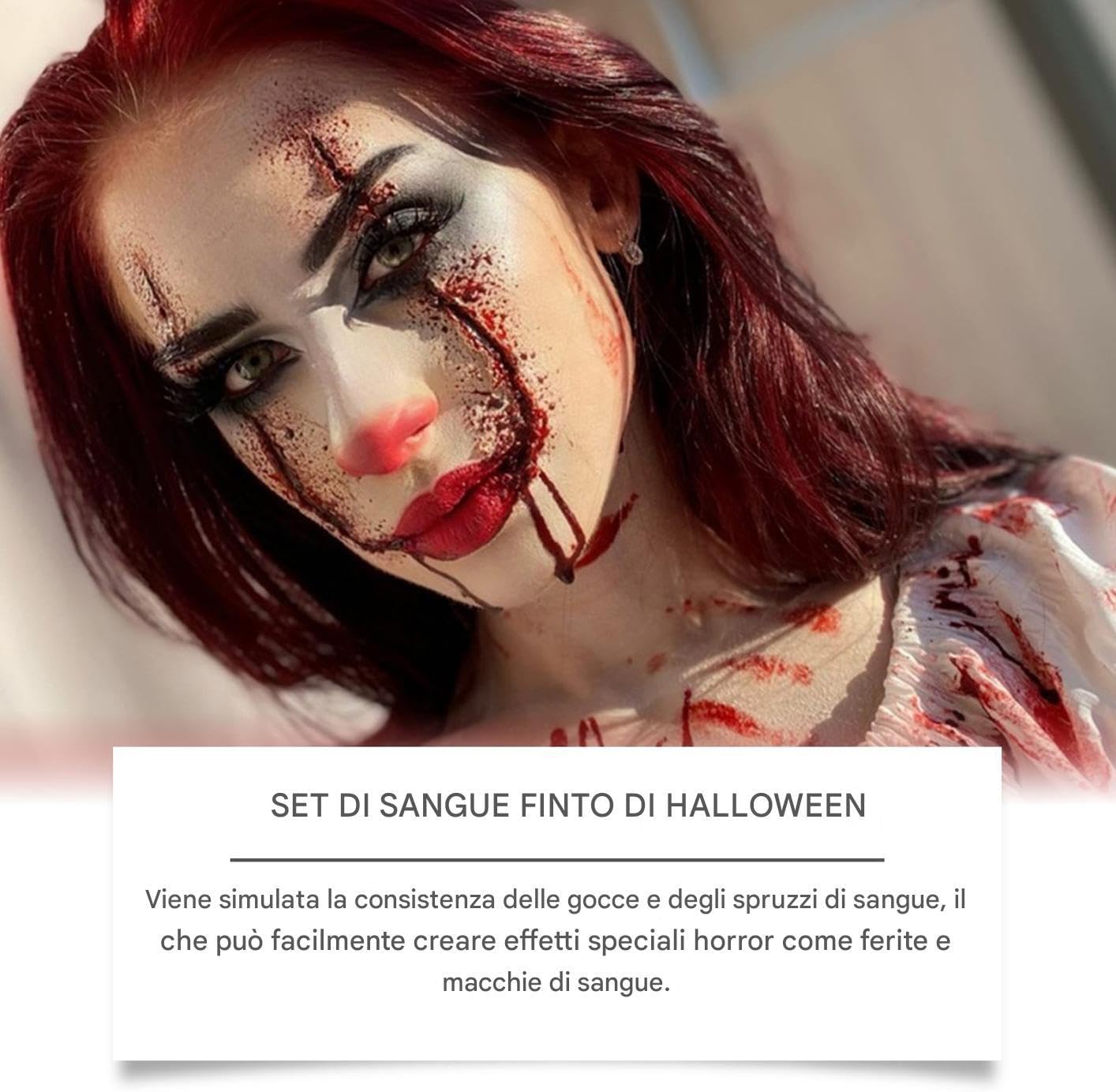 Descrizione prodotto Ottieni look straordinari con il trucco facciale, creato per gli appassionati di zombie e vampiri alla ricerca di design dettagliati. Il spray e garantisce un'applicazione semplice e offre un blending uniforme per donne e uomini. Che venga utilizzato in cosplay o come accessorio mascherato, questo prodotto si abbina perfettamente agli outfit di travestimento e abiti. Il sapone detergente semplifica la rimozione post-evento, rendendolo un valido supporto per qualsiasi routine di make-up trasformativo. Specifica: Dimensione del prodotto: Scende circa 3,3x12,8 cm/1.3x5.04 pollici Spruzzare circa 3.3x11,8 cm/1.3x4,65 pollici SOAP circa 3,98x3,98 cm/1.57x1,57 pollici dei pacchetti: Il sangue cade*1 Spray per sangue*1 Sapone*1 Nota: A causa e diverse impostazioni di illuminazione e schermo, il colore 'oggetto può essere leggermente diverso dall'immagine. A causa e diverse misurazioni manuali, consentire una differenza di 1-2 cm di dimensioni. Avviso di sicurezza Non applicabile