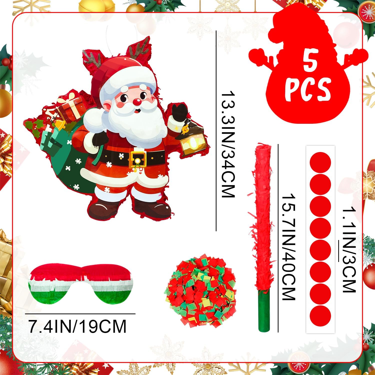 Piñata per Natale: questa piñata natalizia a forma di Babbo Natale è un'aggiunta magica alle tue feste di fine anno. Riempilo con caramelle o piccoli regali per un'esperienza divertente e interattiva che farà ridere grandi e piccini. Un'attività indispensabile per creare ricordi gioiosi con i tuoi cari. Atmosfera gioiosa e festosa: aggiungi un tocco di felicità alle tue celebrazioni natalizie! La piñata di Babbo Natale e i suoi accessori creano un'atmosfera calda e gioiosa, ideale per feste in famiglia, serate con gli amici o eventi natalizi. Perfetta per creare momenti di convivialità e condivisione. Materiali di Alta Qualità: Progettata con materiali robusti, questa piñata è abbastanza resistente da sopportare i colpi senza deteriorarsi. Il bastone e la maschera della piñata sono inoltre realizzati per garantire la sicurezza dei partecipanti, offrendo così un'esperienza di gioco senza problemi. Comodo kit tutto in uno: questo set completo include 1 piñata, 1 bastoncino della piñata, 1 maschera della piñata, 1 confezione di coriandoli multicolori e 1 foglio di adesivi rossi. Non devi cercare altri accessori. È un kit facile da usare per una festa di successo, senza una preparazione complessa. Adatto a tutti i tipi di Celebrazioni: questa piñata è perfetta per tutti i tipi di feste: che si tratti di un Natale in famiglia, di un compleanno o di un evento aziendale, il suo design colorato e festoso si adatta a tutti i tipi di celebrazioni, garantendo un'atmosfera festosa a tutti gli ospiti.