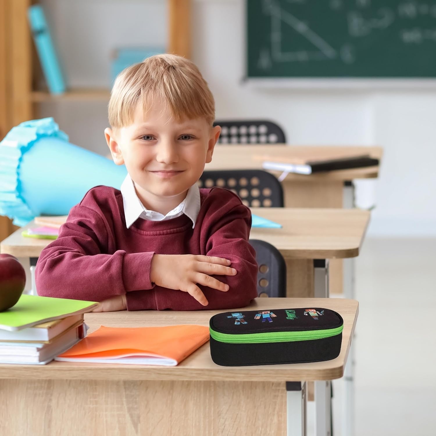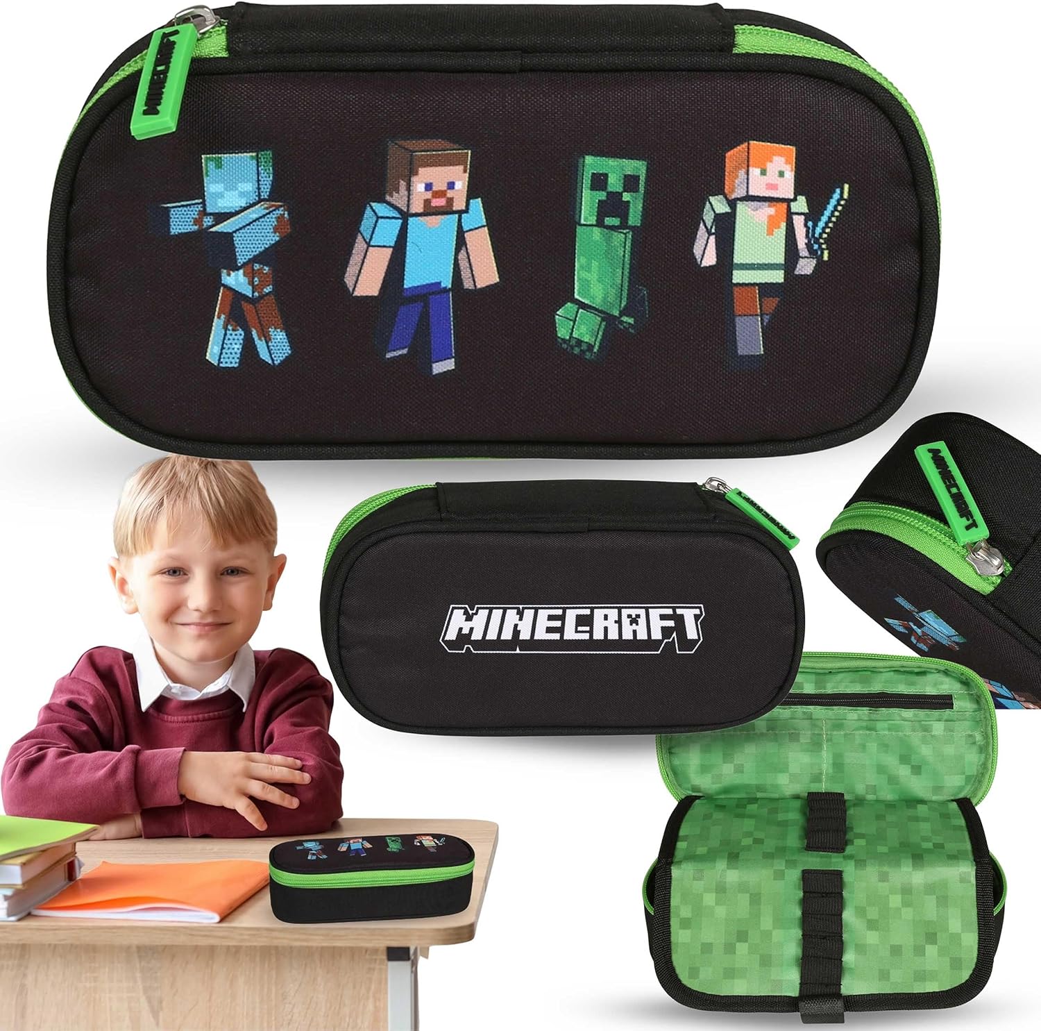 L'astuccio ovale per Minecraft di ASTRA è un oggetto funzionale ed esteticamente gradevole, creato per i fan del famoso gioco. Le sue dimensioni compatte (5 x 21 x 10 cm) consentono di inserirlo facilmente in uno zaino, offrendo al contempo ampio spazio per tutto il materiale scolastico necessario. Una robusta cerniera e un'aletta interna consentono di riporre in modo ordinato e sicuro penne, pastelli e matite. Il materiale di alta qualità e la stampa distintiva con i personaggi di Minecraft rendono l'astuccio non solo bello da vedere, ma anche resistente. Si tratta di un prodotto con licenza ufficiale che sarebbe perfetto come regalo per qualsiasi giovane giocatore.