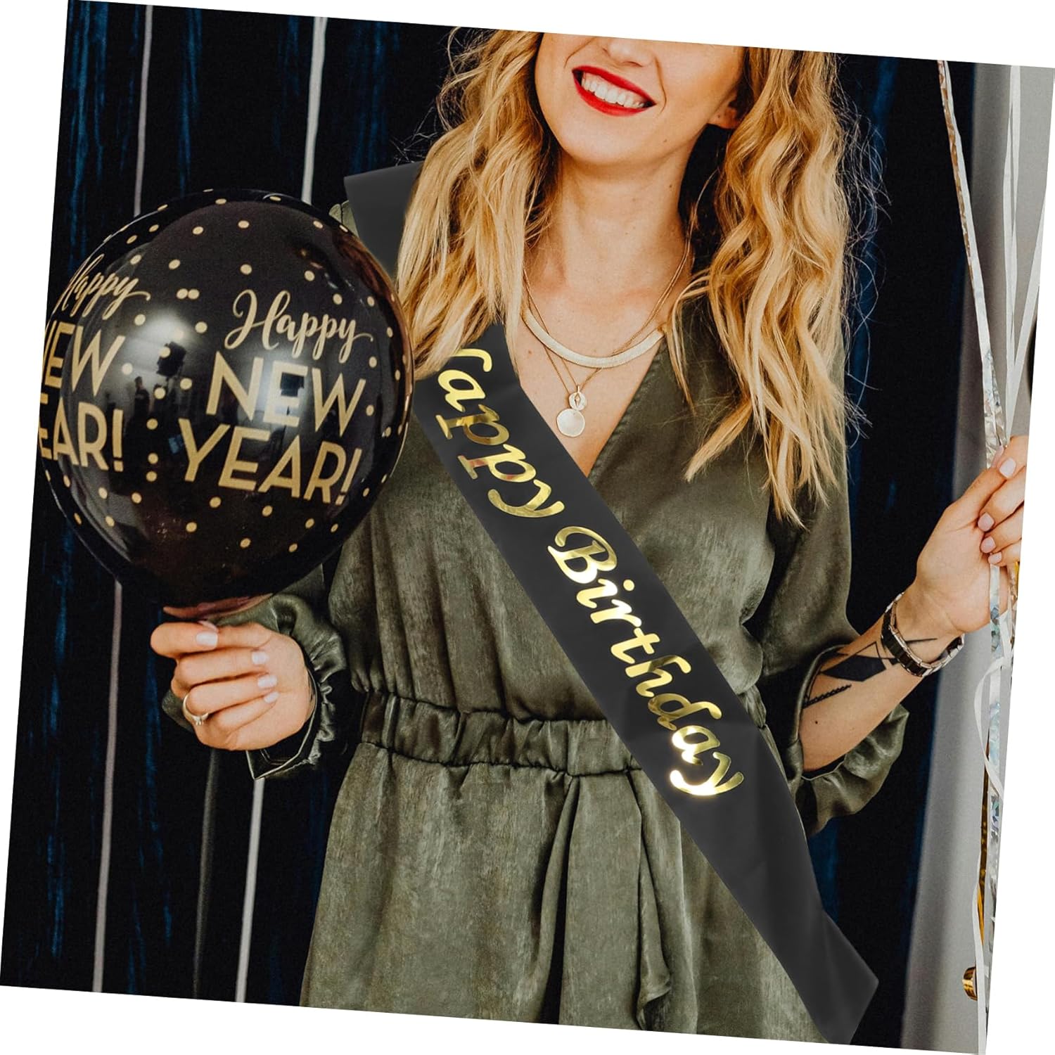 Descrizione La nostra fascia HAPPY BIRTHDAY è l'accessorio carino per ogni festa di compleanno. Progettata per le donne, questa fascia aggiunge un tocco di alla tua celebrazione. Basta drappeggiarlo sulla spalla ed è anche un'ottima aggiunta alle decorazioni di compleanno e alle forniture per feste, rendendo il tuo evento ancora più festoso. Caratteristiche - : Nero e oro -Materiale: raso -Dimensioni:160,00X9,50X0,10 cm/62,88X3,73X0,04 pollici -Design distintivo: la fascia Happy Birthday con stampa laminata è distintiva e ti farà risaltare ad ogni festa di compleanno -Tessuto confortevole: realizzata in tessuto satinato, questa fascia è morbida e confortevole, adatta alla forma delle tue spalle -Ideale per le celebrazioni: adatta per le feste di compleanno, questa fascia aggiunge un tocco festoso e ti mette al centro dell'attenzione -Valore : conserva questa fascia come del tuo speciale, adatta alla maggior delle persone e può essere indossata comodamente per lunghi periodi -Oggetto pronto per la fotografia: questa fascia per compleanno funge anche da eccellente accessorio fotografico, rendendola un pratico e duraturo per le feste