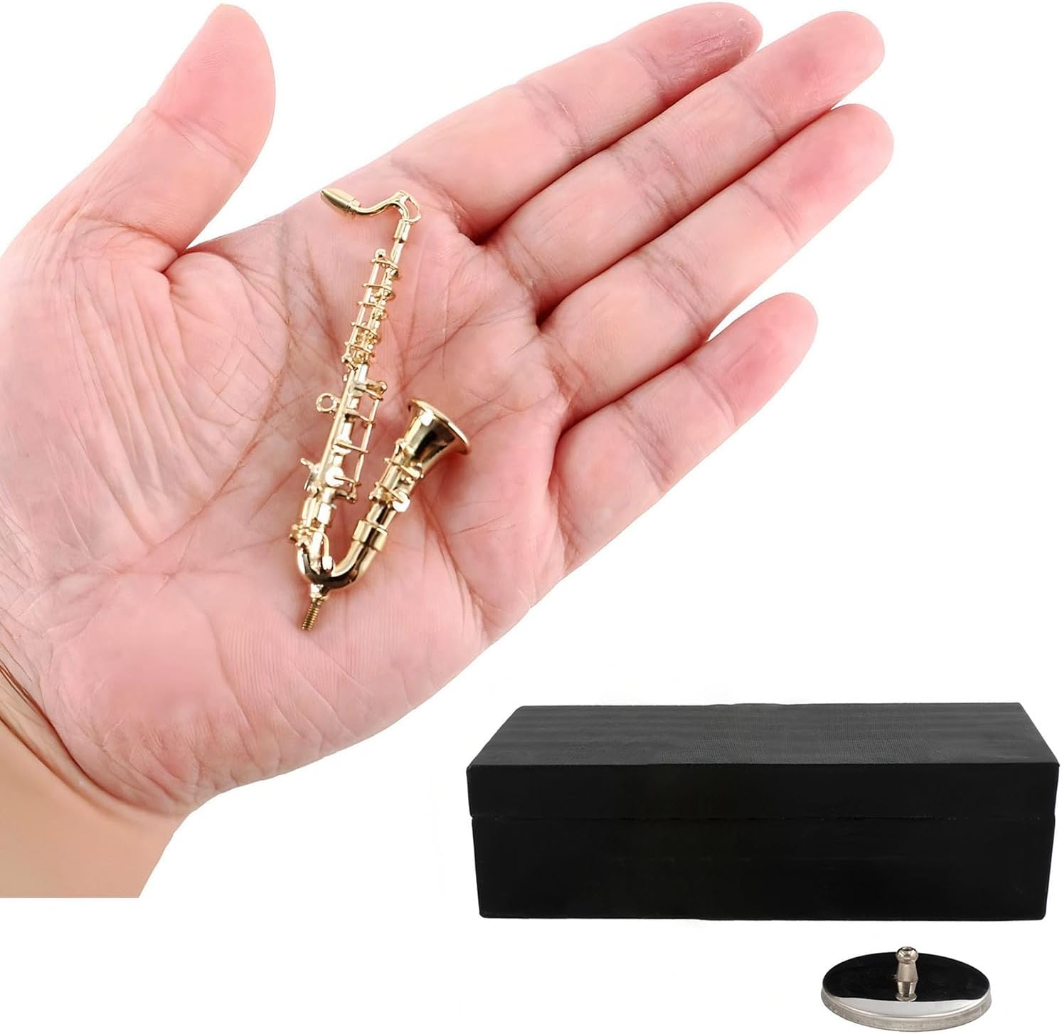 Sia come decorazione domestica che come oggetto da collezione, questo strumento musicale è dotato di supporto e custodia per una facile visualizzazione Il sassofono presenta superfici lisce con una consistenza calda e delicata, che ne migliorano notevolmente l'attrattiva visiva e il comfort Si erge orgoglioso su tavoli da ufficio, librerie o espositori per sale da musica come decorazione per iniziare una conversazione Dagli accessori per le case delle bambole alle esposizioni artistiche, questo pezzo porta divertimento e creatività per bambini e adulti Migliora i tuoi stili di decorazione della casa con questo Sassofono in miniatura, realizzato con una combinazione di placcatura in oro e ottone, linee morbide, dettagli intricati