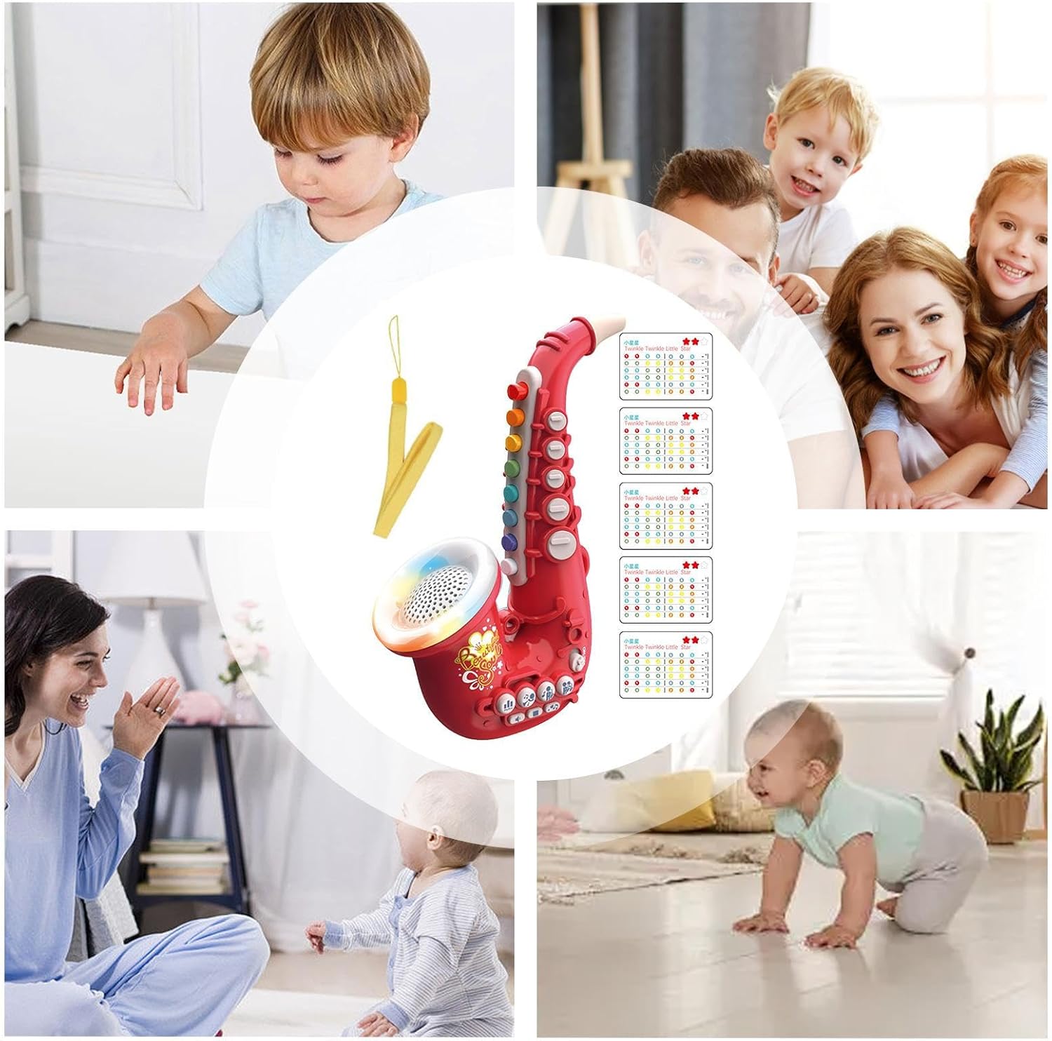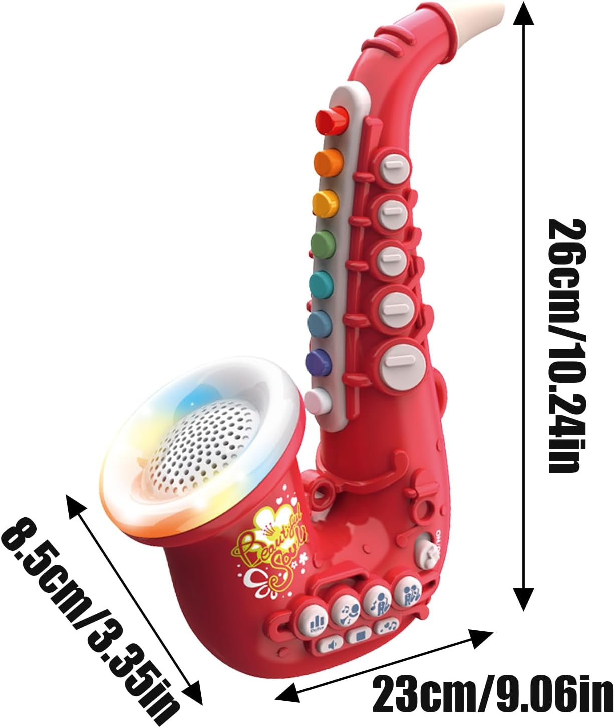 Giocattolo per sassofono per bambini: progettato per i più piccoli per esplorare la musica e il ritmo, presenta un design colorato, funzioni luminose e sonore che incoraggiano la creatività, la coordinazione e il primo interesse musicale durante il gioco Strumento a tromba per bambini: la simulazione a doppio strumento offre un'esperienza realistica di suonare la tromba e il sassofono, sviluppa la coordinazione occhio-mano, il controllo del respiro e il riconoscimento uditivo adatto per l'apprendimento della musica per principianti Suono luminoso musicale: le luci a LED integrate e gli effetti sonori un divertente ambiente interattivo che stimola i sensi visivi e uditivi mantenendo i bambini impegnati in attività di performance musicale fantasiose Giocattolo musicale educativo: promuove l'apprendimento precoce attraverso il gioco, migliora la comprensione dei toni, dei battiti e delle melodie, supporta lo sviluppo del bambino migliorando la concentrazione, la fiducia e le capacità cognitive attraverso l'interazione ritmica. Simulazione del design del sassofono: realizzato con bordi lisci e materiali sicuri e non tossici, per le mani piccole, leggero e resistente, ideale per gli asili in classe o per le sessioni di pratica musicale domestica.