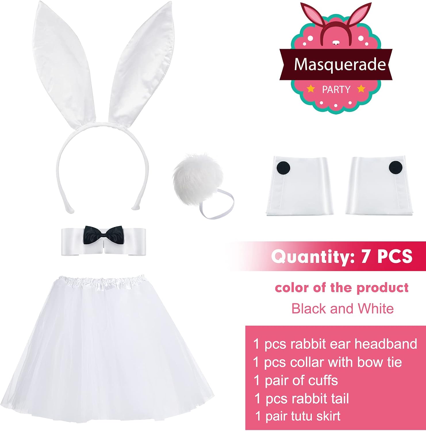Ordered this last minute for a Halloween party. My husband was a magician and I was a bunny. This set served its purpose and made for a cute costume. I paired it with white pants and a white top. The skirt is thin and didn’t have a ton of material but was really cute over pants. The ears were cheap material but you couldn’t tell when I had them on. It was a very basic set, but paired with the right clothing items, appeared higher quality than it really was! Overall great codtume accessories and would purchase again!