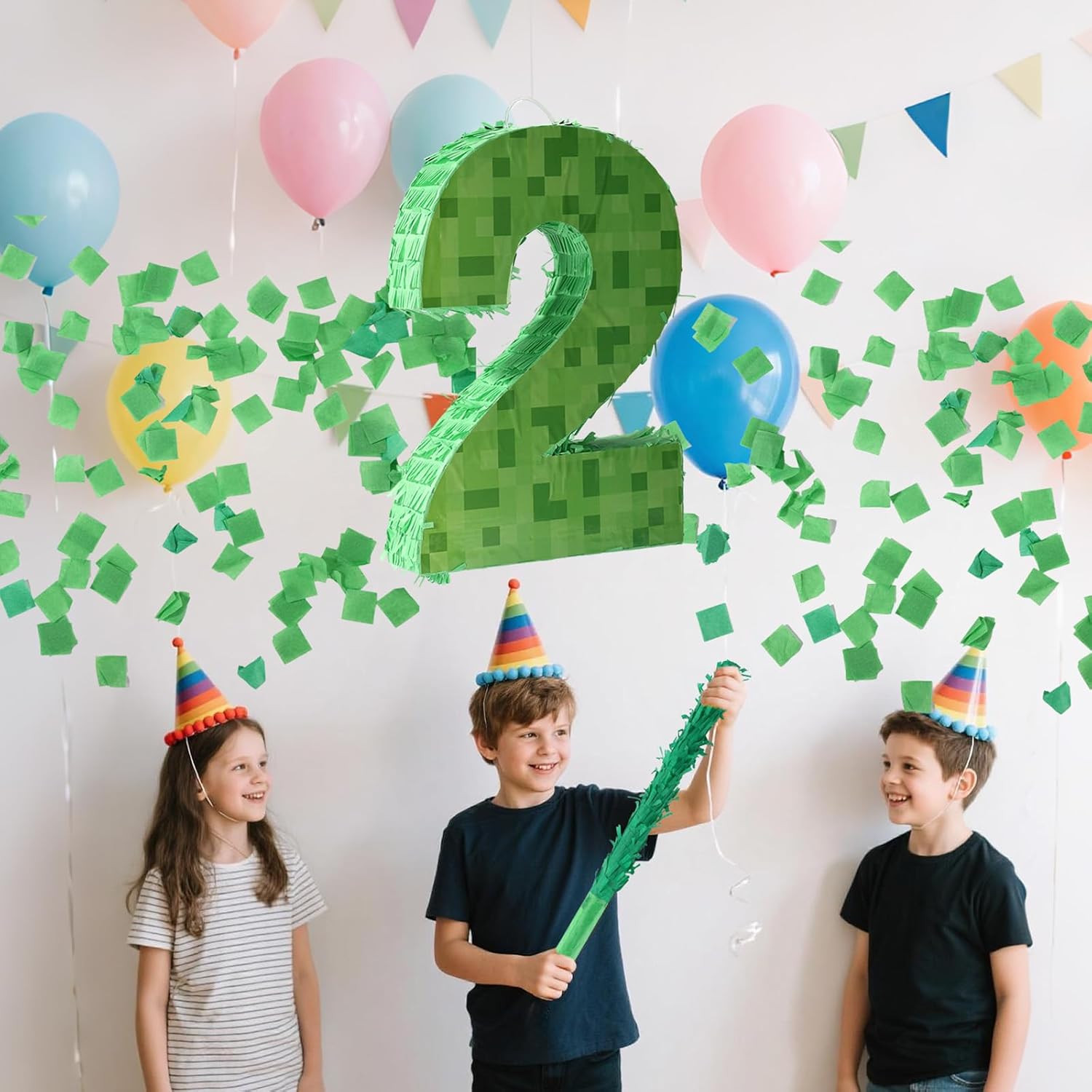 SAVITA Mini Piñata Pixel con Numeri, Bomboniera per Feste Compleanno con Pixel Verdi Benda Sugli Occhi Piñata di Coriandoli per Decorazioni Feste di Compleanno (2)