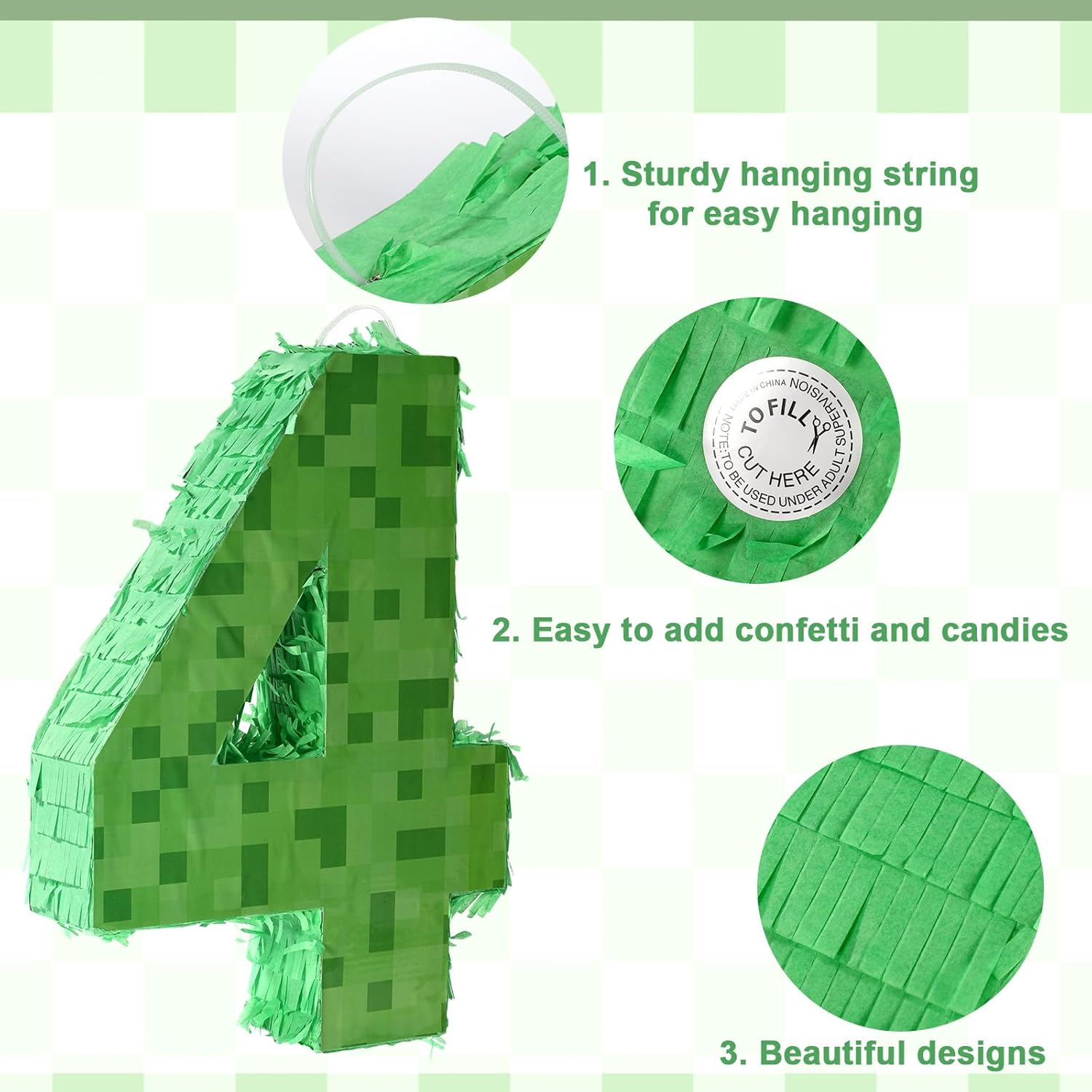 Il pacchetto include: otterrai 1 set di mini piñata digitale, tra cui 1 pezzo di piñata, 1 pezzo di bastone da battito, 1 pezzo di maschera per gli occhi e 1 pezzo di brandelli di carta, che può creare un'atmosfera vivace per la tua festa. Facile da usare: è facile imparare a giocare con il nostro numero Mini Pixel Piñata, e viene fornito con una corda robusta per impiccare e aggiungere coriandoli e caramelle. Ampiamente utilizzato: il nostro numero di mini piñata è adatto a varie occasioni di feste, come feste a tema pixel, feste di compleanno, feste pasquali o festival messicani. Game di festa ideale: il nostro set di pixel Pinata non è solo una decorazione di festa interessante, ma anche un buon strumento di gioco divertente per feste, gli ospiti della festa possono fare a turno tirando il nastro o colpirlo con bastoncini per creare un'atmosfera felice per feste. Buon materiale: questo set di pixel pinata è principalmente realizzato in materiale di carta affidabile, che non si strapperà e si sbiadisce facilmente, puoi usarlo con fiducia.