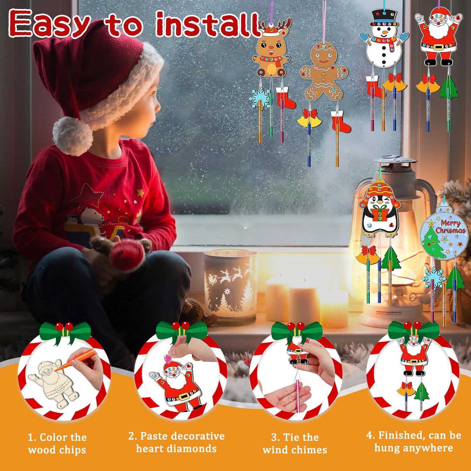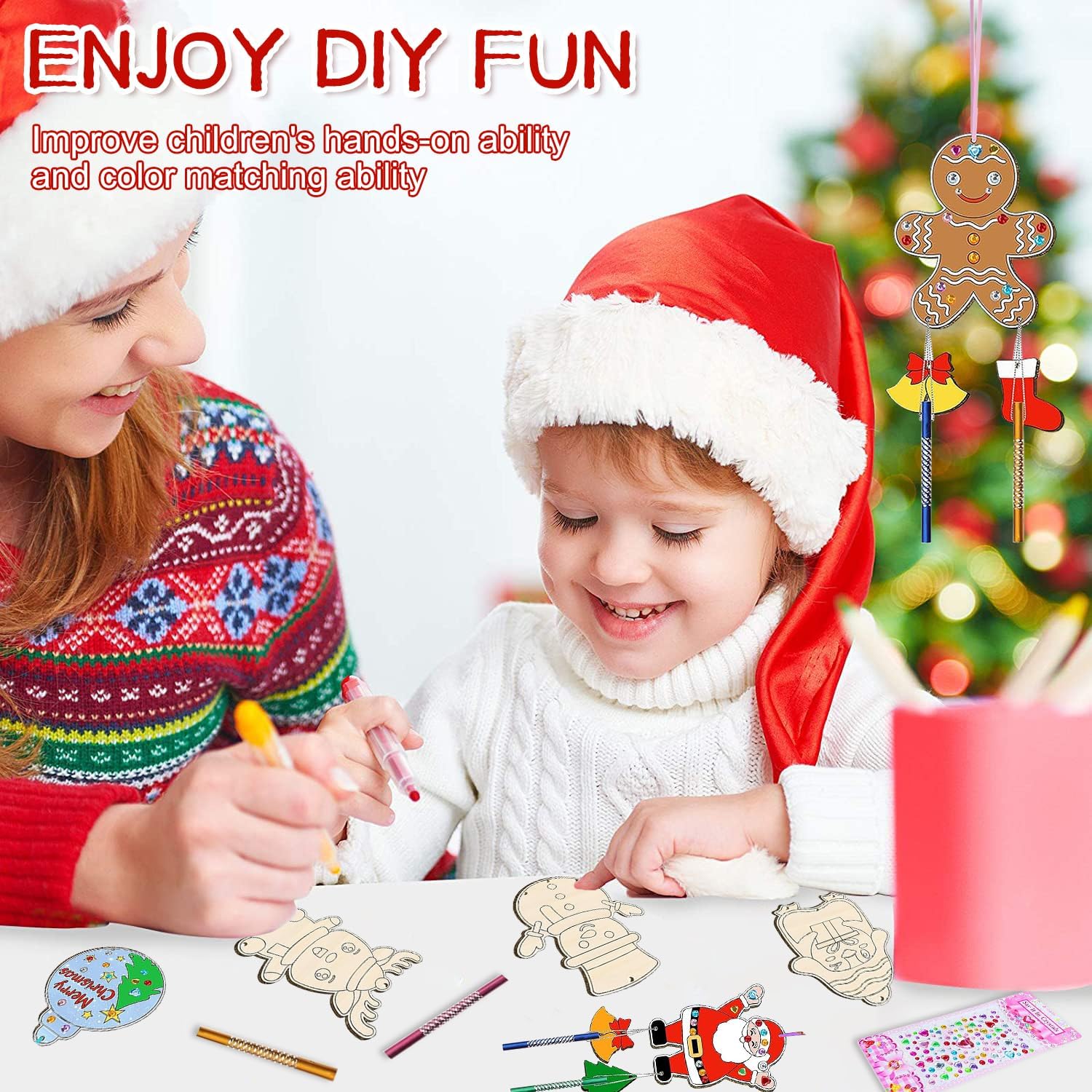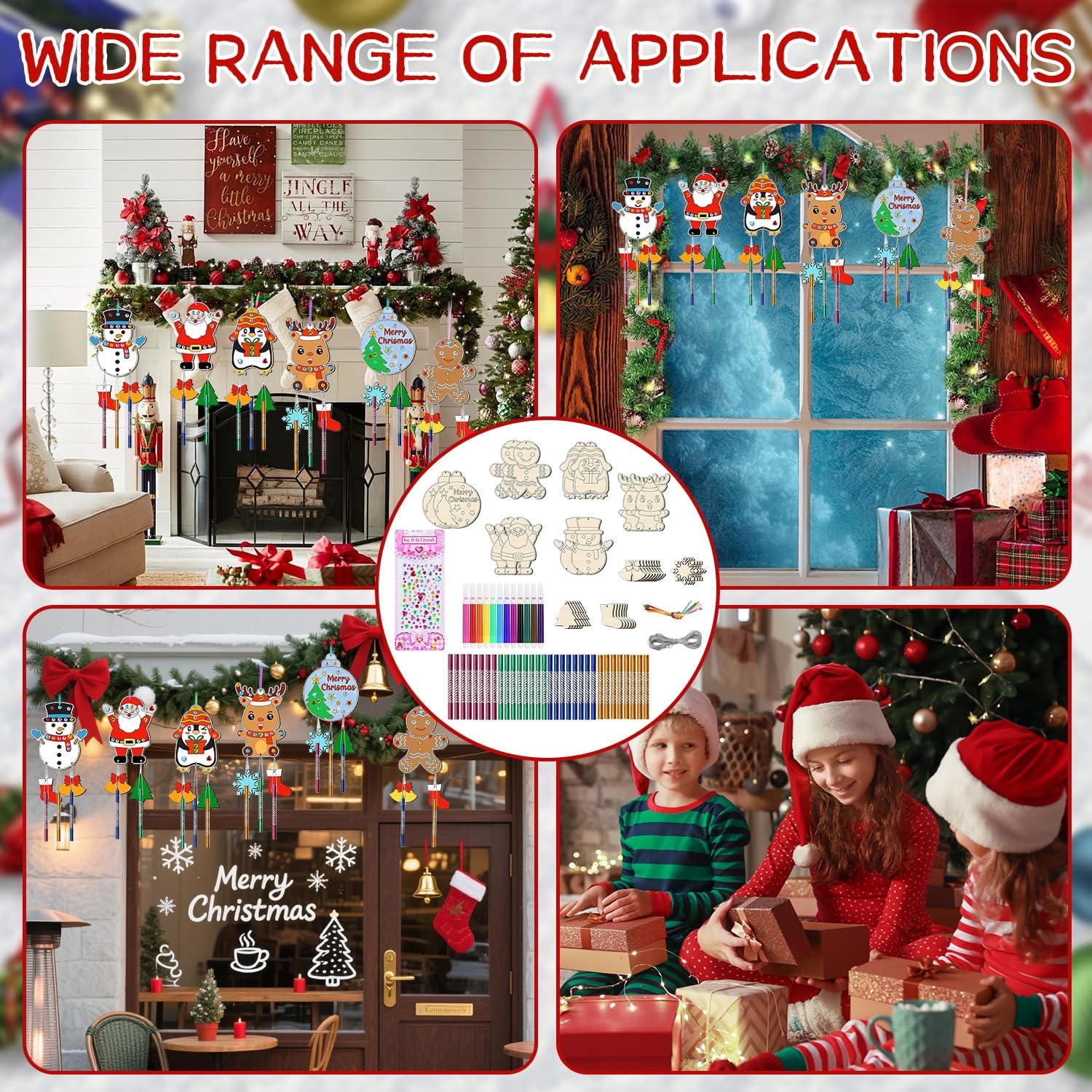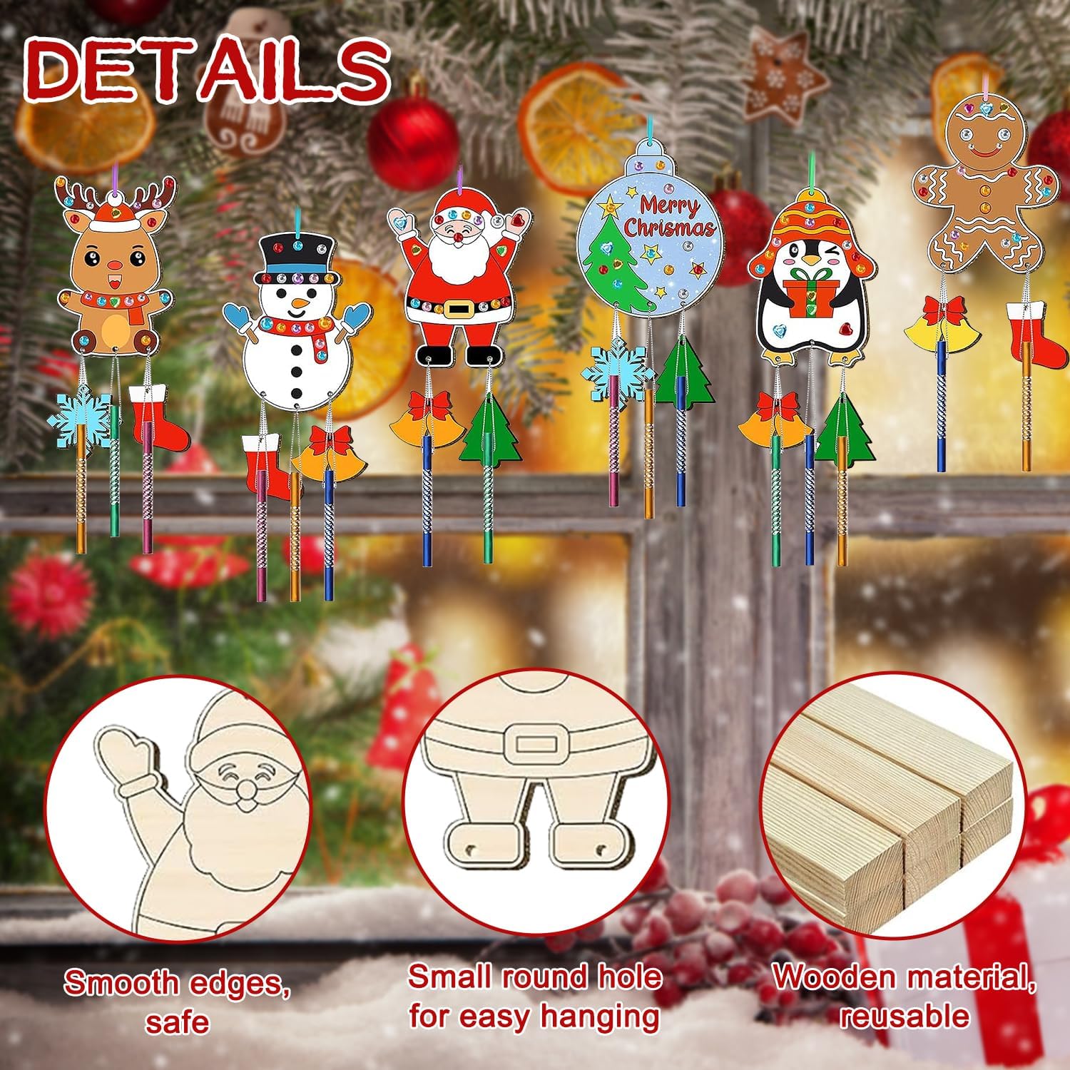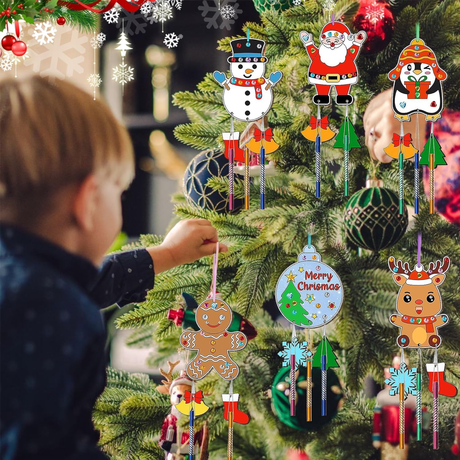 🎐⛄【Materiale di alta qualità】Realizzati in robusto legno naturale, sono decorazioni resistenti per l'albero di natale. Entrambe le facce sono levigate e ogni Set di scacciapensieri di Natale per bambini ha una superficie liscia, facile da colorare, decorare o lasciare al naturale. Possono essere riempiti con colori acrilici, glitter o pennarelli. Non tossici e sicuri per i bambini, perfetti per decorazioni natalizie fai da te. 🎐⛄【Set di scacciapensieri per bambini】Confezione set di scacciapensieri natalizio per bambini con 12 ritagli di legno natalizi non finiti in 6 stili unici (Babbo Natale, Renna, Pupazzo di neve, Pinguino, Palla di Natale, Omino di pan di zenzero), 36 campanelli a vento colorati, 24 Piccoli trucioli di legno, 15m di filo d'argento, 12 corde colorate, 12 Penne acquerellabili, 1 foglio di adesivi con strass, perfetti per i bambini per creare il loro stravagante campanellino a vento natalizio. 🎐⛄【Artigianato da dipingere】Il campanello a vento di natale in legno adotta il classico design natalizio. Lascia correre la tua immaginazione e creatività, puoi disegnare motivi interessanti su questa ornamenti natalizi in legno, scrivere auguri o aggiungere paillettes e gioielli per creare Scacciapensieri per Bambini o oggetti artigianali unici. 🎐⛄【Facile da usare】In soli tre semplici passaggi, puoi creare il tuo Fai Da Te Ciondoli Natale Scacciapensieri personalizzato! Prima dipingi i trucioli di legno, poi fai passare il filo d'argento attraverso i tubi sonori e legali sotto i fiocchi di neve. Infine, appendi il tutto con i nastri colorati. Quando il vento soffia e il carillon si muove delicatamente, la meravigliosa melodia sarà come una dolce risposta della natura. 🎐⛄【Uso multiuso】Questi campanello a vento di natale per dipingere sono perfetti regali creativi per bambini, regali significativi per Natale e compleanni. Possono stimolare l'interesse dei bambini e sviluppare le loro abilità manuali. I bambini possono giocare con i loro amici e aiutarli a integrarsi più velocemente nel gruppo.