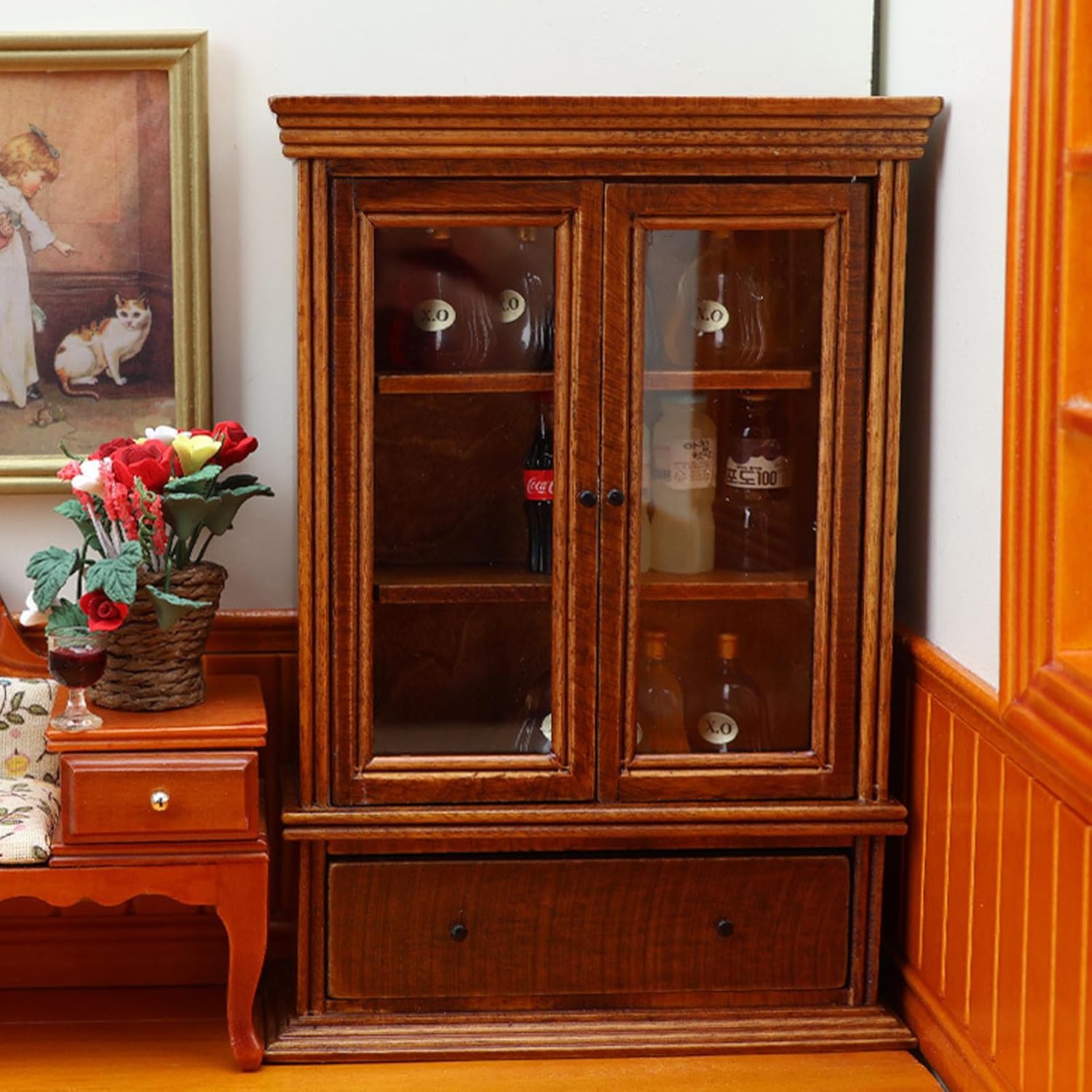 Lo scaffale per case delle bambole è adatto per case delle bambole in scala 1:12 Gli accessori per case delle bambole in miniatura dall'aspetto realistico, aggiungono facilmente più fascino e divertimento alle tue case delle bambole L'eccellente modello di aspetto è molto vicino alla realtà. Ottimi oggetti di scena fotografici È un amante del modello molto pratico che ama i decoratori delle case delle bambole Realizzato con materiali in legno, questo espositore è visivamente accattivante
