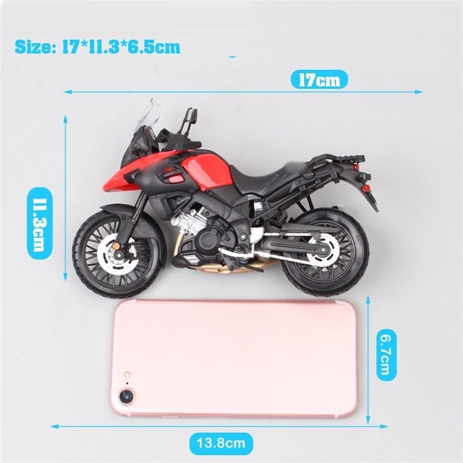 Il modello simula il funzionamento di un veicolo reale, aumentando il divertimento del gioco. Scala 1:12 Per V-Storm Adventure Touring modello DL1000 bici Diecast Toy Veicoli sportivi moto collezione di giocattoli hobby Per V-Storm Adventure Touring DL1000 Scala: 1/12 Dimensioni: 17*11,3*6,5 cm Materiale: ABS + metallo + pneumatici in gomma Il pacchetto include: 1 pezzo di modello di moto Ruote girevoli flessibili Ammortizzatore lavorabile Piega e apri cavalletto Ruote anteriori sterzanti Le dimensioni compatte e leggere del modello lo rendono facile da trasportare senza ingombro.
