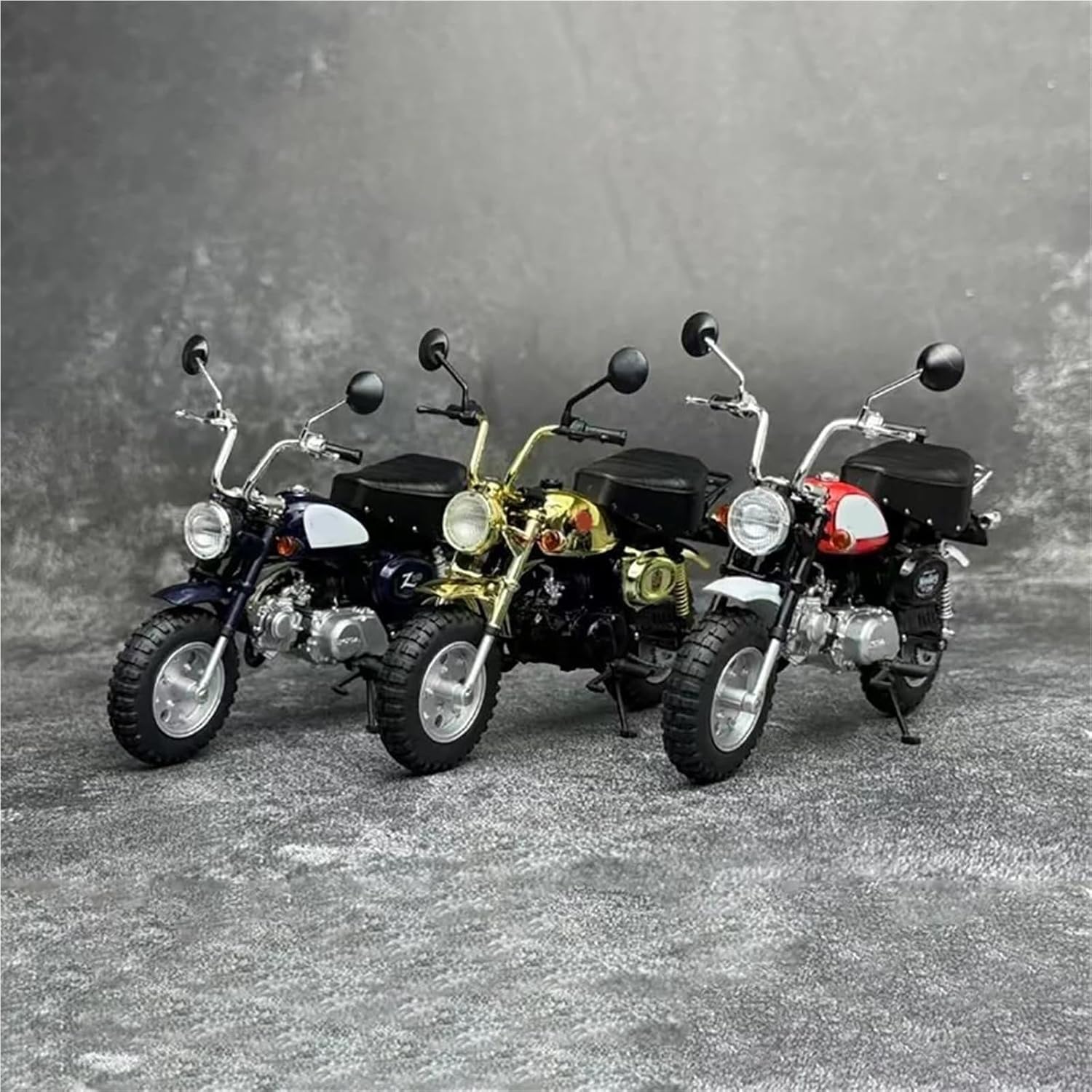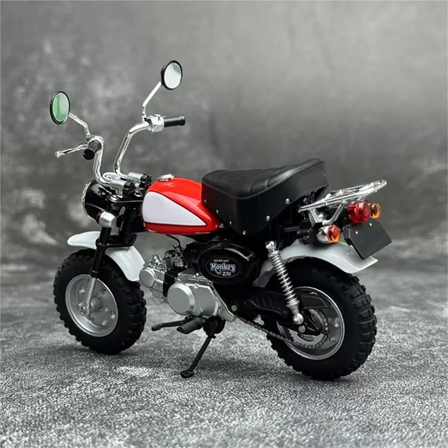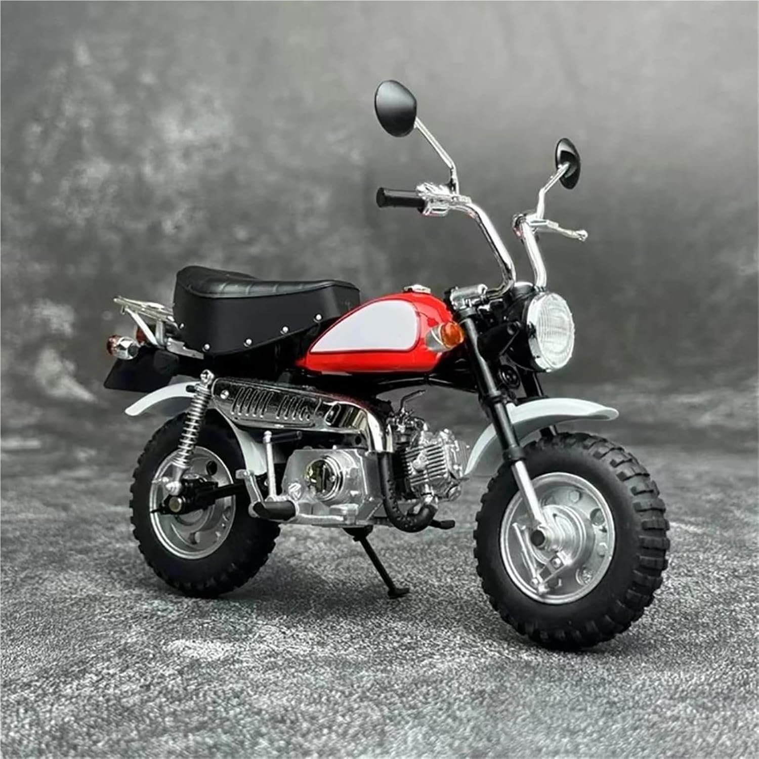 Modello di motocicletta per Little Monkey 1992 2009 Modelli di motociclette giocattolo 1:12, caratteristiche: le ruote possono rotolare, le ruote anteriori possono girare/il manubrio può girare, modello di motocicletta in lega di simulazione Il modello di motocicletta è un modello squisito realizzato in stretta conformità con la forma, la struttura, il colore, gli interni e altre proporzioni del veicolo originale. È un modello in miniatura del veicolo originale ed è progettato per riprodurre l'aspetto del veicolo originale. Realizzato in resistente lega di zinco, è resistente alle cadute e all'usura, garantendo la durevolezza del modello e la sua lunga conservazione. La finitura della vernice è uniformemente liscia, con colori vivaci e duraturi che resistono allo sbiadimento e alle scheggiature, garantendo un aspetto costantemente brillante.
