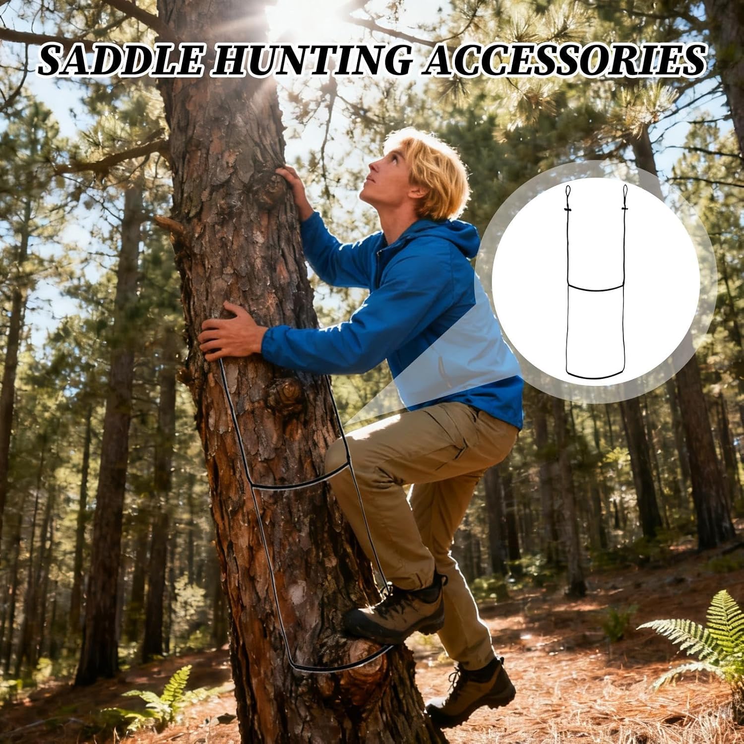 Impugnatura antiscivolo: gli ampi cuscinetti antiscivolo in gomma della corda da arrampicata sugli alberi forniscono il 60% in più di presa sulla corteccia ghiacciata, prevenendo scivolamenti pericolosi e garantendo un'arrampicata antiscivolo anche in condizioni esterne fredde. Presa sicura per le attrezzature: il design in fibra di polietilene intrecciata a mano fornisce un supporto di trasporto ultra resistente, protegge le attrezzature pesanti e previene rotture su terreni ripidi, per la sicurezza in ambienti difficili. Leggero e salvaspazio: design leggero per un'installazione rapida senza essere ingombrante, si adatta comodamente alle dimensioni della mano per un facile trasporto e stoccaggio, mentre la superficie del battistrada antiscivolo aumenta la sicurezza durante le operazioni di giardinaggio o arrampicata. Per condizioni climatiche difficili: progettata per resistere a tutte le condizioni atmosferiche, la scala per albero resiste a sfide esterne estreme, compresi i terreni ghiacciati. Offre una maggiore durata e prestazioni costanti per gli appassionati di outdoor in situazioni impegnative. Regolazione della lunghezza con una sola mano: le fibbie a forma di catena della scala per casa sull'albero in corda consentono la regolazione della lunghezza con una sola mano per un adattamento immediato a qualsiasi dimensione di albero durante la costruzione o l'implementazione della casa sull'albero
