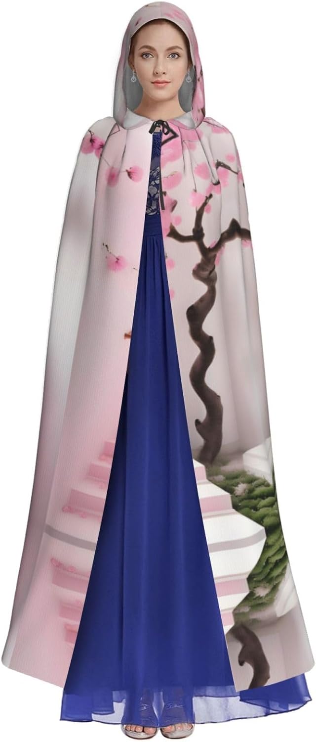 Scala in fiore di ciliegio rosa mantello con cappuccio, abiti da uomo e donna adulti, costumi cosplay di Natale e Halloween, feste in costume