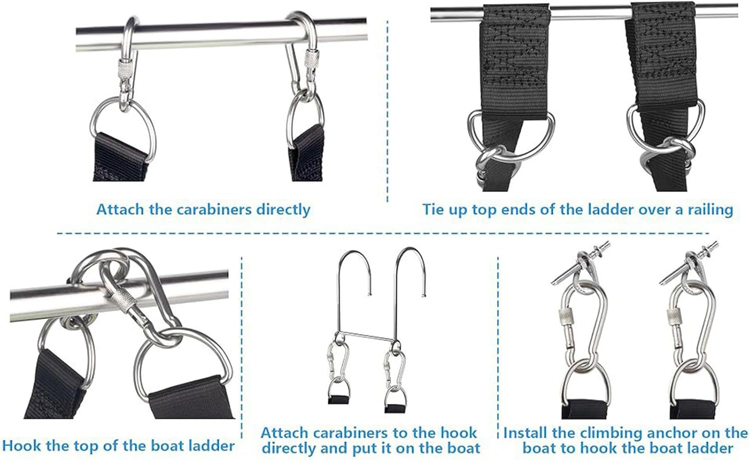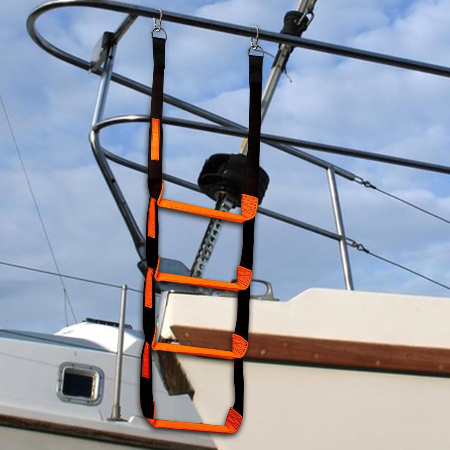 Resistenza marittima: combina tessuto in poliestere resistente ai raggi UV con acciaio inossidabile per accessori per barche, offre una maggiore resistenza e un supporto di trasporto uniforme in situazioni di utilizzo impegnative. Facile da usare: la scala per barche con struttura pieghevole pieghevole garantisce un facile trasporto e una conservazione ottimizzata per lo spazio. Perfetto per gli utenti che necessitano di elevata mobilità e utilizzo efficiente durante i viaggi. Facile da usare: installazione senza attrezzi con clic rapidi, dotato di un doppio sistema di bloccaggio per una presa sicura sul bordo della barca e un funzionamento facile da usare, garantisce prestazioni affidabili senza alcuna circostanza. Caratteristiche di sicurezza migliorate: le barre stabili e le texture antiscivolo migliorano il supporto, mentre le distanze ottimizzate dei gradini garantiscono prestazioni di arrampicata sicure e stabili sulla scala. Utilizzo ottimizzato: pratica scala per barche per camminare senza intoppi, ideale per kayak e gommoni, aumenta la sicurezza operativa.