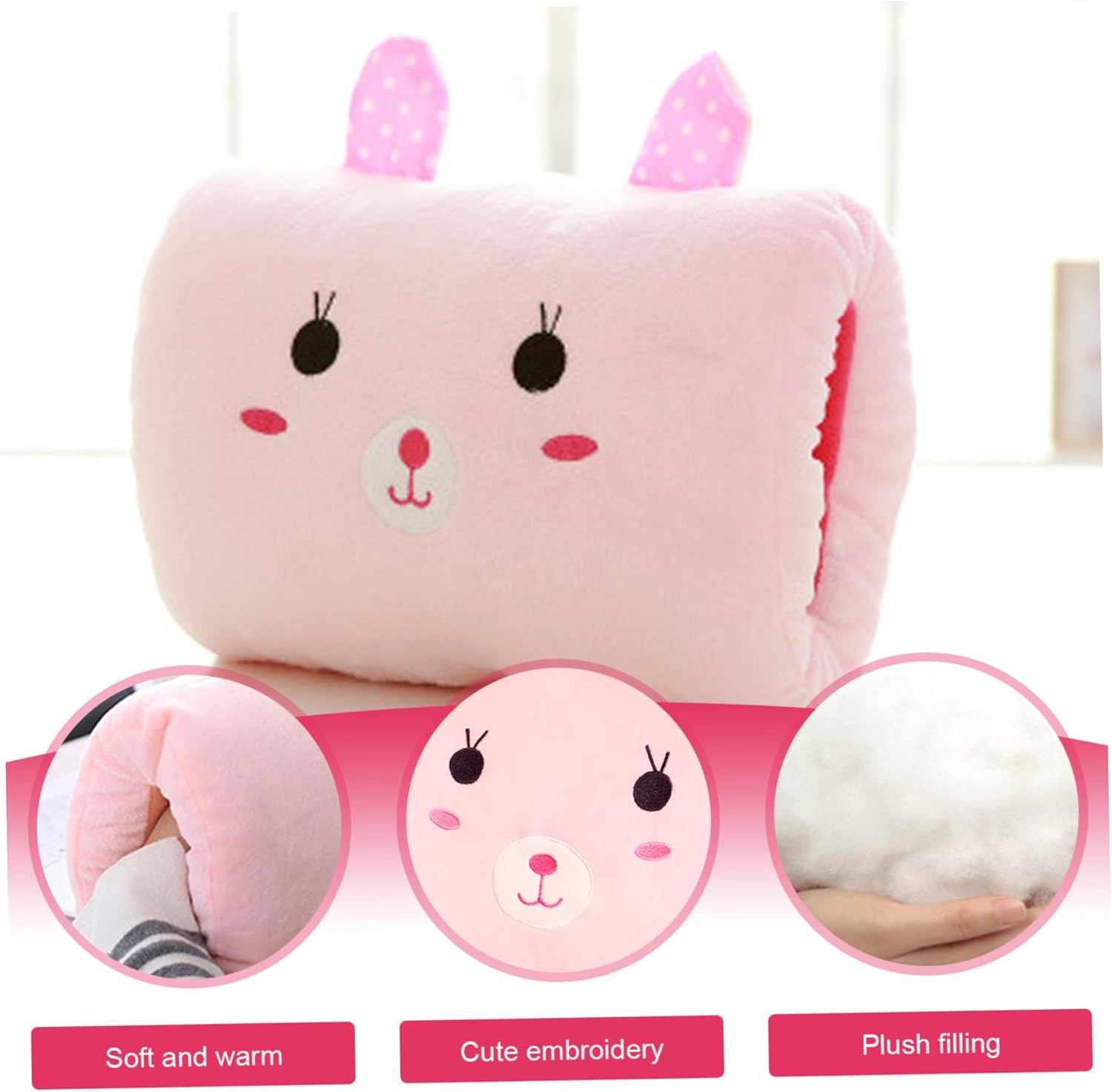 Affidabile e facile da pulire: realizzata con materiali di alta qualità, la custodia scaldamani mantiene il calore nonostante l'uso ripetuto e il suo tessuto consente una manutenzione semplice, garantendo comfort e praticità duraturi per i bambini attivi. Morbido comfort e calore: questo cuscino scaldamani per bambini con coniglio cartone animato fornisce un calore delicato e accogliente progettato per le mani piccole, rendendolo un sacchetto scaldamani non elettrico ideale per i bambini..Perfetto per i viaggi, offre comfort e ritenzione del calore senza cavi o batterie. Sicuro ed ecologico: questo manicotto non elettrico utilizza la ritenzione naturale del calore, garantendo sicurezza e facilità d'uso per i bambini senza i rischi dei dispositivi elettrici, rendendolo adatto ai genitori che cercano soluzioni ecosostenibili per scaldare le mani. Design carino e adatto ai bambini: caratterizzato da un adorabile design a forma di cartone animato di coniglio, questo scaldamani piace ai bambini e incoraggia un uso coerente durante la stagione fredda o le attività all'aperto, combinando funzionalità ed estetica giocosa. Essenziale da viaggio portatile e leggero: compatto e leggero, il cuscino per le mani adatta facilmente allo zaino o alle tasche, rendendolo un comodo accessorio da viaggio essenziale per mantenere le mani dei più piccoli al caldo durante gli spostamenti..Ideale per la scuola, i viaggi o il gioco all'aperto.