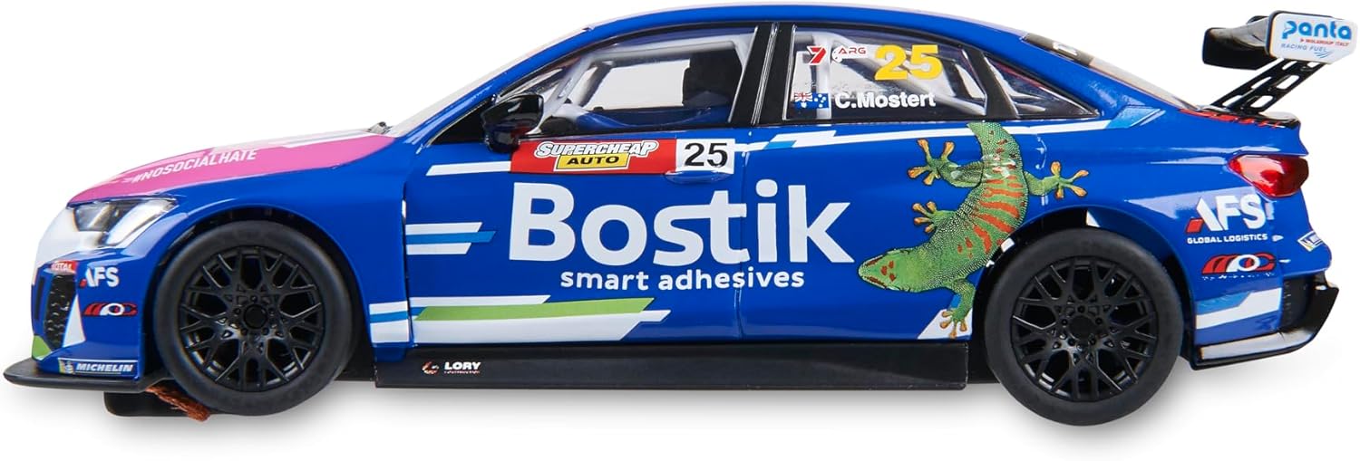 Auto Slot per circuiti Scalextric Originale: Auto scala 1:32 in finiture e disegni attraenti. Goditi la corsa con la tua auto preferita. Splendida Audi RS3 LMS TCR - Bostik in scala 1/32: Ricreato con una finitura realistica. È il giocattolo ideale per incoraggiare l'interattività genitore-figlio, mentre questi ultimi imparano giocando. Un regalo perfetto per compleanni, Natale, anniversari o qualsiasi occasione speciale, per bambini e adulti. Goditi l'esperienza scalextric con i tuoi figli e descrivi il loro mondo emozionante. Il marchio Scalextric garantisce il rispetto dei più alti standard durante il processo di produzione, al fine di garantire un'eccellente esperienza al cliente.
