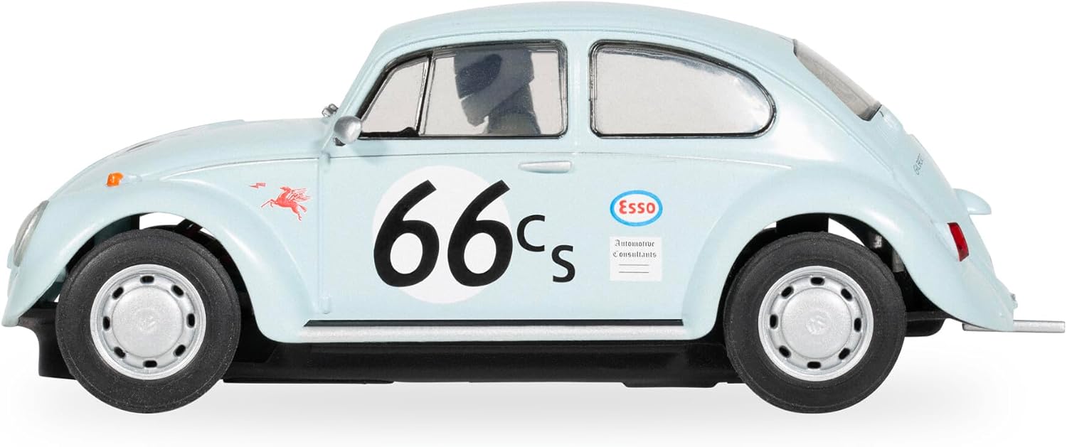 La casa delle corse di slot car; introdotto per la prima volta nel 1957; nel corso dei suoi 66 anni di storia, Scalextric ha offerto set entusiasmanti, modelli realistici e altro ancora Le slot car iniziarono con le semplici auto elettriche in banda stagnata, per poi migliorare fino agli attuali modelli in plastica altamente dettagliati nel 1960; con nuove idee e tecnologie che fanno progredire costantemente l'hobby, ci saranno molti altri viaggi a venire Fatta eccezione per una famosa star del cinema, l'umile Maggiolino non è sempre considerato la più vivace delle auto da corsa; ma in alcune serie, la piccola VW si è rivelata una proposta piuttosto competitiva 1x slot car blu in scala 1:32 con lame guida facili da cambiare, dettaglio elevato, DPR, luci anteriori e posteriori, ingrandimento, presa digitale tipo C8515 ed è compatibile con candela, ARC AIR/ARC ONE e ARC Pro/ Digital (chip necessario)