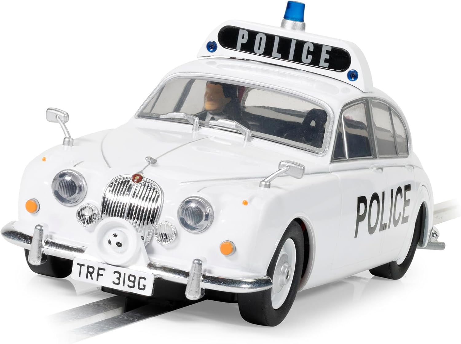 Slot car Scalextric: apprezzata da truffatori e rapinatori di banche, la Jaguar MK2 era così adatta a fare progressi che anche la polizia è stata costretta a usarle per tenere il passo Questo modello è completo di luce lampeggiante e segnaletica varia, assicurandosi che nessuno possa perderlo accelerando dietro di loro Magnatrazione: i magneti situati nel telaio forniscono ulteriore carico aerodinamico, aiutano a mantenere l'auto in pista durante le corse ad alta velocità e impediscono alla parte posteriore dell'auto di slittare lateralmente e schiantarsi Auto resistenti: carrozzeria monopezzo ottimamente robusta, costruita per durare utilizzando materiali durevoli di ottima qualità e abbastanza resistenti da resistere alle corse a pieno impatto Cosa è incluso: 1x Jaguar MK2; l'auto viene fornita con un foglio di adesivi che ti permette di decorarla e personalizzarla se lo desideri