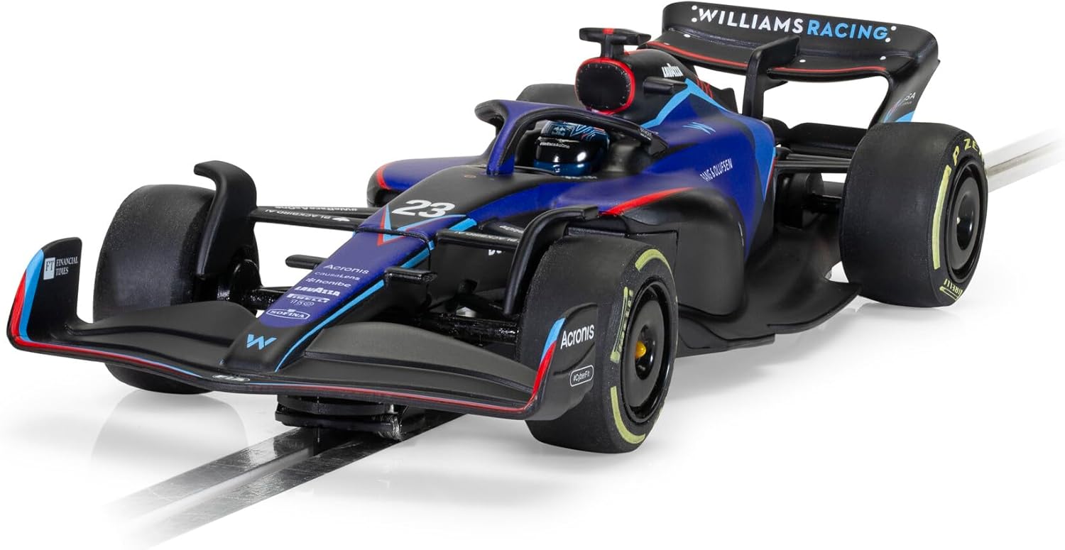 Scalextric Slot Cars: Tornato in Formula 1 dopo un anno nella serie DTM, il pilota inglese-thailandese Alexander Albon ha dimostrato di essere il pilota dominante nel team Williams con alcune forti lotte in campo e alcune buone prestazioni in qualifica; questo pilota ha dimostrato ancora una volta perché merita un posto al vertice dello sport motoristico che è la Formula 1 Magnatrazione: i magneti situati nel telaio forniscono ulteriore carico aerodinamico, aiutano a mantenere l'auto in pista durante le corse ad alta velocità e impediscono alla parte posteriore dell'auto di slittare lateralmente e schiantarsi Auto resistenti: carrozzeria monopezzo ottimamente robusta, costruita per durare utilizzando materiali durevoli di ottima qualità e abbastanza resistenti da resistere alle corse a pieno impatto Cosa è incluso: 1x Williams FW44; l'auto viene fornita con un foglio di adesivi che ti permette di decorarla e personalizzarla se lo desideri