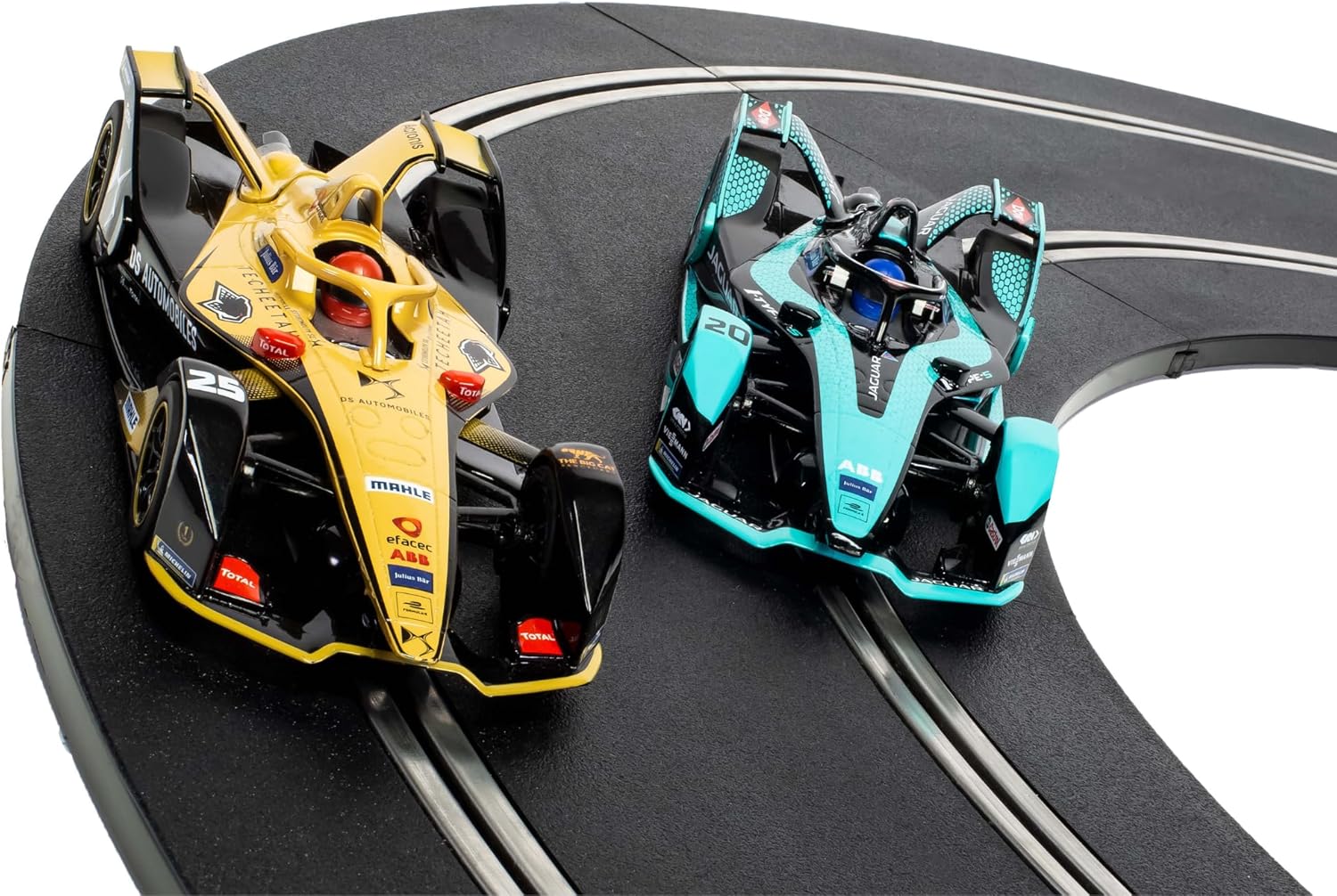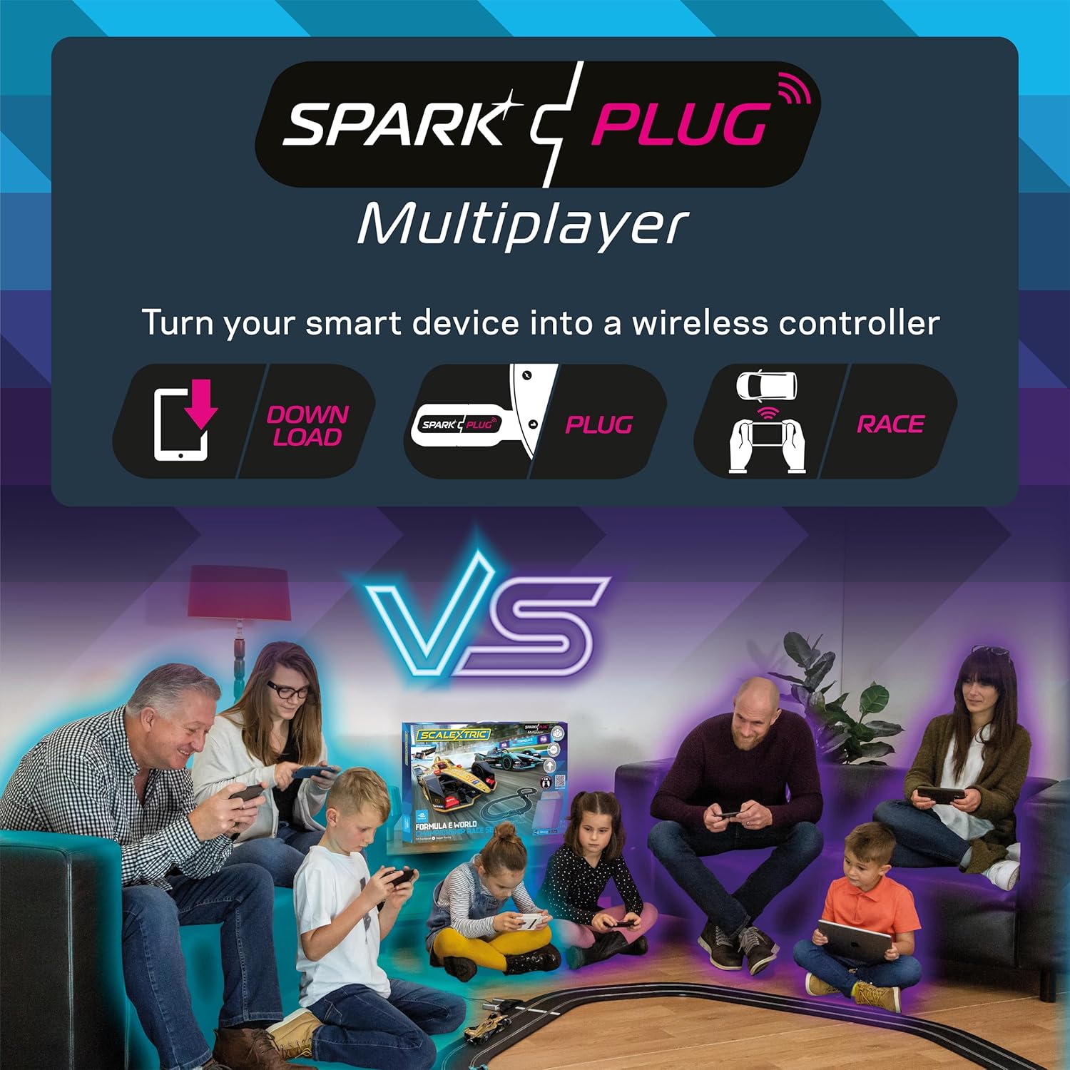 Scalextric Set di piste da corsa per bambini e adulti: questo è Scalextric, ma non come lo conosci. Il set di giocattoli Scalextric Spark Plug Formula E può avere fino a 12 giocatori: 2 piloti di auto da corsa e una squadra di 5 equipaggi aggiuntivi. L"equipaggio del box può schierare potenziamenti e viene assegnata una posizione di equipaggio in-app, compreso il capo meccanico e il lecca-lecca. Completa i mini giochi in squadra per avere successo nella sfida dell'equipaggio dei box Set di piste da costruzione: set Scalextric per adulti e bambini, con tutto il necessario per costruire la tua carriera automobilistica. È quindi possibile aggiungere nuove auto, pezzi flessibili per pista auto e accessori per auto Scalextric per costruire il tuo layout definitivo o aggiornare le piste da corsa per auto slot analogiche alle opzioni Digital e ARC. Piste da corsa per ragazzi e ragazze da divertirsi con i genitori insieme Veicoli da gioco per adulti e bambini: la candela di accensione è l'ultima innovazione di Scalextric che ti consente di correre con la tua auto utilizzando il tuo dispositivo intelligente Android o iOS. In questo set di piste da corsa, combatti per il campionato come potente Jaguar o DS Techeetah Azione multigiocatore Speed Track: con 2 piloti e 10 ruoli pitstop tra cui scegliere, fino a 12 persone possono giocare tutte in una volta e avere un impatto sull'esito della gara Controllo senza fili della pista di gara: con questo set di candele puoi controllare la gara con il tuo dispositivo intelligente abilitato Bluetooth. Scegli di essere l'autista o parte dell'equipaggio dei pit! L'equipaggio del Pit può schierare power-up e intraprendere la sfida pitstop Pitstops & Power-up: Chi sceglierai, un meccanico capo o la persona lecca-lecca? 5 ruoli da scegliere. Attiva i tuoi power-up al momento giusto e aiuta le tue auto mini piloti a vincere! Scegli tra Fanboost, Modalità Attacco o Limita il tuo avversario. Lavora come una squadra per completare i minigiochi in-app il più rapidamente possibile Contenuto della confezione: 1 auto Jaguar Formula E, 1 auto Forumula E DS Techeetah, 497 cm di pista per auto giocattolo, 2 dongle wireless per candela, 1 confezione di piastre intrecciate, 2 supporti per binari Compatibilità dispositivo app ARC: Bluetooth minimo V.4.o BLE, Android OS - 4.4.2 KitKat e superiori, Apple OS - iOS 5.0 e superiori. Tutti i dispositivi corrispondenti a queste specifiche dovrebbero essere compatibili con ARC, tuttavia, non siamo in grado di garantire la compatibilità di tutti i dispositivi corrispondenti a questo specifico a causa delle differenze nelle modifiche al sistema operativo/hardware dei produttori. Bluetooth 4.0 non è compatibile con sistemi operativi inferiori a quelli dichiarati