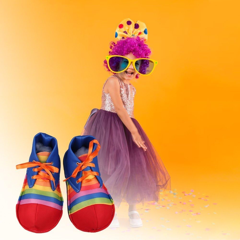 Taglia: abbiamo 2 taglie di scarpe arcobaleno, taglia per adulti e taglia per bambini, morbide e comode, che possono soddisfare le esigenze di persone diverse. Caratteristica: le suole delle nostre scarpe decorative per costumi festa sono più spesse delle altre e resistenti all'usura. Varie occasioni: le scarpe clown cosplay sono adatte per Halloween, carnevali o alcune feste in maschera. Materiale: i nostri graziosi accessori per costumi sono realizzati in tessuto, morbidi e comodi indossare. Design colorato: le scarpe arcobaleno clown adottano colori diversi, aggiungendo elementi adorabili e fantasiosi abbinamento di outfit.
