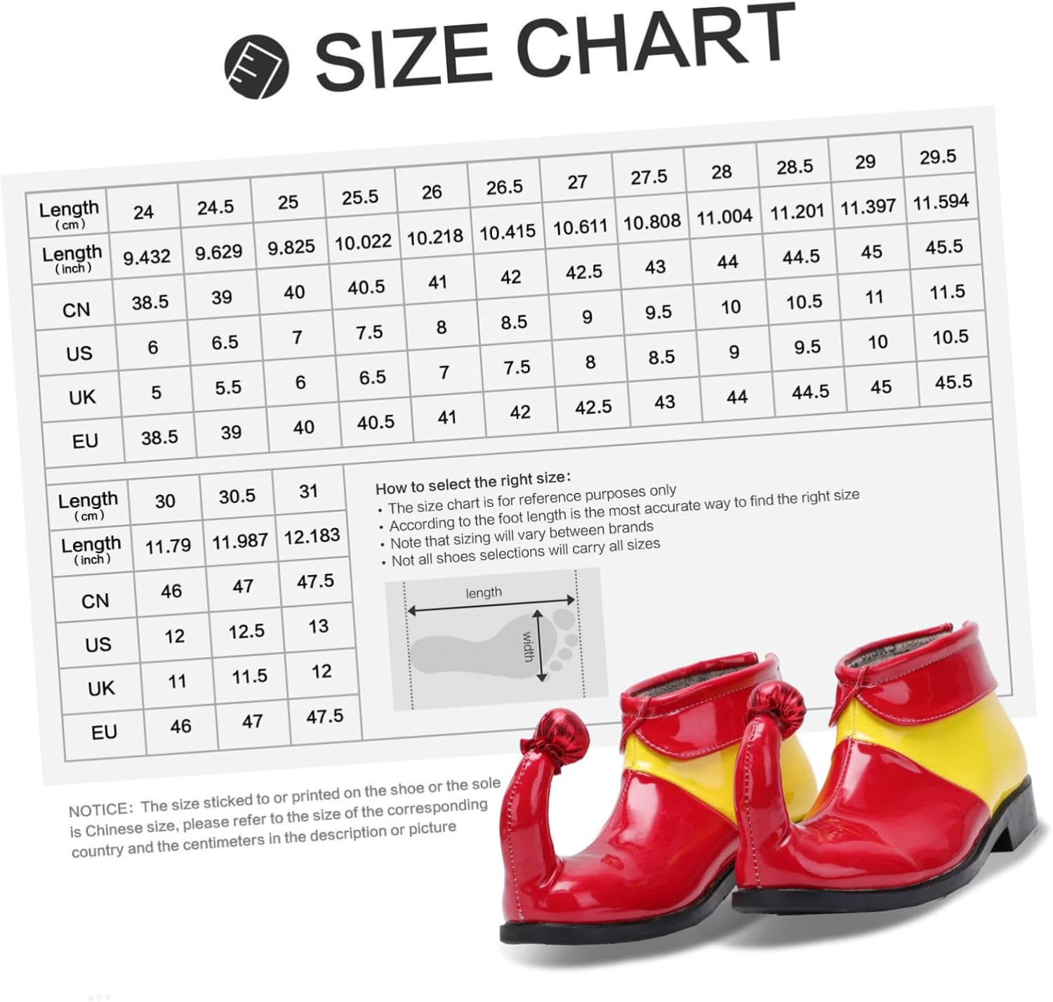 dei pacchetti 1 paio scarpe clown Caratteristiche - Materiale: PU, stoffa, in gomma per clown - Taglia 41: 25,5 cm, 7,5 US, 6,5 UK, 40,5 EU, 10,02 15 pollici pagliaccio cosplay -Informazioni prodotto: scarpe corno - Taglia 40: 25,0 cm, 7 US, 6 UK, 40 EU, 9,825 pollici in PU per clown - Colore: Scarpe clown rosse e gialle per - Taglia 39: 24,5 cm, 6,5 US, 5,5 UK, 39 EU, 9,62 cm, scarpe clown cosplay 85 pollici - : la taglia attaccata o stampata sulla o sulla suola è , riferimento taglia del corrispondente e nella descrizione o nell'immagine delle scarpe clown. - Taglia 44: 27,0 cm, 9 US, 8 UK, 42,5 EU, 10,6 pollici scarpe clown - Taglia 43: 26,5 cm, 9,5 US, 7 UK, 41 EU, 10,41 Scarpe clown 45 pollici per feste - Taglia 42: 26,0 cm, 8 US, 7 UK, 41 EU, 10,2 pollici scarpe clown in maschera - Taglia 38: 24,0 cm, 6 US, 5 UK, 38,5 EU, 9,432 pollici scarpe clown per adulti - Non è solo la decorazione perfetta, ma anche clown per per i tuoi e . - Materiale durevole e riutilizzabile, può utilizzato come accessorio clown a lungo termine. - Un bel colore può aggiungere elementi adorabili e fantasiosi tuoi outfit, per cosplay clown. - La taglia è adatta maggior parte degli adulti. laccetto ti a indossarlo facilmente e può adattato tue esigenze accessori per cosplay. Descrizione della merce graziose scarpe clown per indossare queste scarpe clown oversize sulle tue scarpe e puoi prepararti per clown!. Grandi scarpe clown Questo articolo è un paio scarpe clown, realizzate in PU per l'uso. Scarpe clown cosplay Se vuoi recitare la parte del clown, queste scarpe clown sono l'articolo .