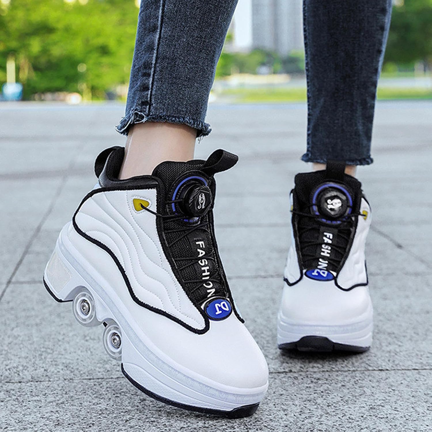 ❤ I pattini a rotelle multiuso regolabili sono diversi dai tradizionali pattini a rotelle sul mercato. Le ruote nascoste possono essere nascoste come normali scarpe sportive, permettendoti di regolare i pattini a rotelle. Non solo puoi pattinare, puoi anche correre. ❤ Il materiale superiore dei pattini a rotelle è realizzato in tessuto di fibra ultrafine di alta qualità, con una superficie liscia e una consistenza morbida. L'interno in rete è realizzato in tessuto a rete, molto confortevole e traspirante. Può disperdere il calore generato durante l'esercizio e mantenere i piedi sempre comodi e asciutti. ❤ I nostri pattini a rotelle a doppia fila sono più sicuri e più stabili dei pattini a rotelle dritti. Il design intelligente con lacci e il supporto alto alla caviglia ti offrono molta flessibilità e libertà, permettendoti di sviluppare più abilità e fornire supporto e comfort dove ne hai più bisogno. ❤ Le ruote in PU robuste e durevoli hanno una forte capacità di carico, una maggiore resistenza all'usura, assorbimento degli urti e una forte presa, che garantiscono sicurezza e stabilità, così puoi goderti un funzionamento regolare delle ruote e una frenata di lunga durata. ❤ Questo è un pattino a rotelle elegante e alla moda, perfetto per i principianti che si esercitano. È il regalo perfetto per amici o familiari e anche la scelta ideale per il pattinaggio indoor e outdoor.