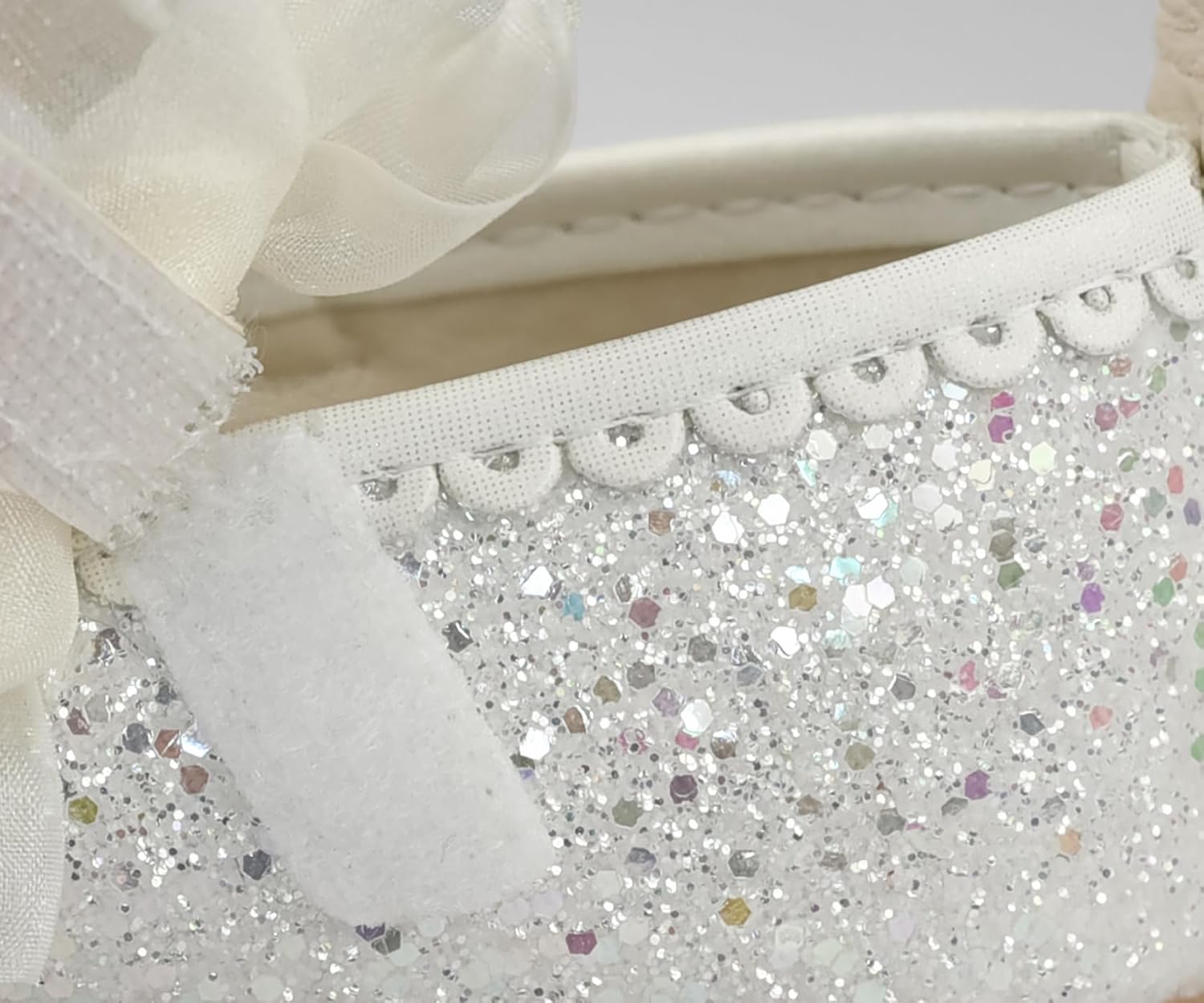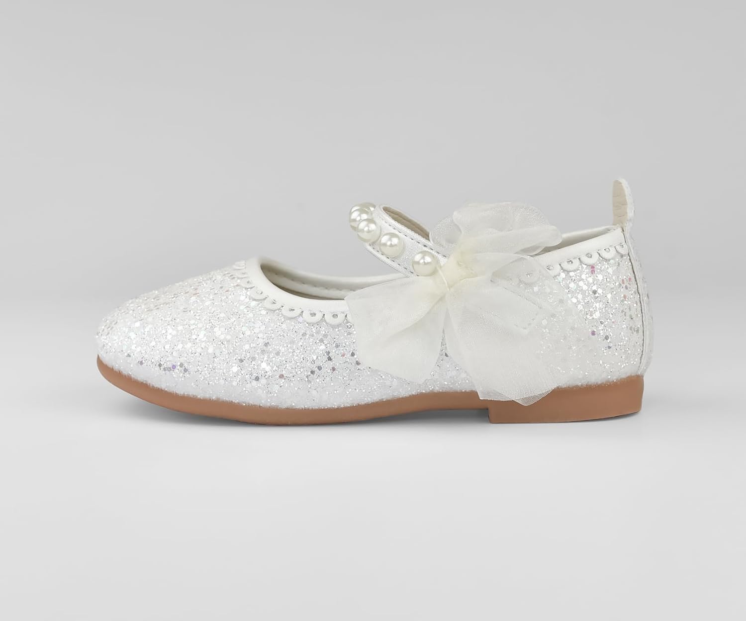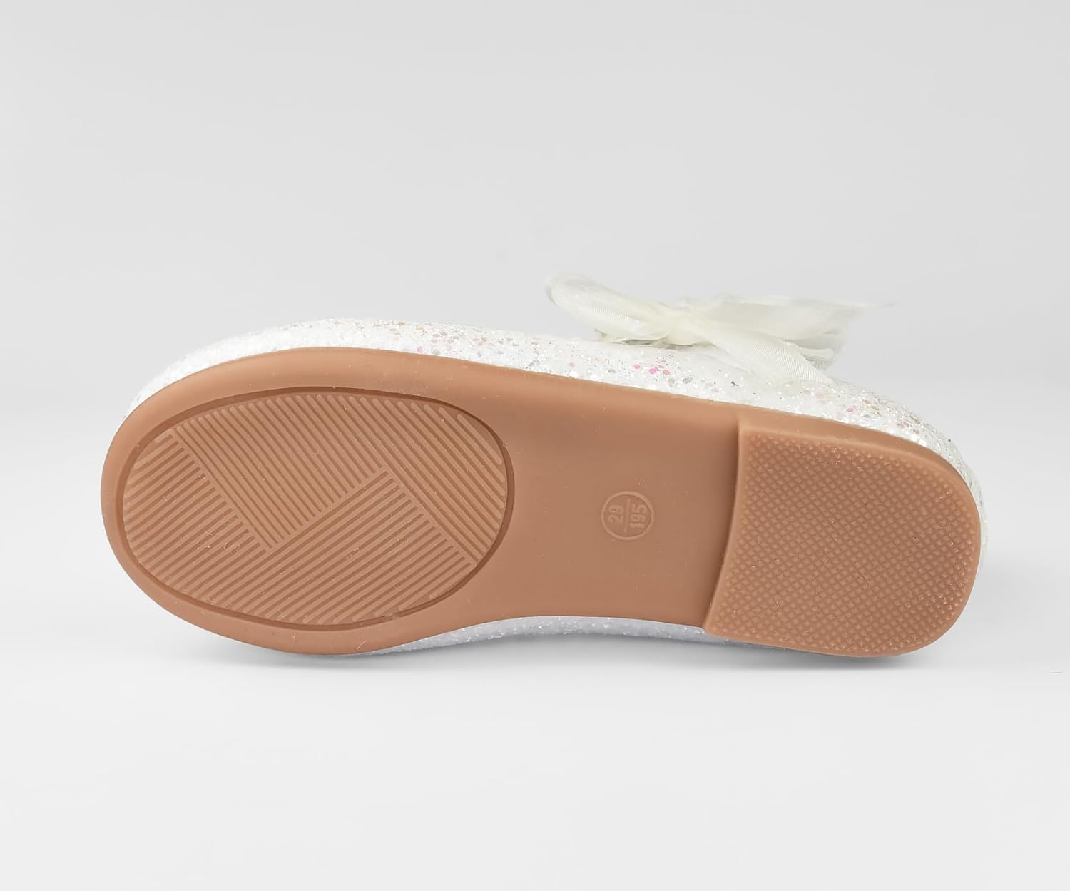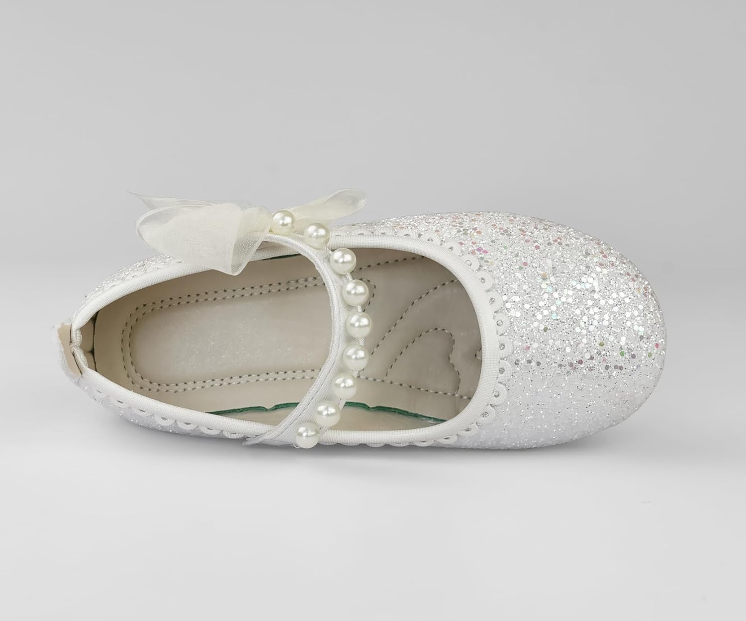 Ci servivano delle ????ballerine???? da abbinare ad un abito in tulle rosa cipria e abbiamo fatto una prova con queste scarpine glitterate. L'estetica è ottima, colore per noi perfetto e dettagli come fiocco e perle devo dire carini. Sicuramente bisogna essere consapevoli che non si tratta di scarpe per "camminare", vanno benissimo per un evento, per shooting fotografici, per un compleanno ma sicuramente non per andarci a scuola o al parco. La qualità delle cuciture e rifiniture non è eccelsa ma comunque accettabile per l'utilizzo e una menzione a parte va fatta per le taglie. Il venditore ha incluso tra le immagini una tabella con la "lunghezza del piede", fate assolutamente riferimento a quella e non al numero! Ad esempio il 28 che ho preso io dovrebbe sulla carta avere una misura interna di 19cm per un piede di circa 18 e qualcosa mentre in realtà ha una misura interna di circa 17 cm per un piede di 16 come indicato in tabella. Misurando il piedino andate sul sicuro, in alternativa regolatevi acquistando 2 taglie in più della vostra (consiglio anche di calcolare un calzino visto che sono un po' rigide dietro e potrebbero segnare).