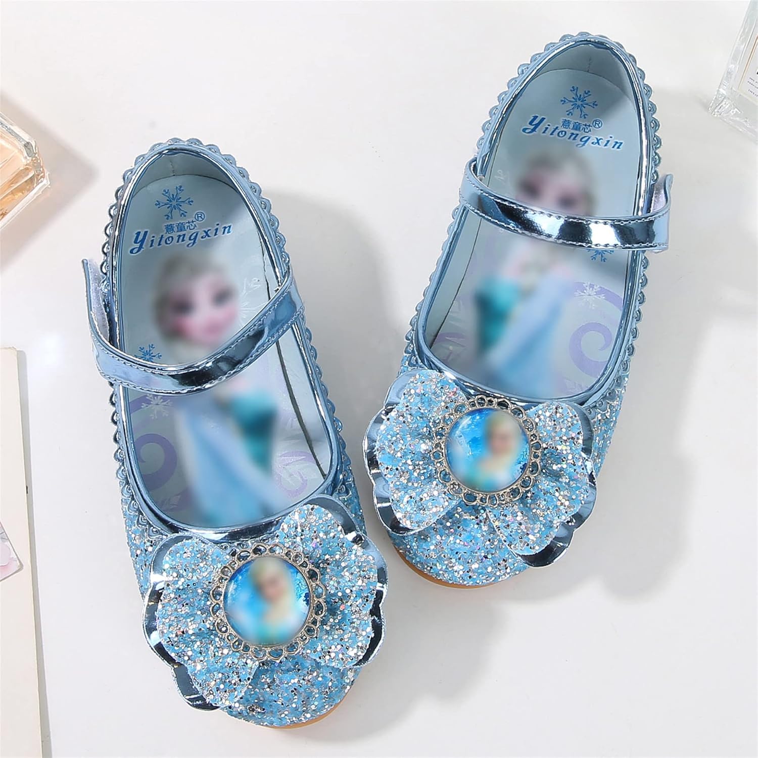 Scarpe da principessa per ragazze con tacco piatto Frozen Elsa Anna Glitter Fancy Dress Viola Argento Blu Rosa Dolce Halloween Natale Compleanno Carnevale Cosplay
