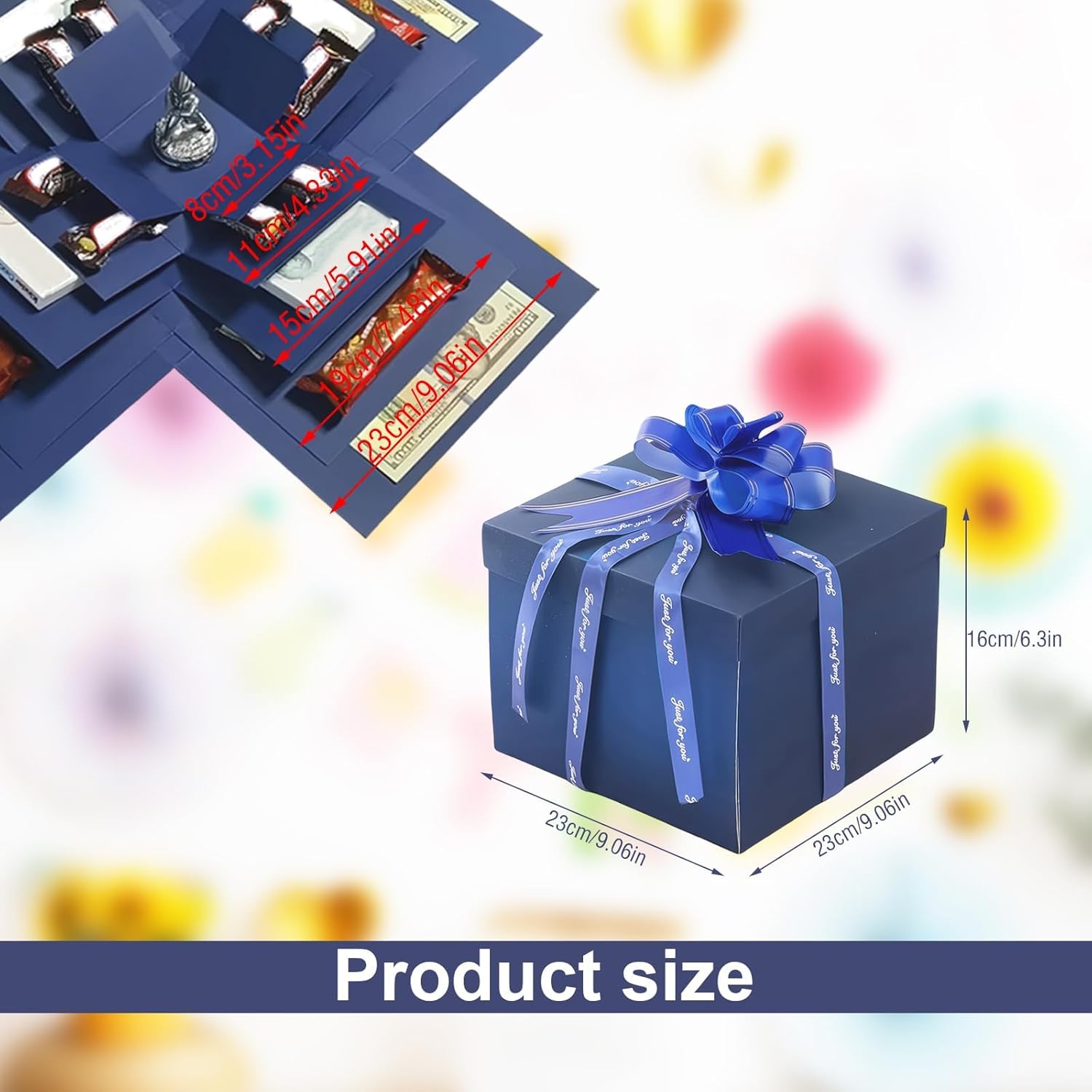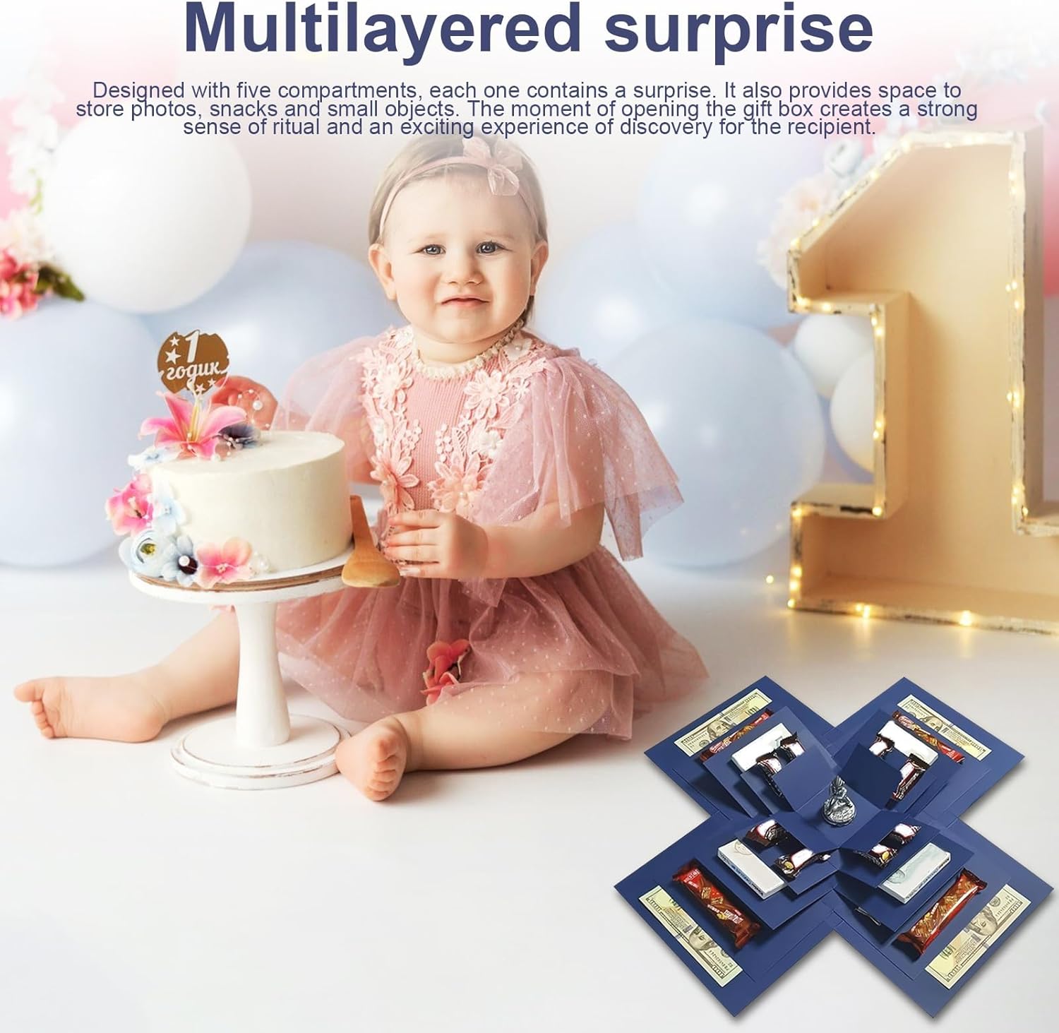 Qualità eccellente: la confezione regalo è realizzata in materiale cartaceo di alta qualità, realizzata con cura con eccellente durata, il design ispessito la rende più forte, non facile da strappare o danneggiare, consistenza eccellente, buona esperienza visiva e tattile Sorpresa multistrato: la scatola di caramelle adotta un design diviso a 5 strati per nascondere sorprese su ogni strato, che può contenere foto, snack, piccoli oggetti, ecc., e crea un senso di cerimonia quando si apre la scatola, creando un'atmosfera di sorpresa per i destinatari per esplorare ulteriormente la creazione fai-da-te: confezione regalo con il coperchio è facile da montare, puoi completare l'assemblaggio con la tua famiglia e i tuoi amici per provare il divertimento del fai-da-te e puoi anche scrivere e registrare i ricordi felici tra te e i tuoi cari all'interno della confezione regalo per portare loro sorpresa e felicità Ricchi accessori: scatola a sorpresa con 5 pezzi di nastro decorativo (diverse dimensioni), 1 pezzo di nastro biadesivo, 2 pezzi di nastro in tessuto, facile da incollare e attaccare i regali e Scatole regalo per soddisfare le esigenze di decorazioni e applicazioni personalizzate Ampia gamma di applicazioni: La confezione regalo di nozze è adatta per compleanni, anniversari, matrimoni, San Valentino e altre occasioni, e possono anche essere usati come anniversari, fidanzamenti, celebrazioni e altri regali per trasmettere calore dello spirito, è una scelta di qualità per esprimere sentimenti