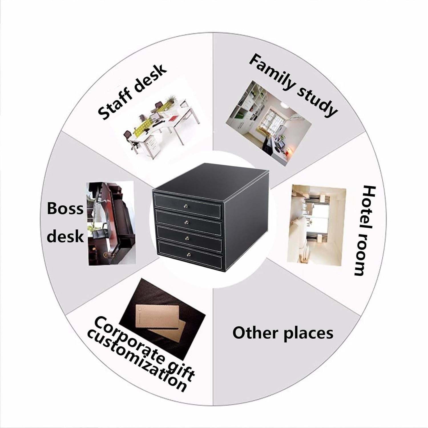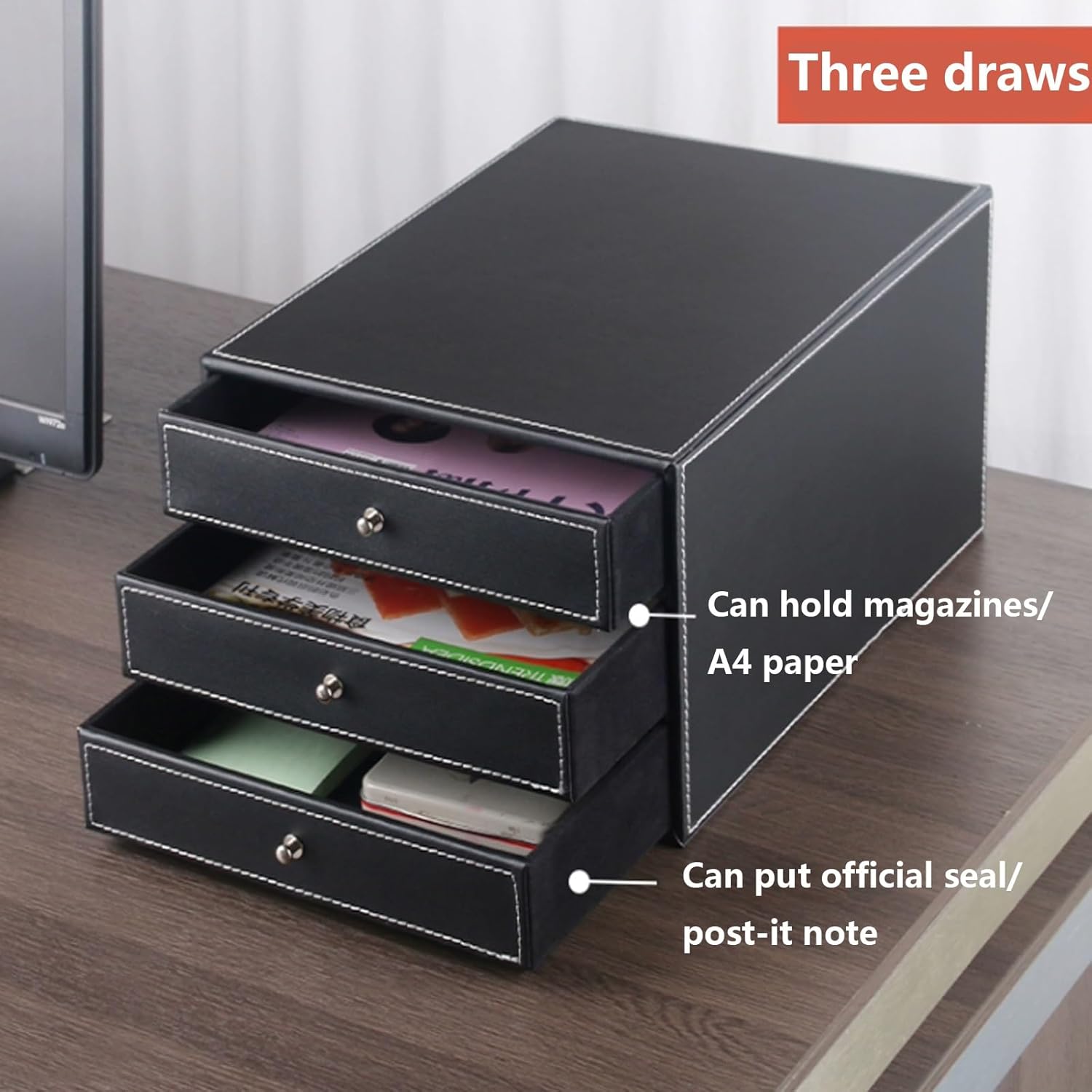 Spazioso spazio di archiviazione: goditi da 3 a 4 ampi cassetti nei nostri armadietti da ufficio, perfetti per riporre facilmente i tuoi oggetti. La grande capacità di ciascun cassetto ti consente di mantenere il tuo spazio di lavoro organizzato e ordinato. Niente più preoccupazioni per gli oggetti smarriti grazie alla possibilità di classificazione ordinata. Versatilità eccezionale: che sia in ufficio, a casa, in hotel o in uno studio, i nostri cassetti da scrivania trovano il loro posto. Offrendo uno spazio di contenimento impeccabile, si adattano a tutti gli ambienti, professionali o personali, per riporre in modo ordinato i propri effetti personali. Robustezza ed eleganza: Realizzati con materiali solidi, i nostri cassetti da scrivania presentano un esterno in pelle che non solo migliora l'estetica, ma garantisce anche una durata infallibile. La loro generosa capacità garantisce uno stoccaggio ottimizzato, soddisfacendo le vostre esigenze a lungo termine. Design raffinato: con il bordo della scatola portaoggetti da scrivania termosaldato, i nostri cassetti offrono una superficie liscia, perfettamente rifinita e sicura. Le comode maniglie consentono una facile apertura e il loro design impilabile lo rende facile da riporre sotto un tavolo, massimizzando lo spazio. Servizio post-vendita di qualità: i nostri cassetti da scrivania sono apprezzati ovunque e la soddisfazione del cliente è la nostra priorità. Se, contro ogni aspettativa, non sei completamente soddisfatto, non esitare a contattarci per un rimborso totale, senza bisogno di spiegazioni.
