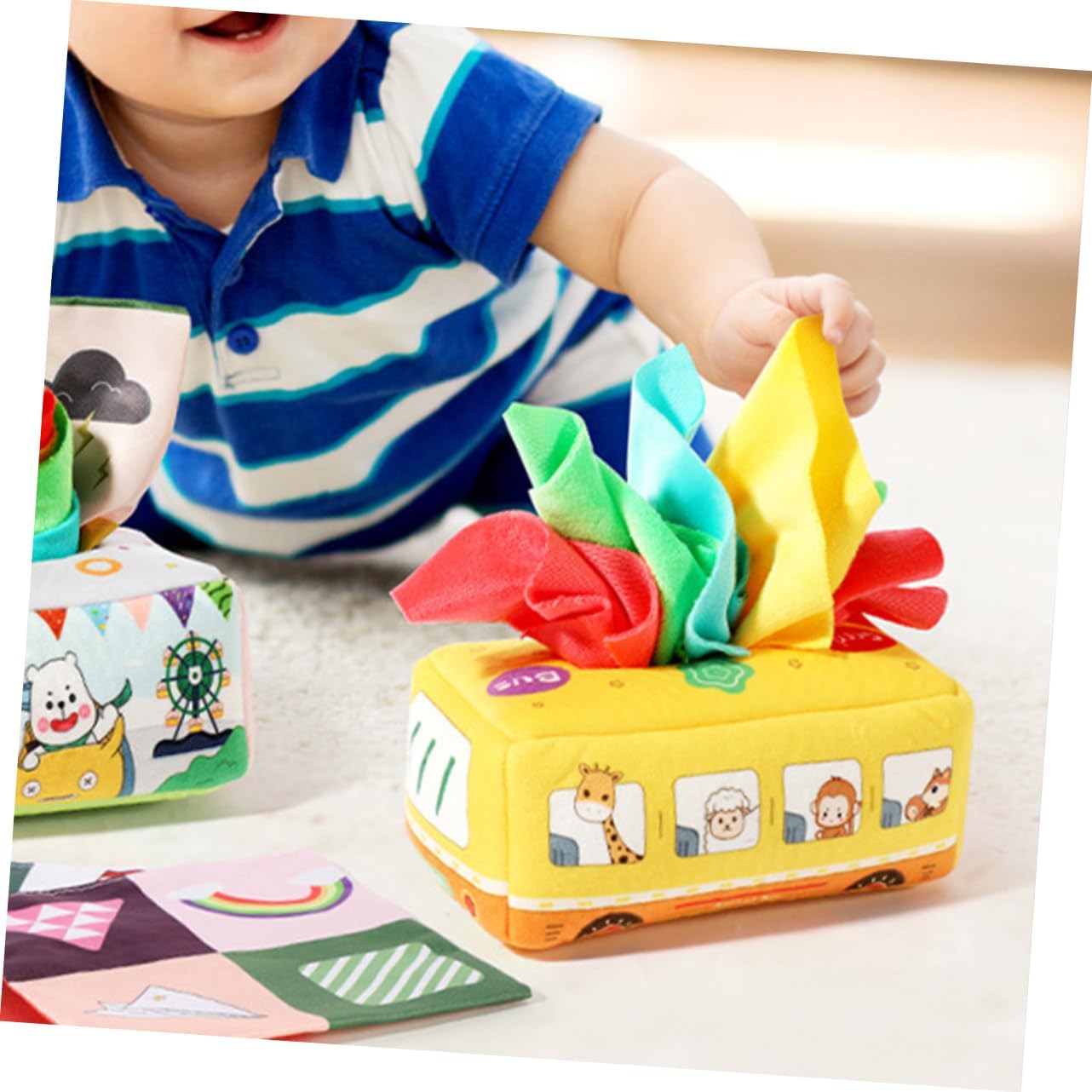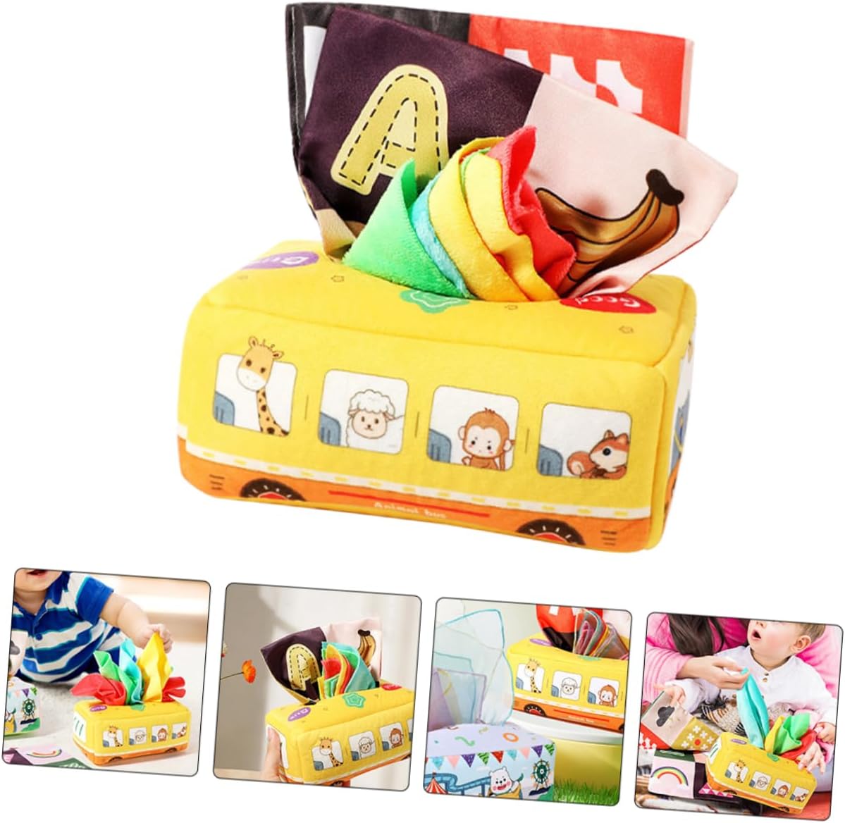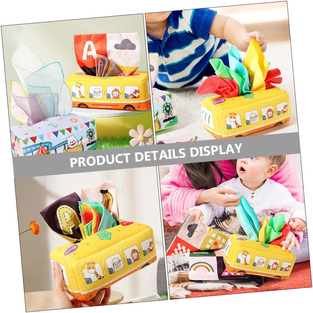 Giocattolo fazzoletto: superficie e angoli finemente lucidati, senza sbavature e non danneggia le mani dei bambini, può essere utilizzato per estrarre i fazzoletti. Giocattolo fazzoletto per bambini - design caratteristico e raffinato con forma di autobus semplice e generosa, giocattolo fazzoletto sensoriale liscio e indistruttibile Bambini: devi preoccuparti di ferirti durante l'uso. È un gioco sensoriale per Montessori: con questa scatola di fazzoletti puoi avere un gioco interattivo genitore-figlio con i tuoi bambini, esercitarti con le mani, giocattolo di fazzoletti per neonati