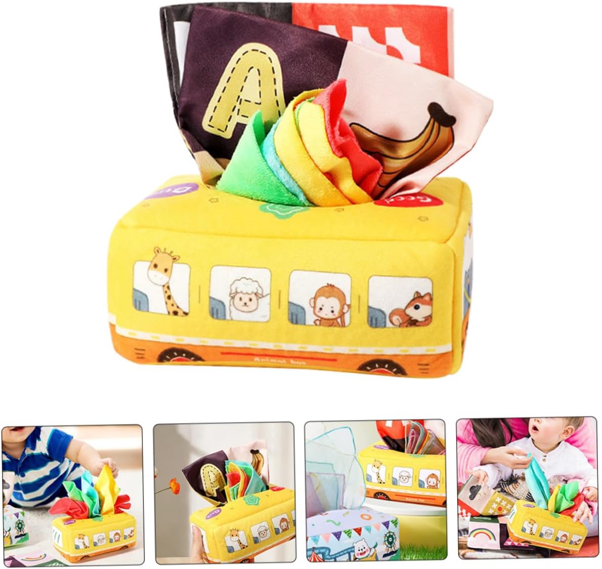 Giocattolo per estrarre fazzoletti per neonati: misura adatta per la mano del bambino, la nostra scatola per fazzoletti attirerà l'attenzione del tuo bambino, un buon giocattolo per fazzoletti per neonati, giocattolo per estrarre fazzoletti: questa scatola per fazzoletti sensoriali intratterrà i bambini per ore con i suoi colori vibranti, suoni scoppiettanti e divertimento, sensoriale per i più piccoli, sensoriale per: realizzata in tessuto leggero con buona fattura, giocattolo Montessori per fazzoletti per bambini: ha la capacità di rompere la resistenza, è molto pratico, ha una consistenza eccellente ed è un giocattolo in tessuto sensoriale imperdibile Scatola per fazzoletti per bambini giocattolo: realizzato in tessuto robusto e durevole, molto liscio da usare, giocattolo fazzoletto