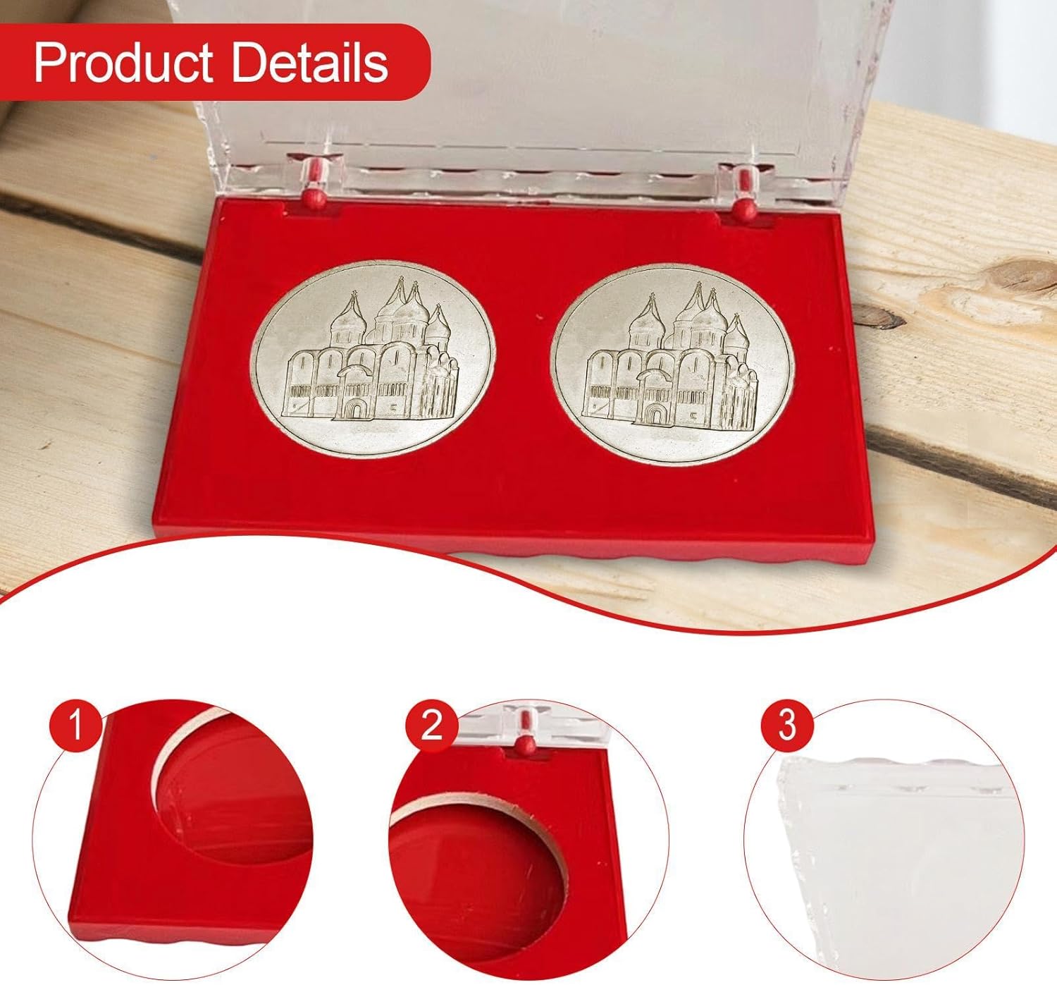 【Compatto e salvaspazio】: Con le sue dimensioni compatte di 12,2 cm x 7,8 cm x 2 cm, questo portamonete ha un ingombro minimo, rendendolo ideale per qualsiasi area espositiva. Nonostante le sue dimensioni compatte, è perfettamente proporzionato per contenere due monete, offrendo una soluzione salvaspazio senza compromettere la presentazione. 【Soluzione espositiva elegante e versatile】: con il suo design pulito e moderno, questo contenitore si adatta perfettamente a qualsiasi ambiente. Posizionalo sulla scrivania dell'ufficio, sulla libreria, sulla mensola del soggiorno o in una vetrina per trasformare le tue monete in un elegante elemento decorativo, mantenendo la tua collezione orgogliosamente esposta e organizzata. 【Vetrina doppia per monete sicura】: progettata con cura per contenere e proteggere due dei tuoi oggetti da collezione più preziosi. Questa vetrina per monete da collezione, medaglie commemorative e altri medaglioni preziosi li protegge da polvere, graffi e manipolazione. 【Acrilico trasparente di alta qualità】: realizzato in acrilico resistente, questo contenitore per monete offre una trasparenza eccezionale per mostrare ogni dettaglio delle tue monete. La sua struttura robusta offre una protezione efficace contro cadute, urti e danni, garantendo che la tua collezione rimanga in perfette condizioni. 【Accesso senza sforzo e chiusura sicura】: il coperchio si apre senza 90 gradi, consentendo un facile accesso per posizionare o recuperare le monete senza problemi. L'organizzatore di monete si chiude saldamente e in modo sicuro, garantendo la protezione della tua preziosa collezione, sia che sia esposta o conservata.