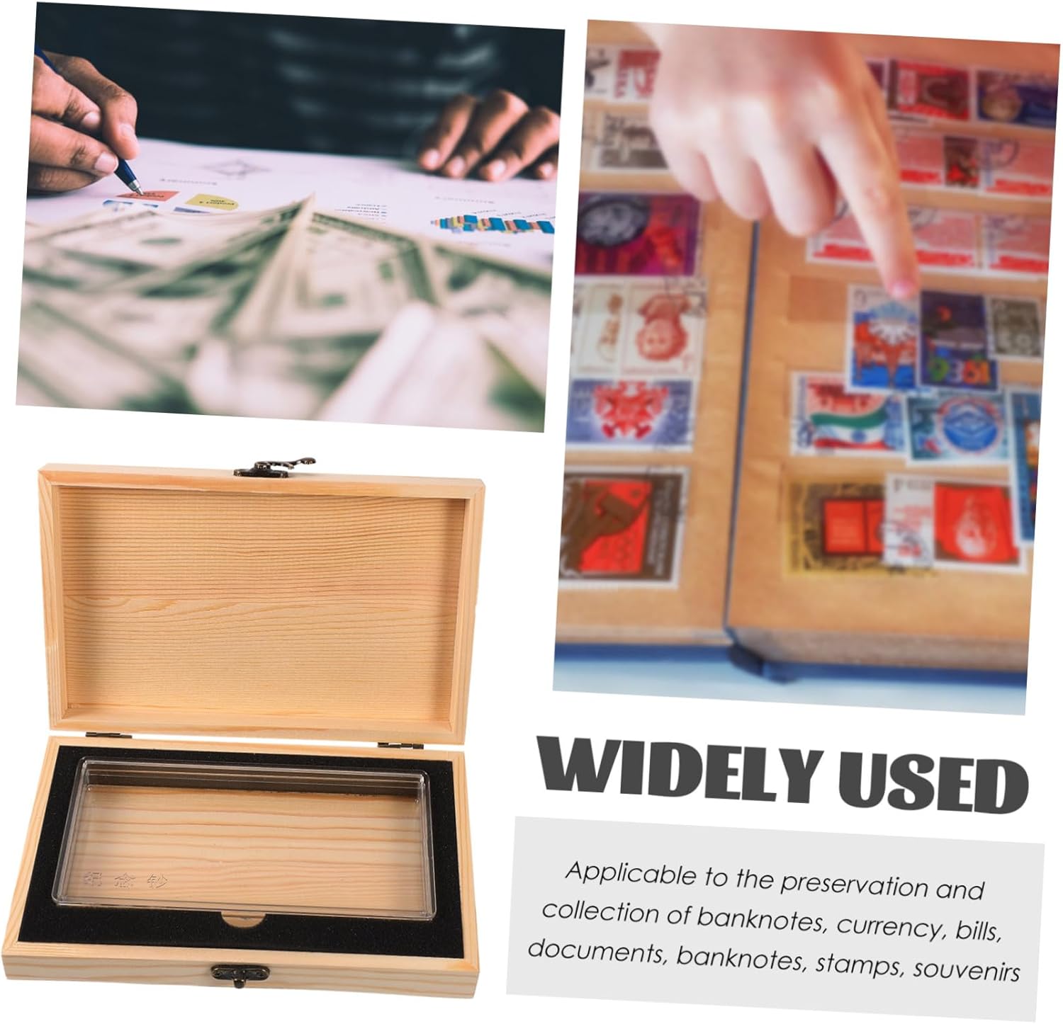 Organizzatore di banconote commemorative - Questo organizer in legno è comodo per conservare, esporre e scambiare banconote e altri oggetti, Organizzatore di valute Pagine per collezione di francobolli - Può essere utilizzato come album di banconote, porta pagine per cartelle di banconote e francobolli per collezionisti, Copertura protettiva in legno Scatole per francobolli in legno - Con un effetto prospettico liscio e buono, protegge la carta moneta e altri oggetti, Porta banconote Salvadanaio commemorativo - Perfetto oggetto da collezione o da collezione per il Ringraziamento, Natale, feste di compleanno, Capodanno ecc. Salvadanaio commemorativo Porta banconote commemorativo - Realizzato in buon materiale di legno, non sottile, con un buon spessore e la valuta visibile, custodia per banconote