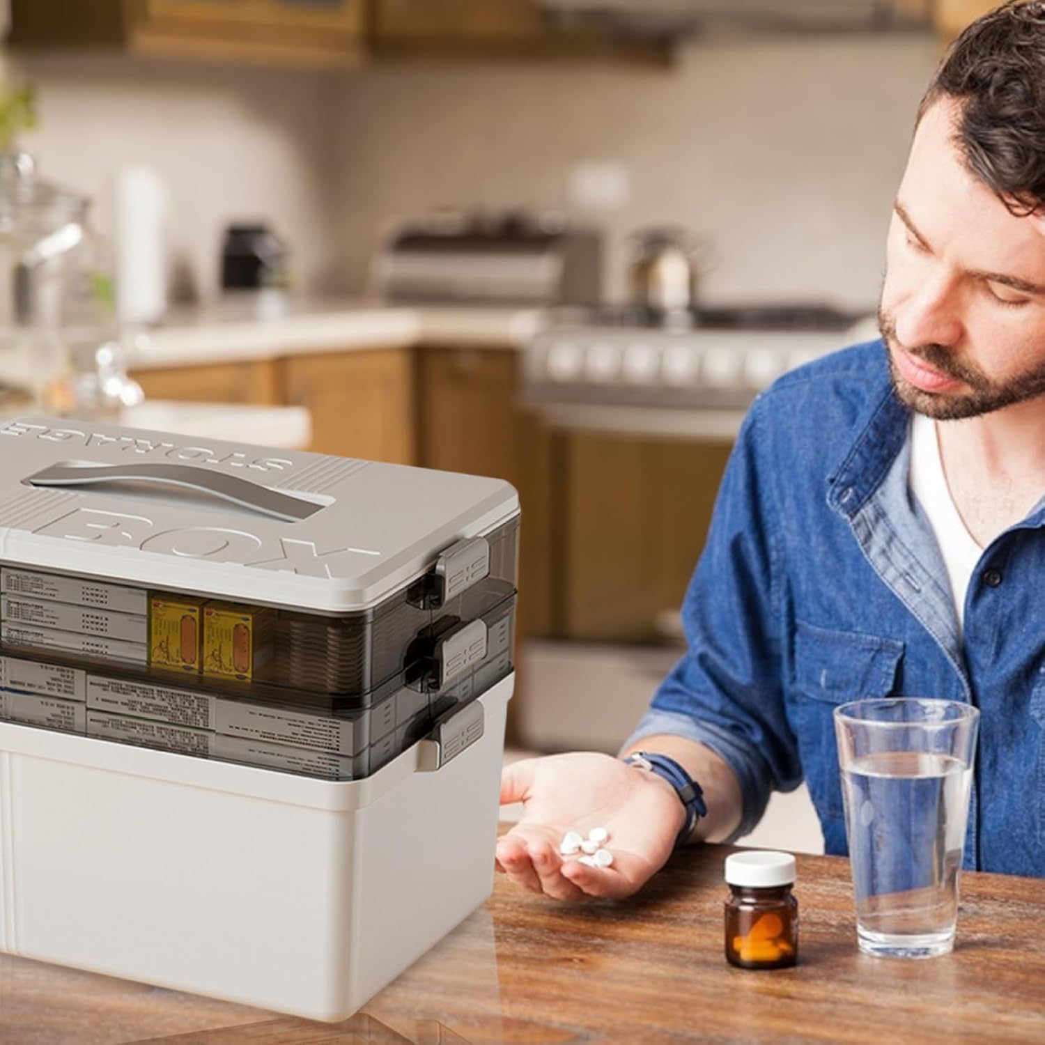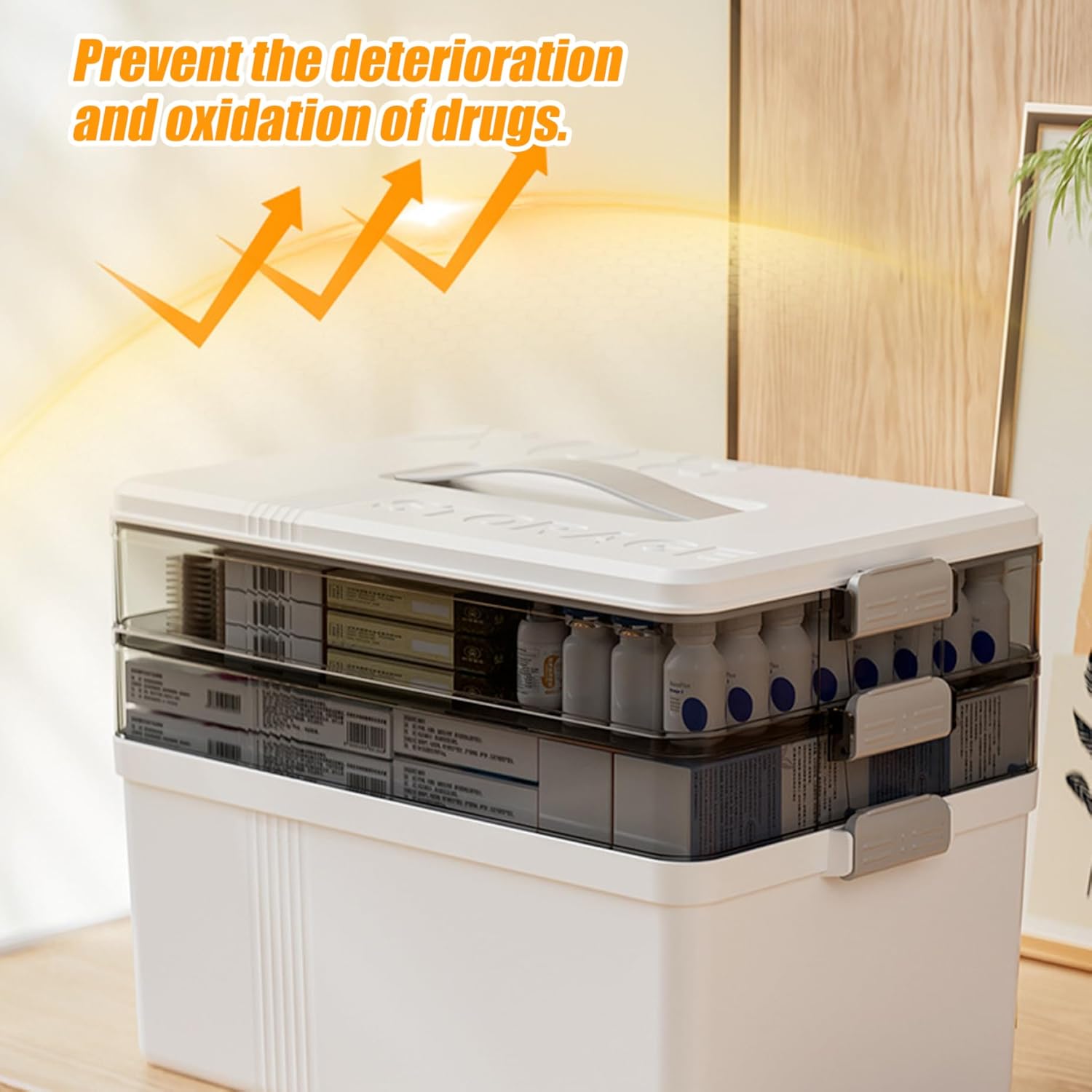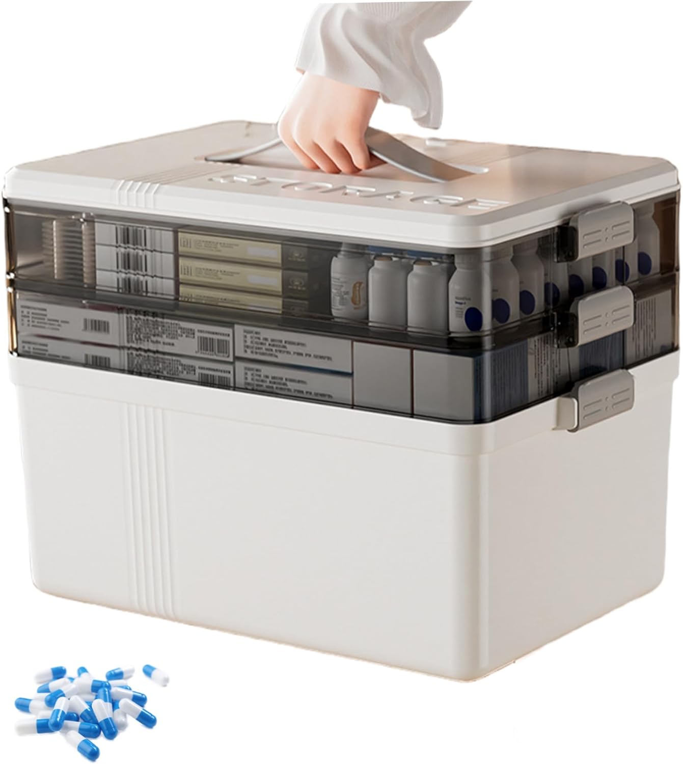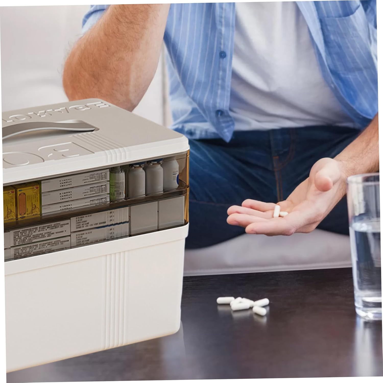 Gestione della medicina organizzata: la scatola di stoccaggio di pronto soccorso portatile a 3 livelli garantisce un'organizzazione efficiente di farmaci e forniture di pronto soccorso..Con la sua fibbia di sigillatura e due vassoi, mantiene tutto ben suddiviso per un facile accesso durante le emergenze. Filla di sigillatura per la sicurezza: la funzione Fibbia di sigillazione fornisce un ulteriore livello di sicurezza, mantenendo i farmaci e gli oggetti di pronto soccorso sicuri e protetti da fuoriuscite o accesso non autorizzato. Design affidabile e leggero: realizzato con materiale PP di alta qualità, questa scatola di stoccaggio dei medicinali è sia affidabile che leggera, rendendola perfetta per la casa, i viaggi o l'uso scolastico..La sua robusta costruzione garantisce prestazioni di lunga durata. Compatto e portatile: progettato pensando alla portabilità, questa scatola di stoccaggio di medicina compatta si adatta facilmente a borse o zaini, garantendo di avere un rapido accesso alle forniture di pronto soccorso essenziali ovunque tu vada. Soluzioni di stoccaggio versatili: che tu sia a casa, in viaggio o a scuola, questo organizzatore di medicina partizionata si adatta alle tue esigenze..I suoi doppi vassoi consentono l'archiviazione personalizzabile, il mantenimento di pillole, unguenti e bende organizzate.