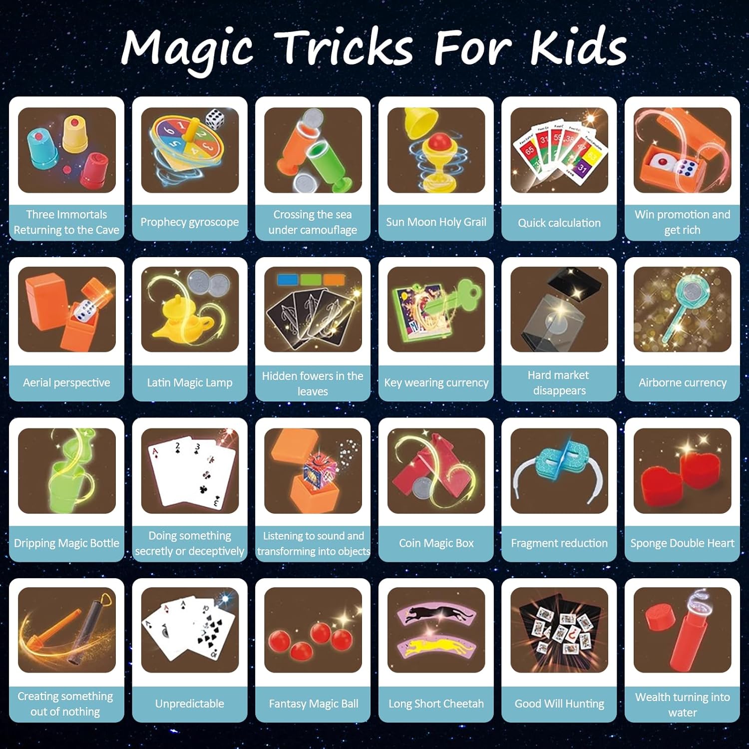 🔮Emozionante set di pozioni magiche per bambini: guida il tuo bambino in un mondo magico con 24 oggetti e oltre 75 trucchi. Dai classici cappelli magici alle graziose bambole di coniglio e alle bacchette magiche, questo kit magico include tutti gli accessori necessari per un divertimento senza fine. 🔮Diventa un mago: con questa scatola magica i bambini possono immergersi nel mondo della magia! Imparerai vere e proprie abilità magiche e stupirai il pubblico con affascinanti illusioni! Coniglio con cappello vuoto; allucinazioni di nuoto, piegamento e crescita degli steli; Agitare un cubo in più cubetti; Ripristino corda spezzata; La capacità di indovinare i numeri che pensa il pubblico attraverso le abilità sensoriali; Ce ne sono molti altri. 🔮Premio per l'apprendimento e sviluppo delle abilità: usa questa scatola magica per i bambini per scoprire il potenziale di apprendimento del gioco! Non è solo un giocattolo, è una risorsa educativa di alta qualità che sviluppa abilità sociali e fiducia. Utilizzando una varietà di strumenti magici, i bambini allenano la coordinazione occhio-mano, il pensiero cognitivo e la comunicazione, rafforzando la loro creatività e godendo di una piacevole interazione con la famiglia e gli amici. 🔮Tutorial video: con un materiale didattico completo, puoi sbloccare corsi video con istruzioni passo passo tenute da maghi professionisti. I bambini possono facilmente padroneggiare abilità e segreti magici, da quelli di base a quelli complessi, migliorare gradualmente le loro prestazioni, acquisire fiducia in se stessi e creatività e provare l'affascinante mondo della magia. 🔮Regalo perfetto per i bambini: il set di pozioni magiche per bambini è il regalo perfetto per i bambini dai 6 anni in su. Che si tratti di sorprese di compleanno, regali di Natale o regali speciali per feste e riunioni di famiglia, porta divertimento e sorprese illimitati ed eccita la passione dei bambini. Scopri l'affascinante mondo della magia.