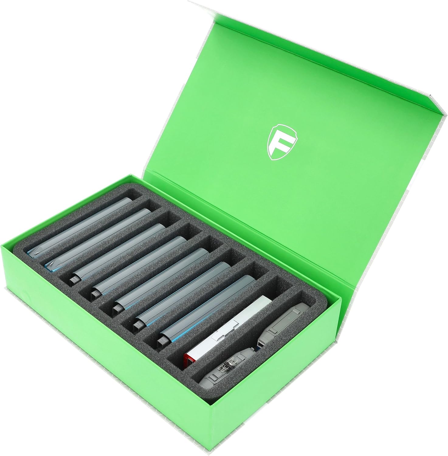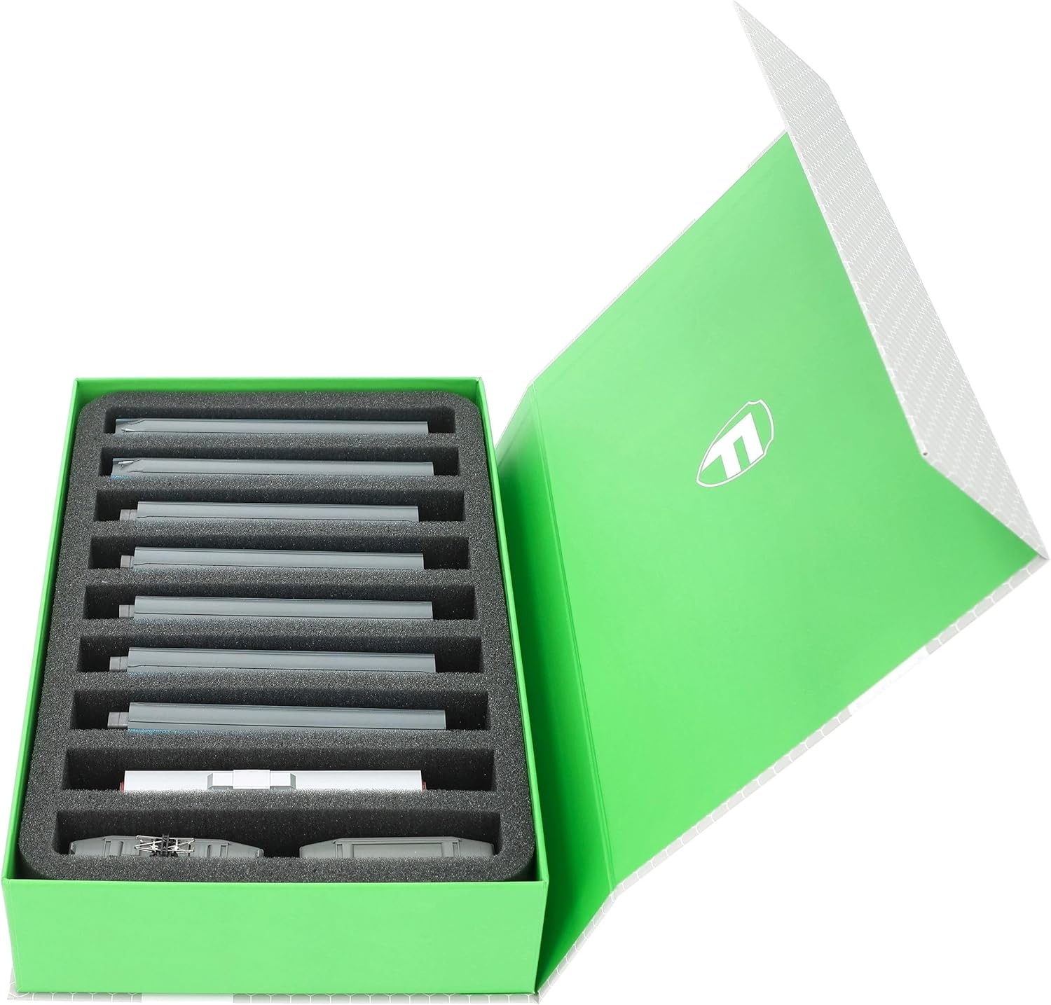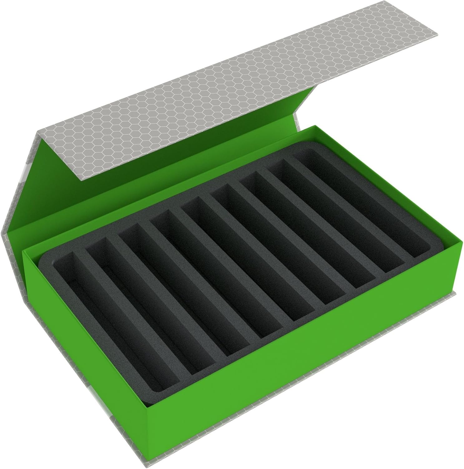 Feldherr scatola magnetica verde con inserto in schiuma con 9 barre per modellismo ferroviario in scala N. Il set contiene: 1x scatola magnetica verde, 1x inserto in schiuma di mezza misura con 9 scomparti, realizzato su misura per modellismo ferroviario in scala N, in posizione eretta. Ciascuno dei 9 scomparti è lungo 150 mm x largo 20 mm x profondo 30 mm. Inoltre un tappetino in schiuma per la regolazione dell'altezza e un coperchio in schiuma. I modelli sono riposti in modo sicuro ovunque e protetti in modo affidabile e permanente da danni e usura come graffi e scheggiature grazie alla schiuma di alta qualità. Schiuma di qualità a pori fini - Prodotto in Germania - Senza acidi e cloro 👉 Tutte le figure e i componenti del gioco mostrati servono per confrontare le dimensioni e non sono inclusi. I modelli stampati in 3D possono presentare piccole imperfezioni. Le immagini del prodotto mostrano le possibili applicazioni, i colori possono variare.