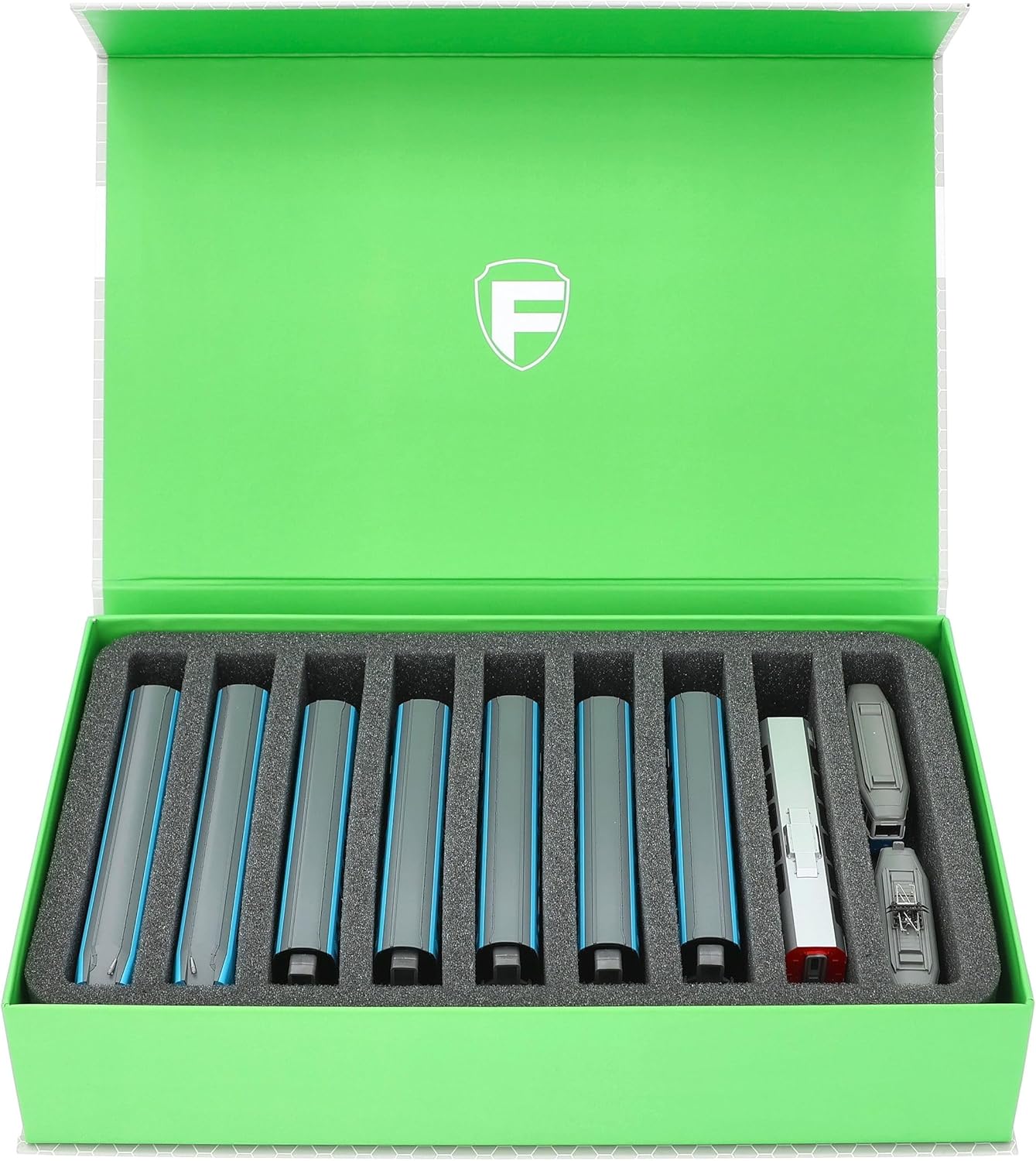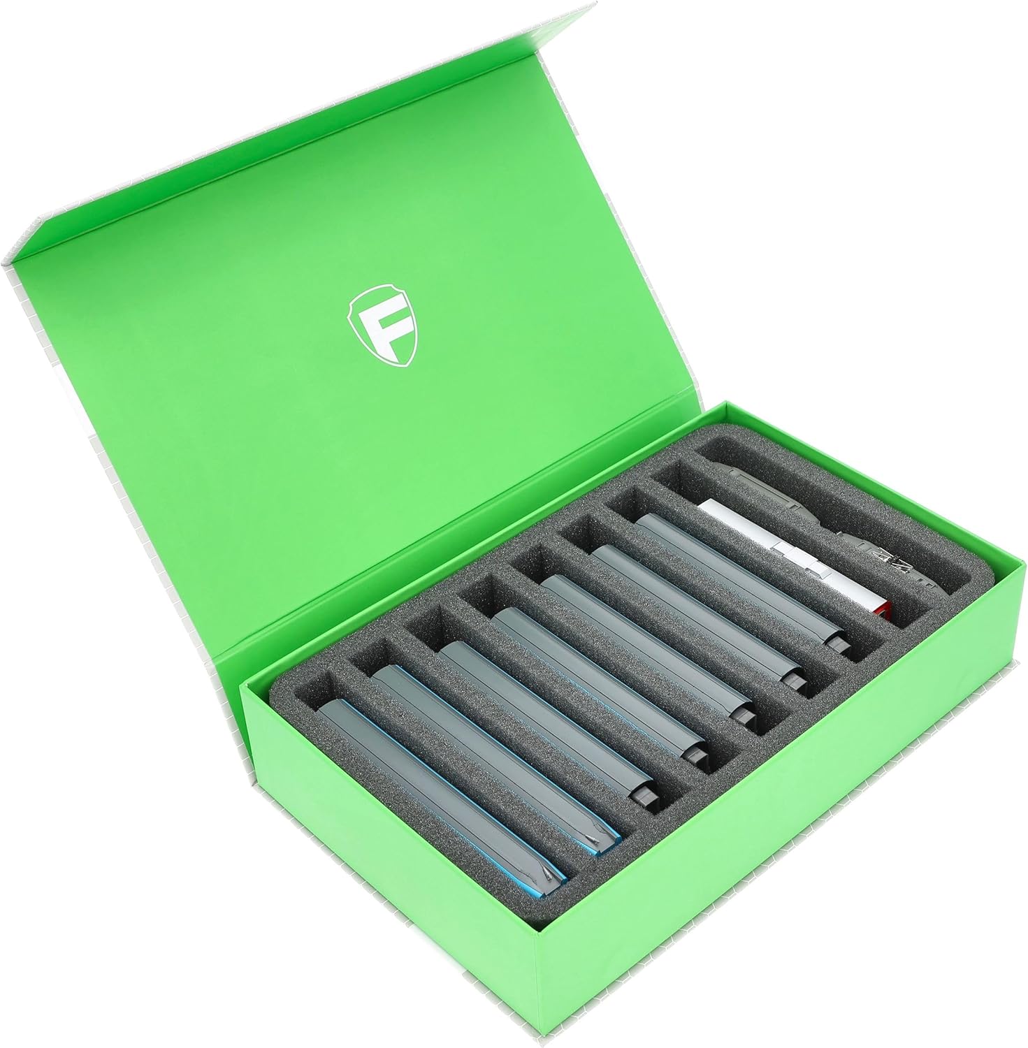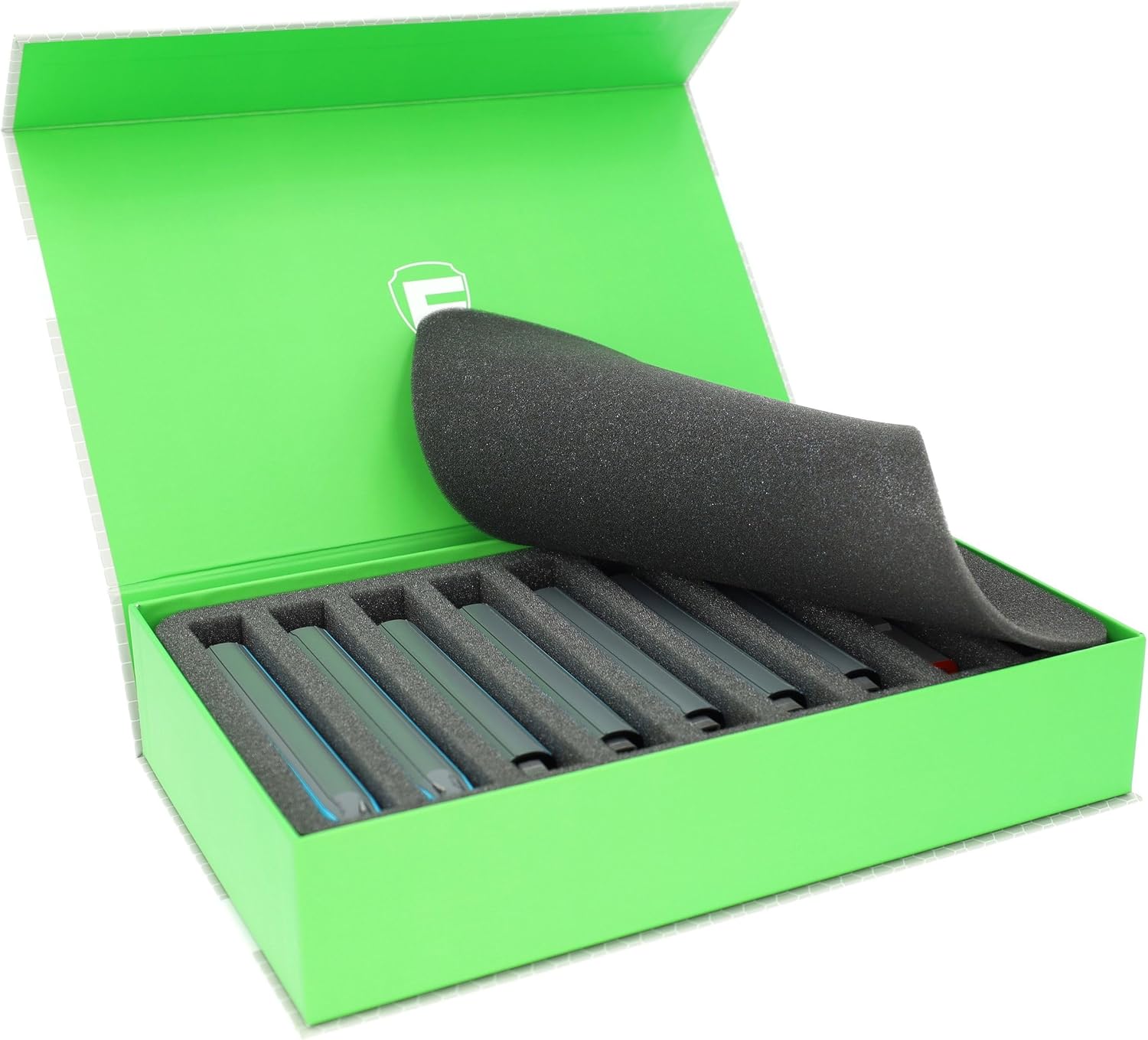 Feldherr scatola magnetica verde con inserto in schiuma con 9 barre per modellismo ferroviario in scala N. Il set contiene: 1x scatola magnetica verde, 1x inserto in schiuma di mezza misura con 9 scomparti, realizzato su misura per modellismo ferroviario in scala N, in posizione eretta. Ciascuno dei 9 scomparti è lungo 150 mm x largo 20 mm x profondo 30 mm. Inoltre un tappetino in schiuma per la regolazione dell'altezza e un coperchio in schiuma. I modelli sono riposti in modo sicuro ovunque e protetti in modo affidabile e permanente da danni e usura come graffi e scheggiature grazie alla schiuma di alta qualità. Schiuma di qualità a pori fini - Prodotto in Germania - Senza acidi e cloro 👉 Tutte le figure e i componenti del gioco mostrati servono per confrontare le dimensioni e non sono inclusi. I modelli stampati in 3D possono presentare piccole imperfezioni. Le immagini del prodotto mostrano le possibili applicazioni, i colori possono variare.