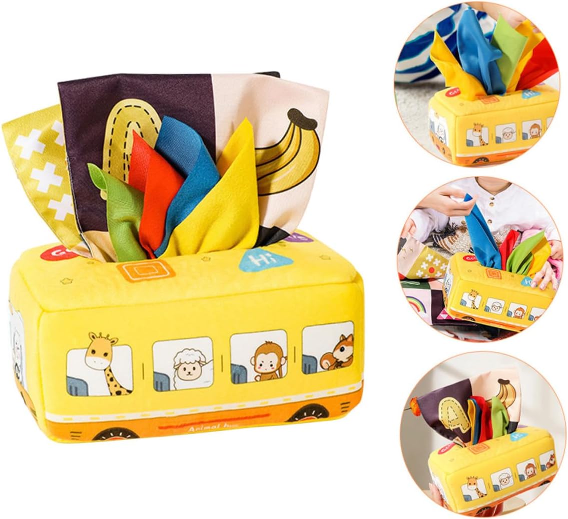 Montessori per neonati: misura adatta alla mano del bambino. La nostra scatola di fazzoletti attirerà l'attenzione del tuo bambino. Un buono per te e giocattoli educativi per i più piccoli Montessori: questa scatola di fazzoletti sensoriali intratterrà i bambini per ore con i suoi colori vibranti, giocattolo sensoriale per bambini Giocattolo da tirare con i fazzoletti: con questa scatola di fazzoletti puoi avere un gioco interattivo genitore-figlio con i tuoi bambini, esercitarti con le mani e i sensi per i più piccoli. scuola materna, giocattoli da infilare