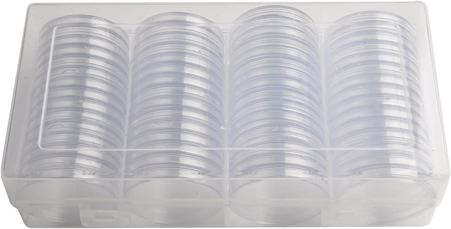 Materiale plastico ispessito: le nostre capsule sono realizzate in plastica ispessita, fornendo eccellenti proprietà di resistenza alla polvere e all'ossidazione. Adatto per monete di diametro: questi supporti sono progettati per contenere monete con un diametro non superiore a 41 mm, il che li rende perfetti per conservare e proteggere monete d'argento e d'oro. Design altamente trasparente e aderente: le capsule sono altamente trasparenti e si adattano saldamente, protezione sicura per la tua preziosa collezione di monete. 60 capsule con scatola organizer: questo set include 60 capsule insieme a una comoda scatola organizer. È una scelta per cerimonie, eventi aziendali, mostre o come Natale per collezionisti.