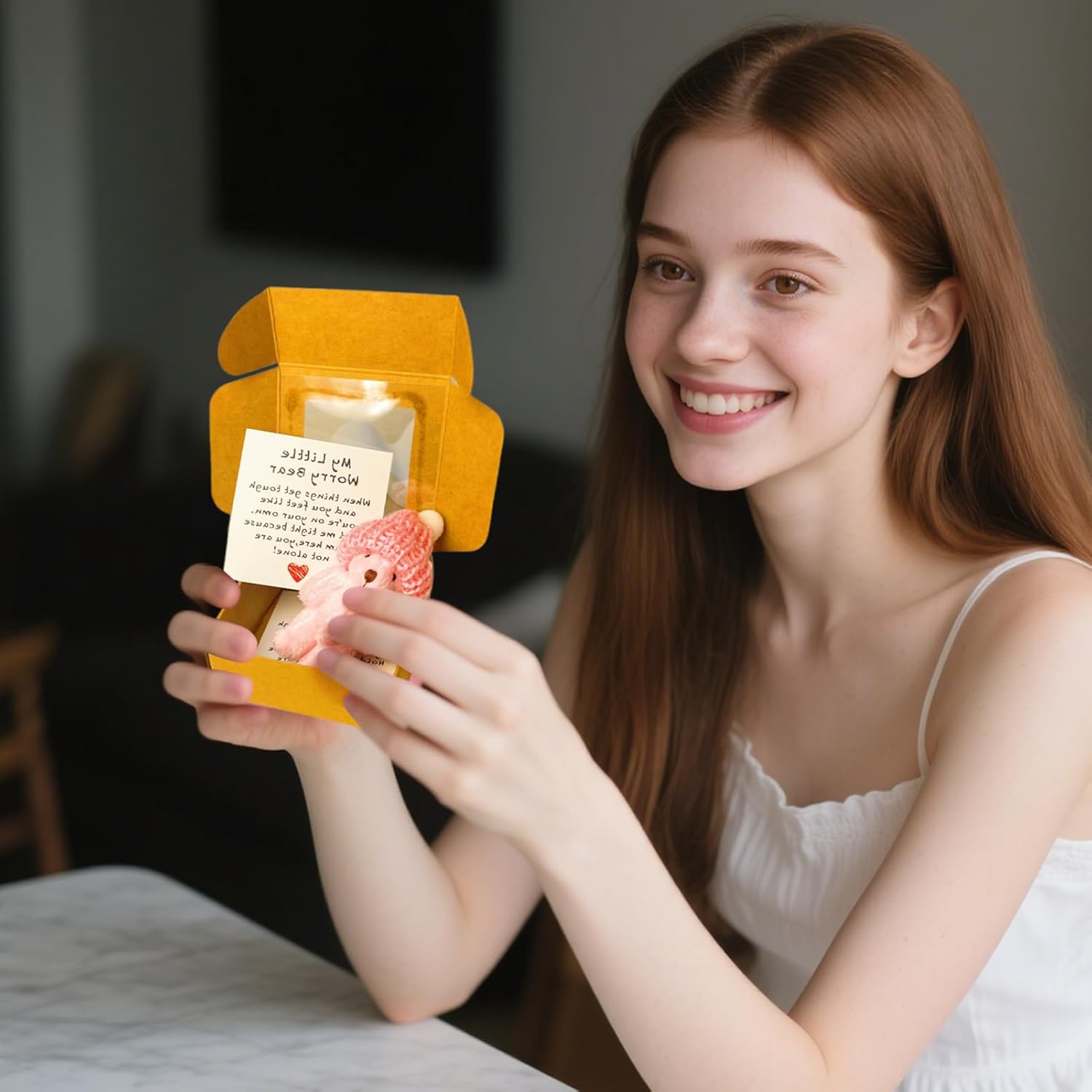 Set di Peluche Multicolore: Questo cofanetto presenta una vibrante collezione di orsacchiotti tascabili colori variati, ideali per aggiungere charme all'arredamento di qualsiasi stanza e come delizioso centrotavola per mensole o tavoli in ambienti domestici accoglienti. I colori vivaci e il design giocoso li rendono perfetti per collezionisti e appassionati di decorazione. Set di Carte di Affermazione: Con l'inclusione di carte motivazionali per journaling, la scatola orsetto con cappello ispira gli utenti a coltivare ottimismo e positività, servendo sia come decorazione funzionale per scrivanie che come gesto premuroso quando regalata ad amici o familiari in occasioni speciali. Portabilità eccellente: Caratterizzato da un orsacchiotto miniaturistico in scatola, questo peluche tascabile funziona come giocattolo comfort per alleviare lo stress da pendolarismo e fornire sicurezza durante i viaggi, offrendo calma e rassicurazione quando serve di più grazie alla sua trasportabilità Amore Espressivo: L'orsacchiotto in scatola è confezionato con cura per creare un ricordo di compleanno pronto da regalare, aggiungendo valore a festività e occasioni speciali attraverso il delizioso processo di unboxing che cattura l'attenzione e favorisce connessioni significative durante celebrazioni preziose Peluche Confort Emotivo: Ideale per le routine serali, dona conforto emotivo attraverso il design in peluche soffice, favorendo la serenità e aiutando a rilassarsi naturalmente prima del sonno per un relax migliorato. La sensazione tattile delicata accompagna verso un riposo profondo.