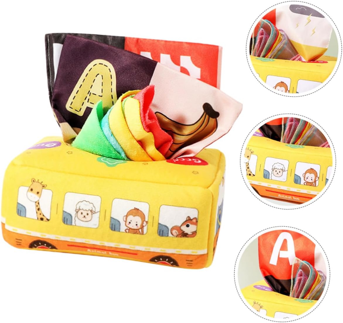 Giocattoli fazzoletto per neonati: ideali per sviluppare la coordinazione manuale, abilità pratiche, pensiero logico e creatività, sensorialità per i più piccoli Giocattoli fazzoletto per neonati: superficie e angoli finemente lucidati, sbavature e non feriscono le mani dei bambini, possono essere usati, giocattoli da tirare fazzoletto per neonati Giocattoli da tirare fazzoletto per neonati: caratteristici e design a forma di autobus, linee semplici e generose, linee morbide, giocattoli per bambini fazzoletto Sensoriale: queste cose interessanti sono progettate per impegnarsi in modo giocoso e aiutarli a svilupparsi capacità di risoluzione dei problemi, -Giocattoli con fazzoletto Giocattoli in tessuto sensoriale indistruttibili: realizzati in tessuto leggero con buona fattura, Montessori