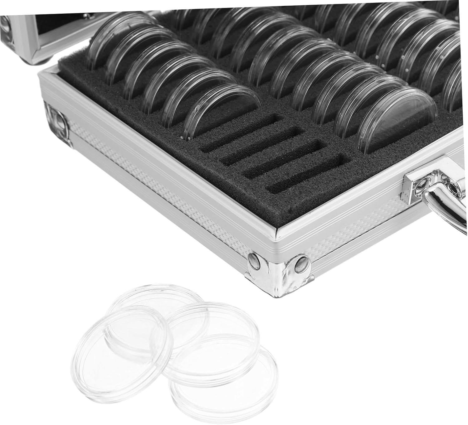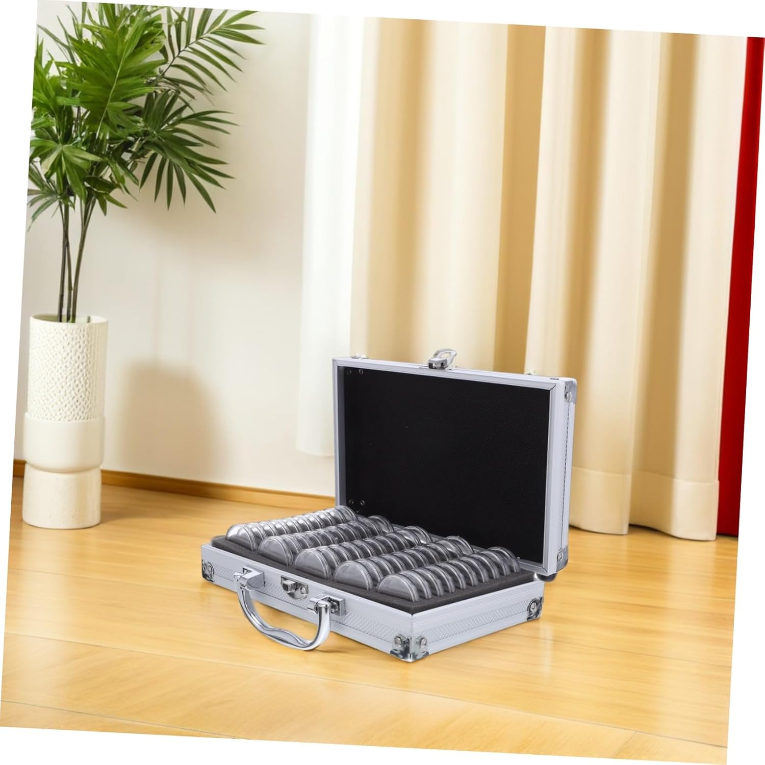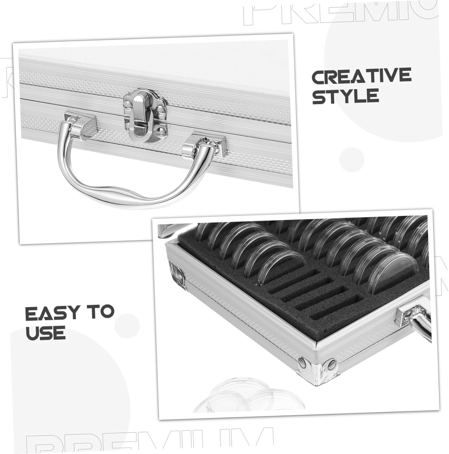 Costruzione robusta: le scatole per la raccolta di monete in metallo sono progettate per resistere all'usura, mantenendo le tue collezioni al sicuro. Design protettivo: le protezioni per monete proteggono le tue monete da urti, polvere e umidità, preservandone le condizioni per gli anni a venire. Scatole portaoggetti con struttura e coperchio in metallo, custodia per monete Portatile e: questa custodia portatile per mini dispenser di monete è leggera e ti consente di trasportare e conservare le tue monete ovunque, custodia per medaglie, scatole di metallo Design portatile: la custodia portatile è facile da trasportare, rendendola ideale per i collezionisti che viaggiano o partecipano a mostre, espositore per monete, protezione per monete Robusto coperchio in metallo: la vetrina per monete con coperchio in metallo fornisce protezione e una finitura lucida, mantenendo la tua collezione sicura ed elegante
