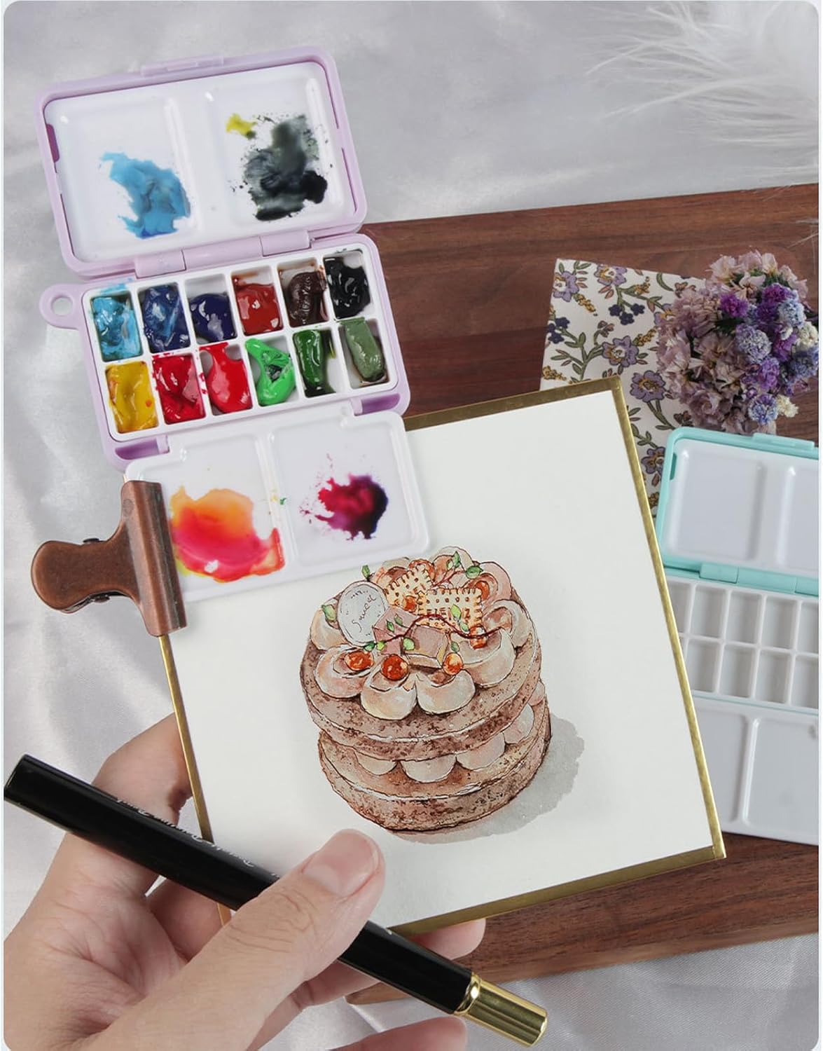 Ogni custodia pieghevole per vernice con 12 scomparti per vernice, adatta per acquerelli, guazzo, acrilici e altri pigmenti a base d'acqua Questa custodia pieghevole per pittura ad acquerello è molto adatta per appassionati d'arte, studenti, artisti, principianti e pittori professionisti. Libera la tua creatività con i suoi design e l'ampia capacità di archiviazione La scatola portatile per pittura ad acquerello è progettata per i viaggi degli artisti, presenta disegni leggeri che lo rendono facile da trasportare e riporre le tue forniture artistiche Realizzato in polipropilene, questa scatola pieghevole per pittura è leggera e facile da usare. Mantieni la tua pittura ad acquerello bagnata per giorni e gli scomparti separati assicurano che le vernici non si mescolino insieme da diversi scomparti Ampiamente usato per schizzi all'aperto, apprendimento in classe, pittura di viaggio, pittura interna ed esterna. Questa scatola di vernice da viaggio per pittura ad acquerello mutifunctional è un'aggiunta essenziale alla tua collezione di forniture artistiche