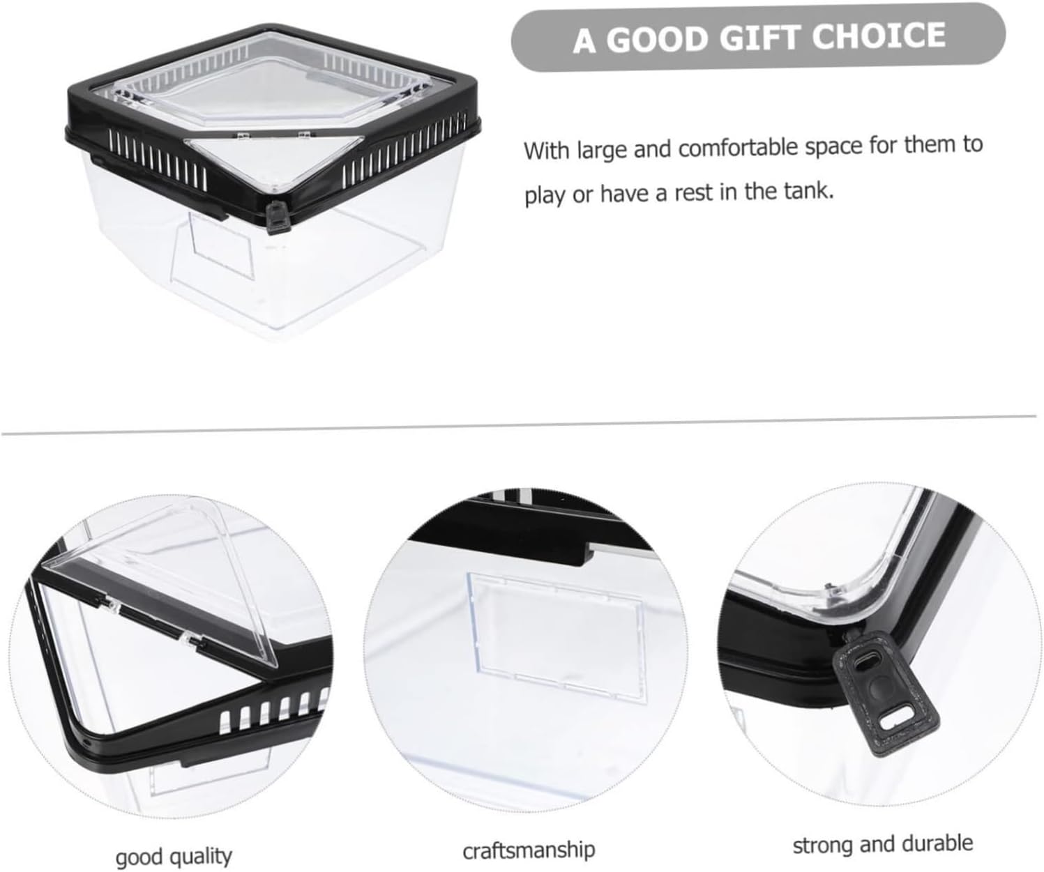 Gabbia for l'allevamento dei rettili: grazie alla sua struttura alta, puoi osservare il tuo animale domestico mentre gioca in qualsiasi momento. Habitat pulito for rettili: adatto a piccoli animali come gechi, piccole tartarughe, ecc. Scatola espositiva for animali domestici: questa pratica scatola for l'allevamento di rettili è facilmente acquistabile ovunque. Con fori di ventilazione: fai sentire il tuo animale domestico a suo agio, è leggero e facile da trasportare, adatto for il trasporto all'aperto. Spazioso e portatile: l'ampio spazio interno consente di osservare e spostare facilmente gli insetti; design leggero e compatto per un comodo trasporto e stoccaggio.